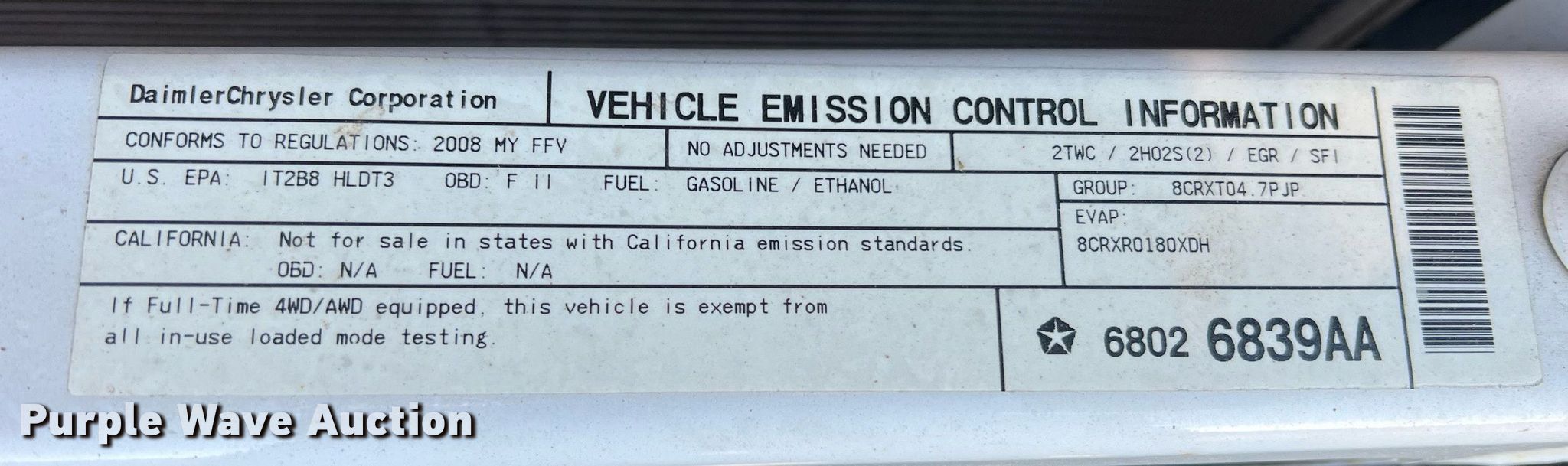 2008 Dodge Dakota Crew Cab pickup truck. Miles: 56,393 on odometer, VIN: 1D3HW38N68S590697. Engine Displacement: 4.7L V8 SOHC, Cylinders: 8, Fuel type: Gas. Transmission Automatic, Four wheel drive. Interior AC, Heat, Power windows, Power locks, Cruise control. Tires Size: LT245/75R16. Notes Dash warning indicator: Check engine, Hail damage. Missouri title. Seller is a government entity who will be assigning and distributing the title. Please contact the seller for distribution questions. City of Moberly. 2300 North Morley Street. Moberly, MO 65270