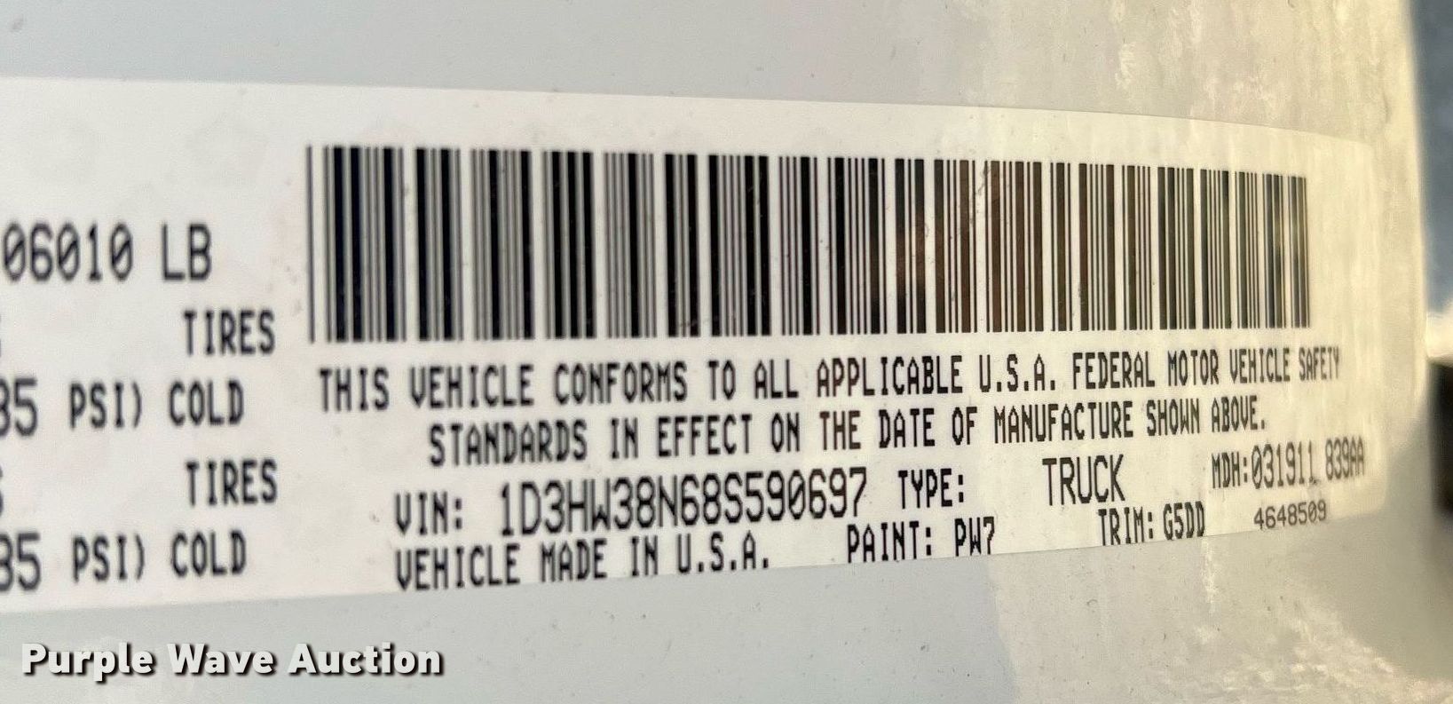 - VIN: 1D3HW38N68S590697