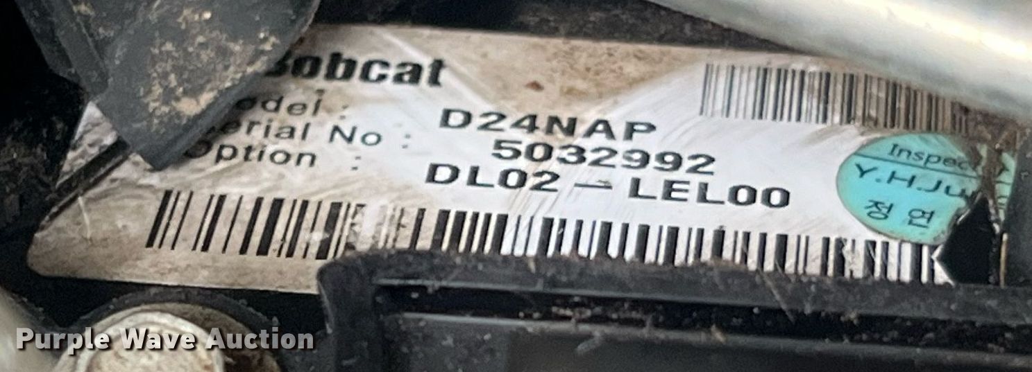2015 Bobcat T650 tracked skid steer loader. Hours: 3,047 on meter, Serial: ALJG13172. Engine Bobcat D24NAP, Serial: 5032992, Displacement: 2.4L, Cylinders: 4, Fuel type: Diesel. Transmission Hydrostatic, Two speed travel. Operators station Enclosed cab, AC, Heat, Bucket control: Hand, Pattern changer, Electronic Monitoring System panel. Features Auxiliary hydraulics, Auxiliary electrical outlet, Quick coupler: Hydraulic, Counter weights, Bucket Width: 78", Cutting edge: Weld-on, Teeth: Bolt-on. Tracks Width: 17.5". Notes Possible engine issues, noise, Possible track issues, ride control spring issue. City of Columbia. 4900 W Gillespie Bridge Rd. Columbia, MO 65203