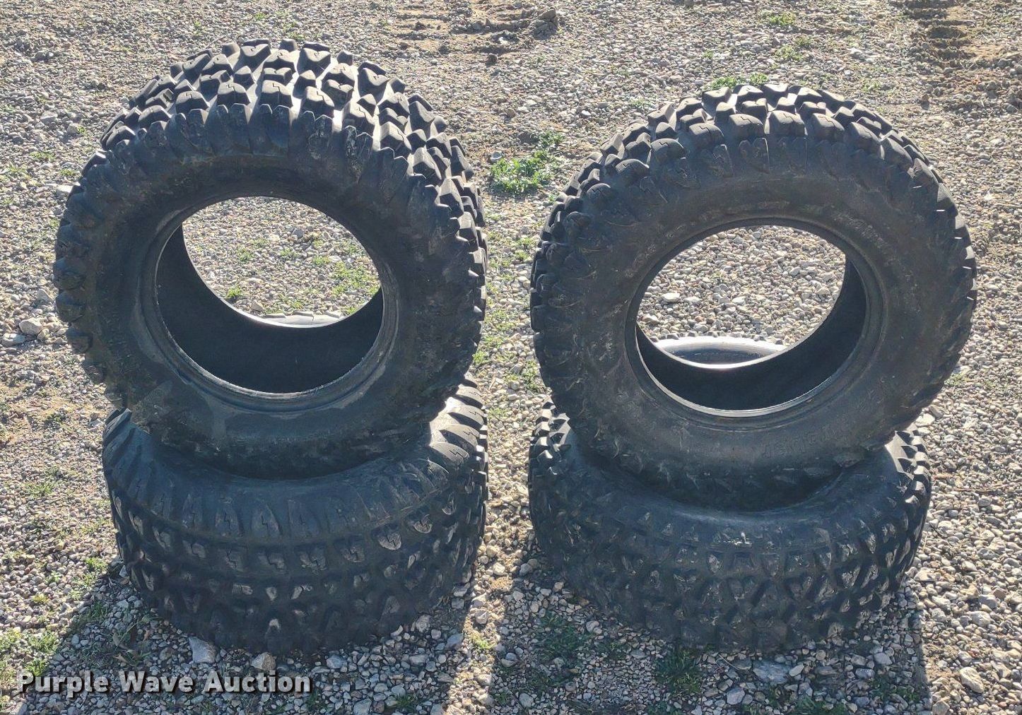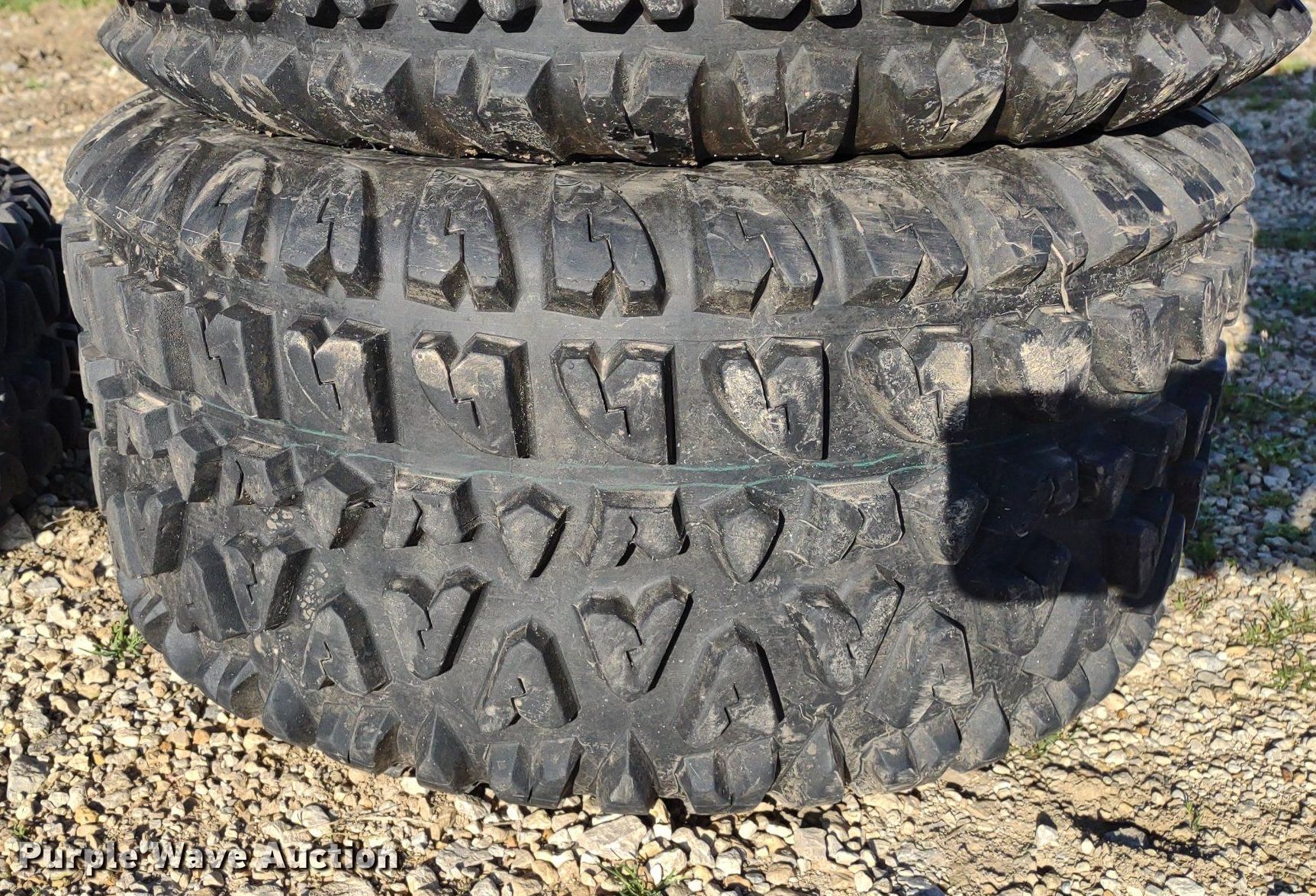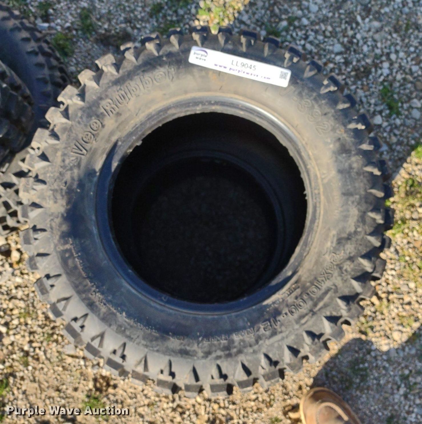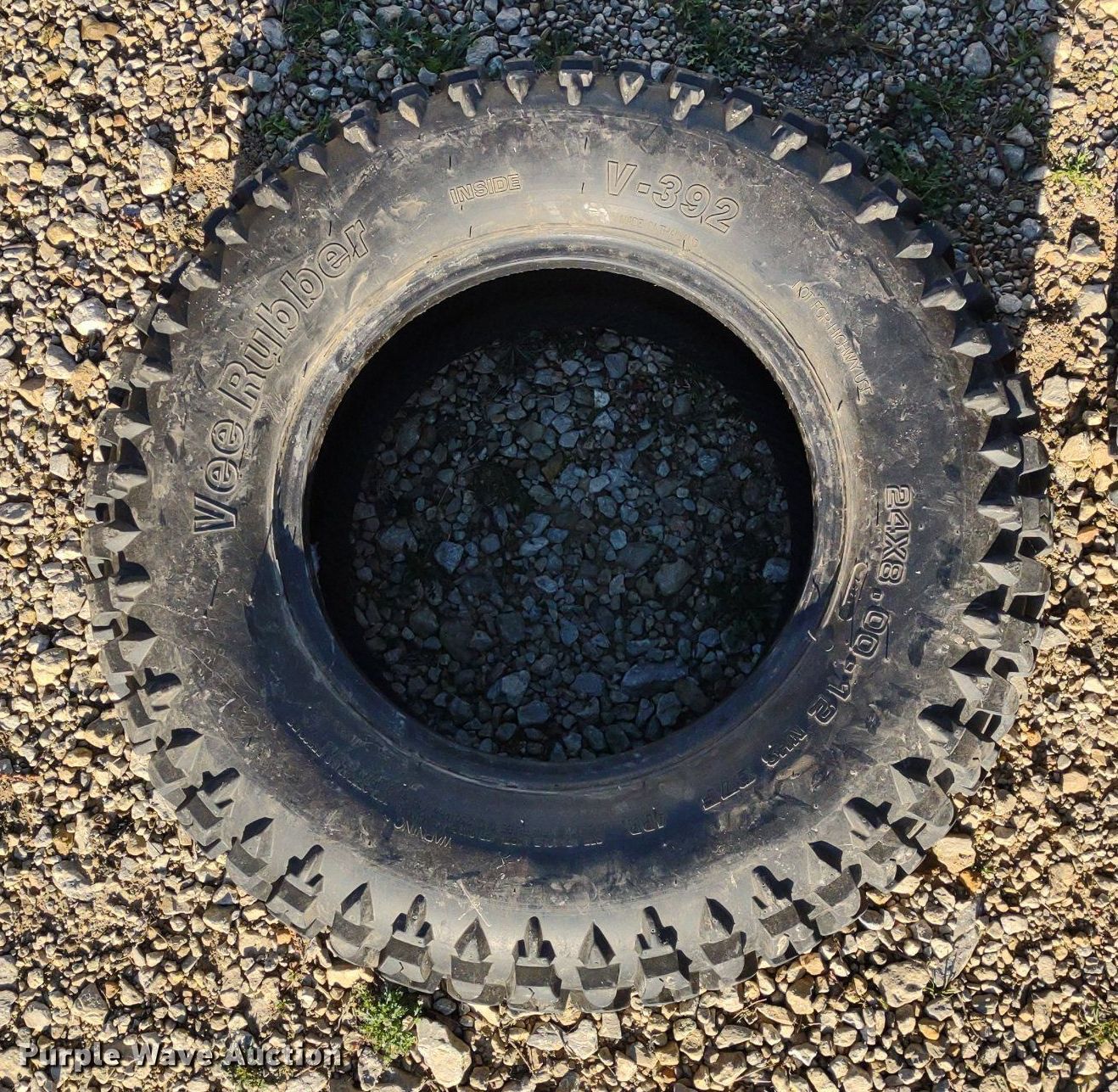 Purple Wave is selling a used Industrial Tires or Tracks in Kansas. This item is a Vee Rubber V-392 tires with the following: (2) 24x8.00-12, (2) 24x10.00-12