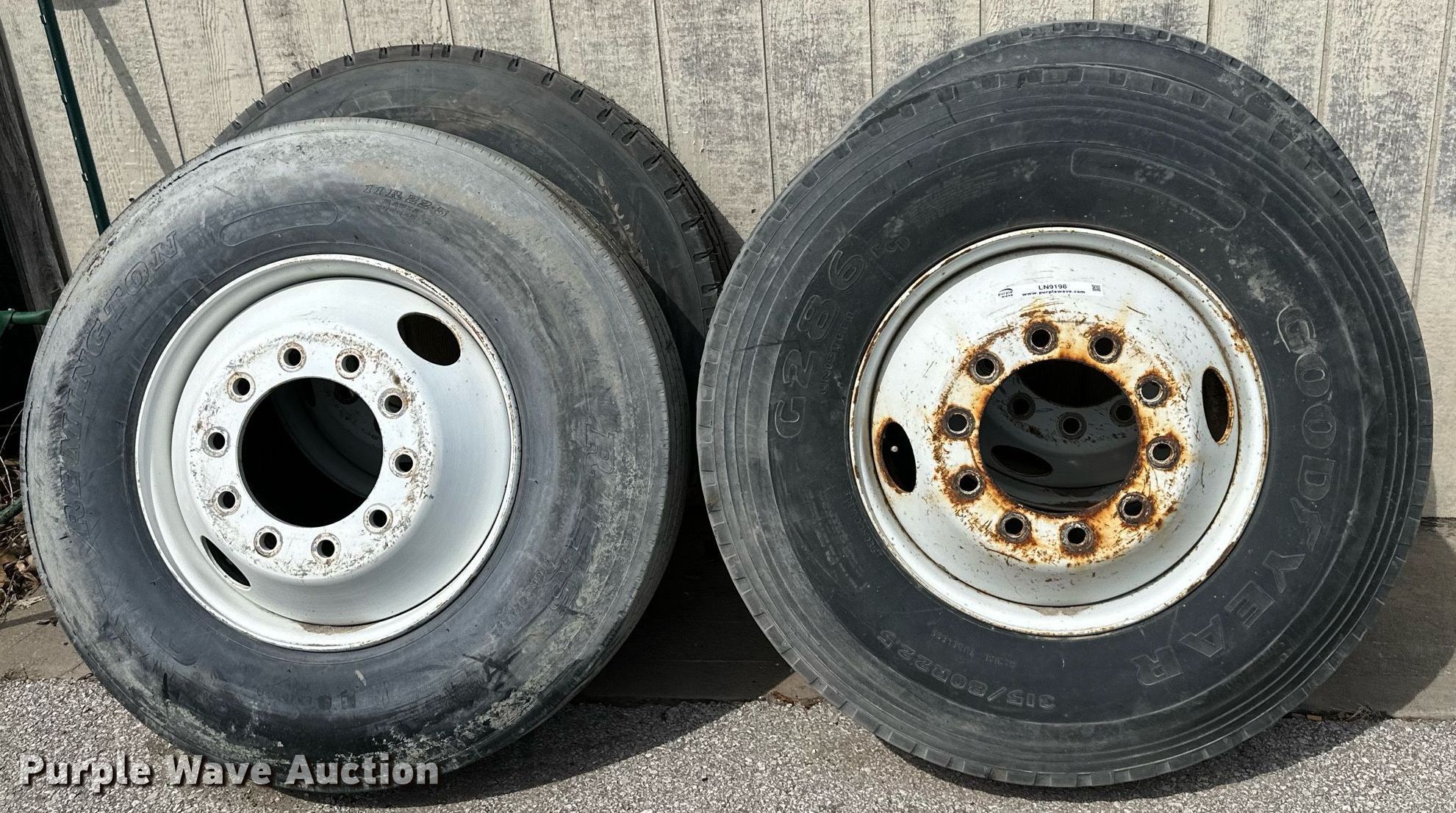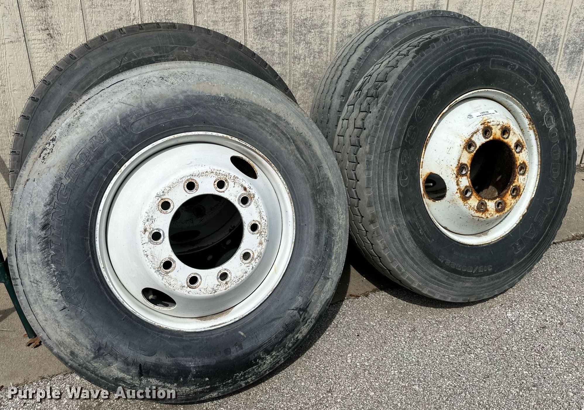 (4) tires and wheels. (3) 315/80R22.5, 11R22.5. City of Shawnee. 18690 Johnson Drive. Shawnee, KS 66218