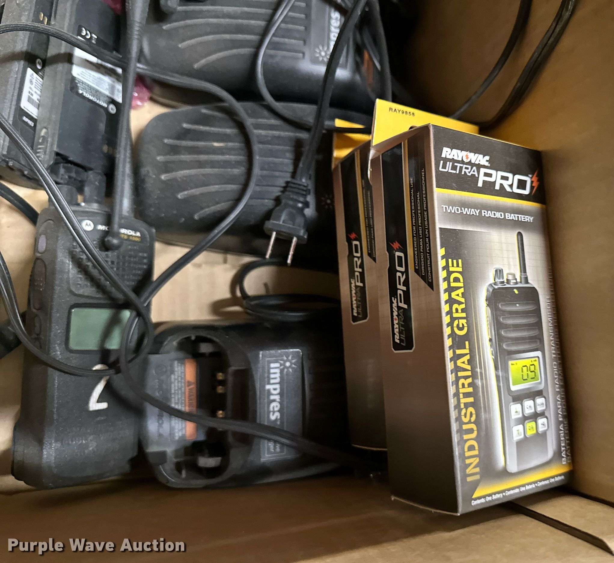 Purple Wave is selling a used Electronics in Kansas. This item is a Motorola two-way radios with the following: (27) model: XTL1500, (9) model: XTS1500, (7) batteries, Six bank charger, (3) single chargers