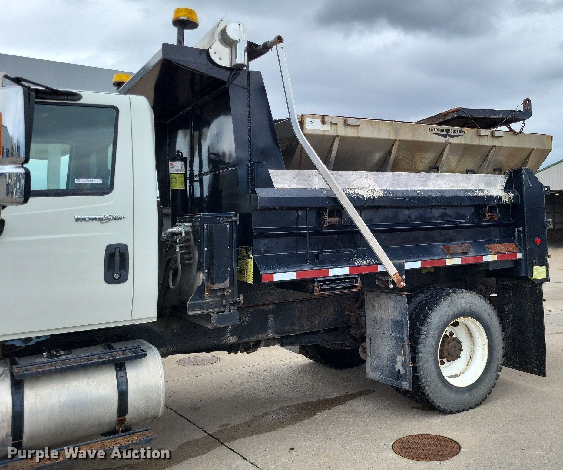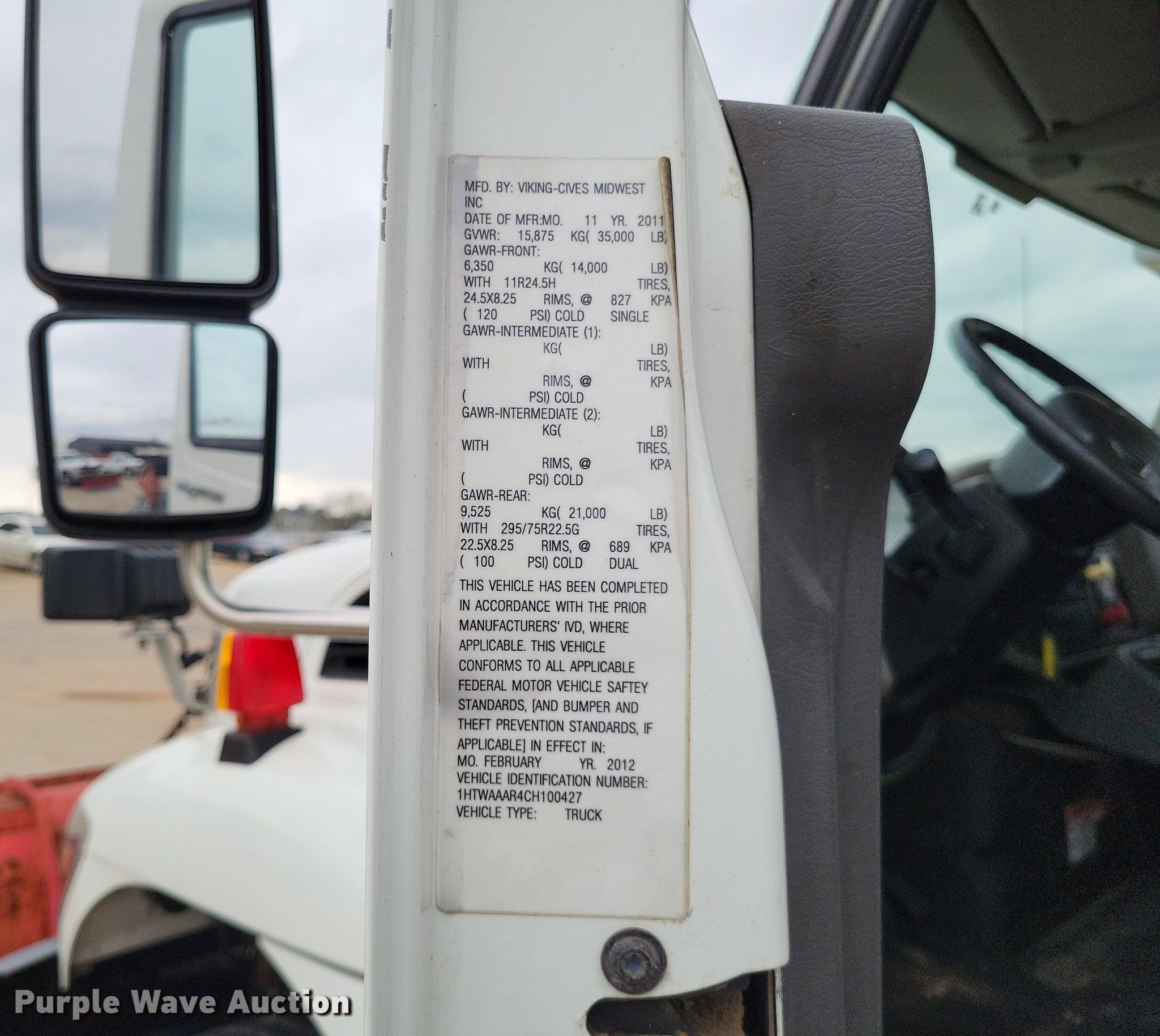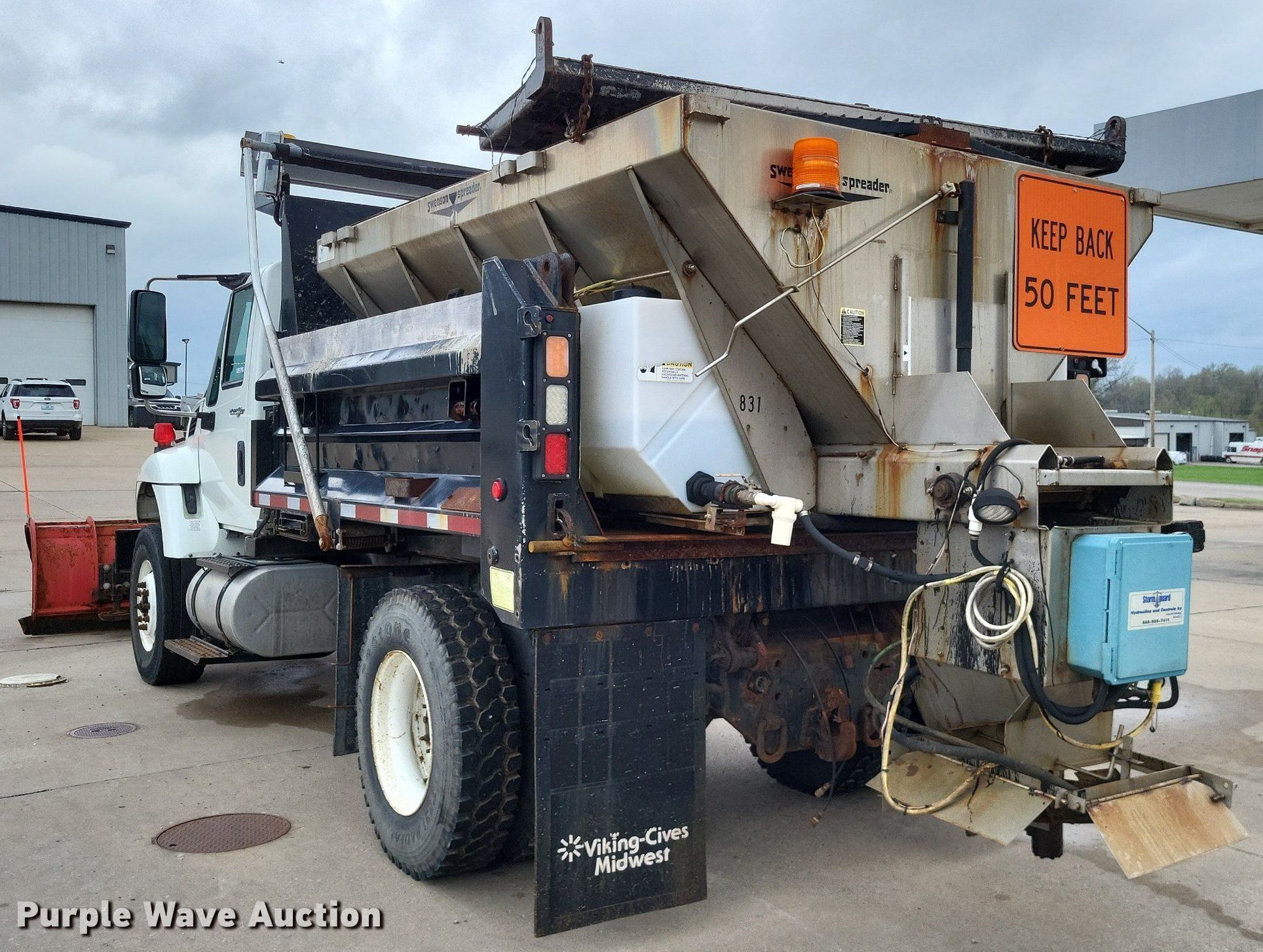 2012 International WorkStar 7300 dump truck. Miles: 34,043 on odometer, Hours: 4,085 on meter, VIN: 1HTWAAAR4CH100427. Engine International Maxxforce DT, Displacement: 7.6L, Cylinders: 6, Fuel type: Diesel. Transmission Allison, Automatic. Chassis Axles: Single, Suspension: Spring, Brakes: Air, Front mount PTO. Interior AC, Heat, Heated mirrors, Cruise control. Features Dump bed Viking-Cives Midwest, Inc. MD1026, 10' L x 87" W, Side height: 26", Side board height: 5", Bed type: Steel, Roll tarp, Ram: Single , End gate: Air operated, Spreader Swenson 57, Serial: 51-1121, Plow Freedom, Width: 120". Tires Front: 315/80R22.5, Rear: 11R22.5. Missouri title. Title distribution may be delayed up to 14 days from verification of funds. City of Cape Girardeau. 2007 Southern Expressway. Cape Girardeau, MO 63703