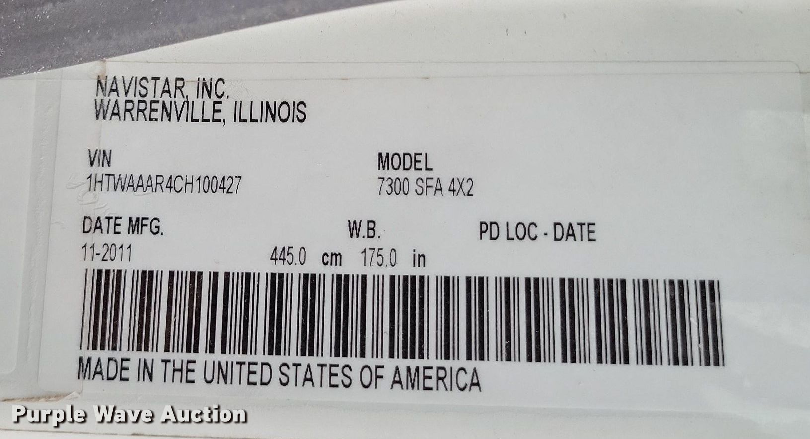 Purple Wave is selling a used Construction Dump Truck in Missouri. This item is a 2012 International WorkStar 7300 dump truck with the following: Miles: 34,043 on odometer, Hours: 4,085 on meter, VIN: 1HTWAAAR4CH100427
