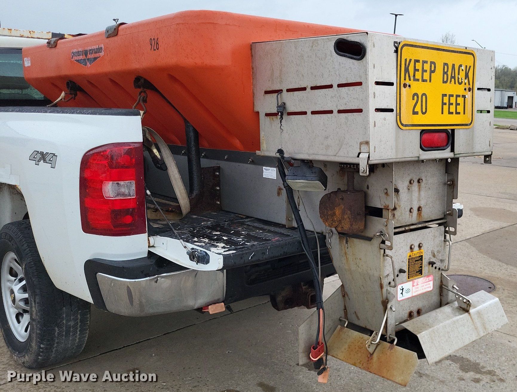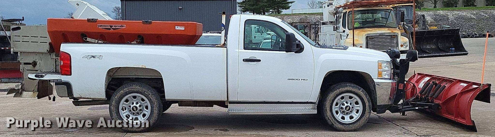 2011 Chevrolet Silverado 3500HD pickup truck. Miles: 61,112 on odometer, VIN: 1GC3KZCGXBF140965. Engine Displacement: 6.0L V8 OHV, Cylinders: 8, Fuel type: Gas. Transmission Automatic, Four wheel drive. Interior AC, Heat, Cruise control. Features The Boss RT3 snow plow Serial: BC030100, Swenson spreader Serial: 1108-1144. Notes Dash warning indicator: Check engine. Missouri title. Title distribution may be delayed up to 14 days from verification of funds. City of Cape Girardeau. 2007 Southern Expressway. Cape Girardeau, MO 63703
