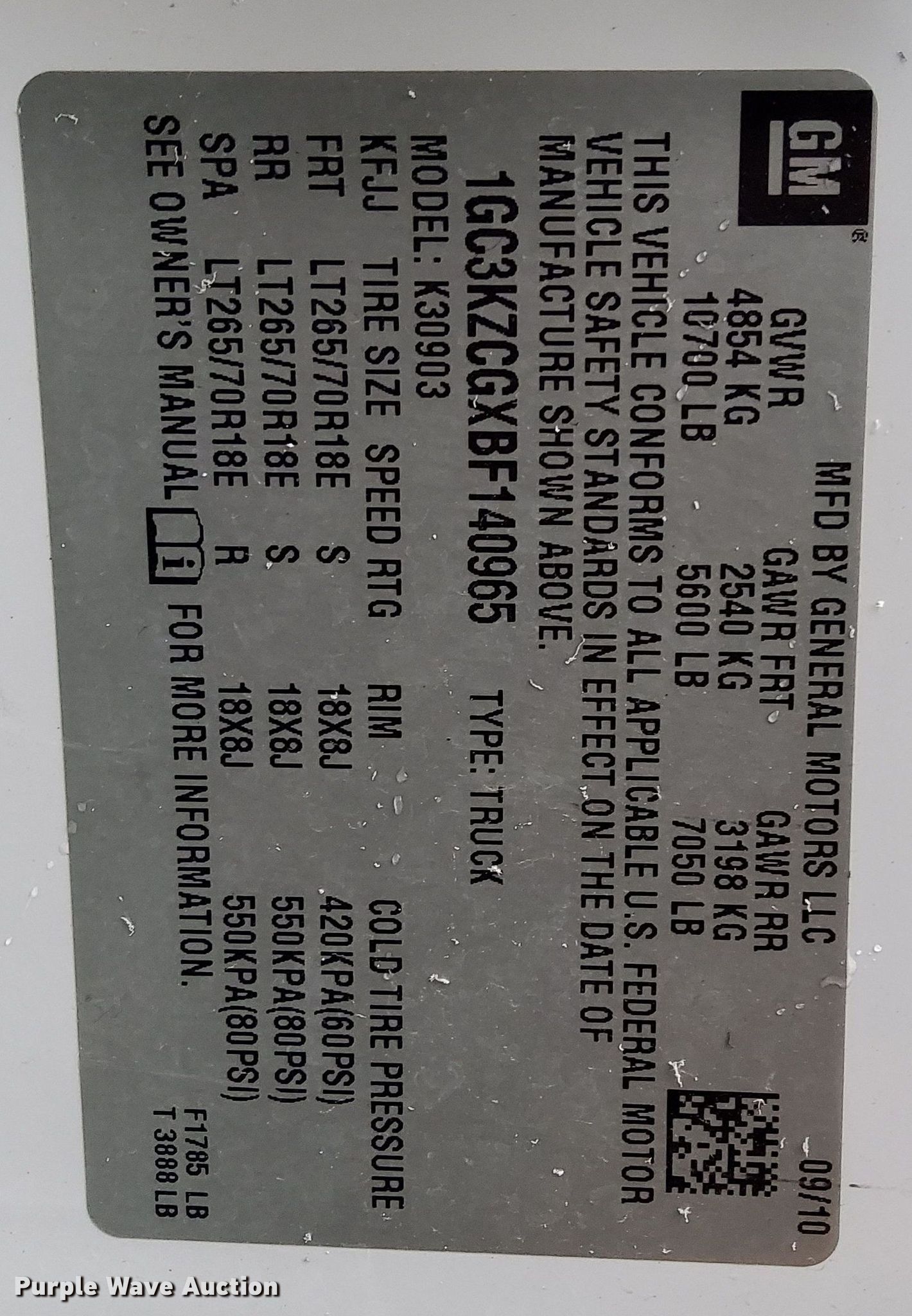 - VIN: 1GC3KZCGXBF140965