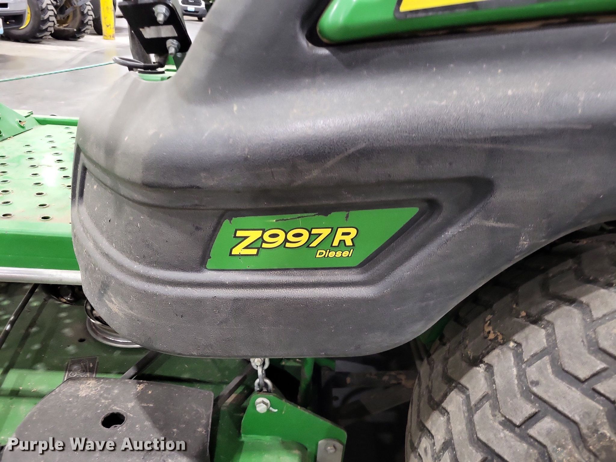 Purple Wave is selling a used Commercial Turf Mower in Missouri. This item is a 2017 John Deere Z997R ZTR lawn mower with the following: Hours: 1,358 on meter, Cutting width: 60", Serial: 1TCZ997RJGM021281