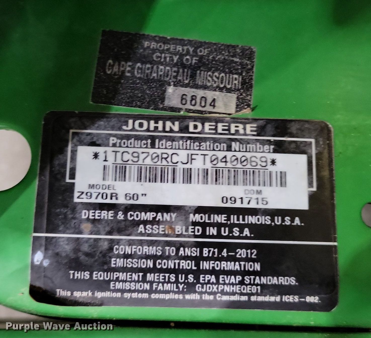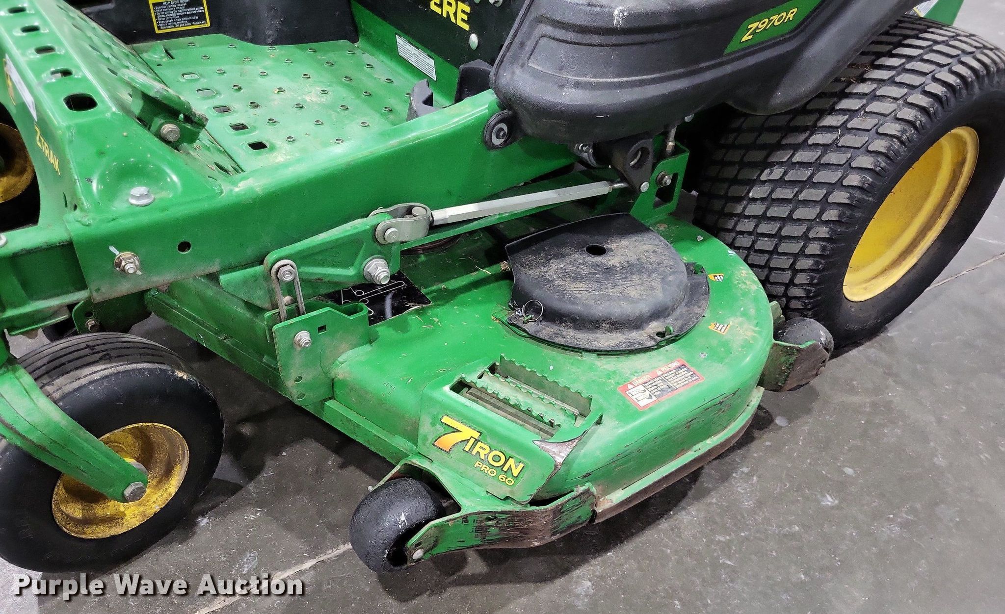 Purple Wave is selling a used Commercial Turf Mower in Missouri. This item is a John Deere Z970R ZTR lawn mower with the following: Hours: 1,044 on meter, Cutting width: 60", Serial: 1TC970RCJFT040069