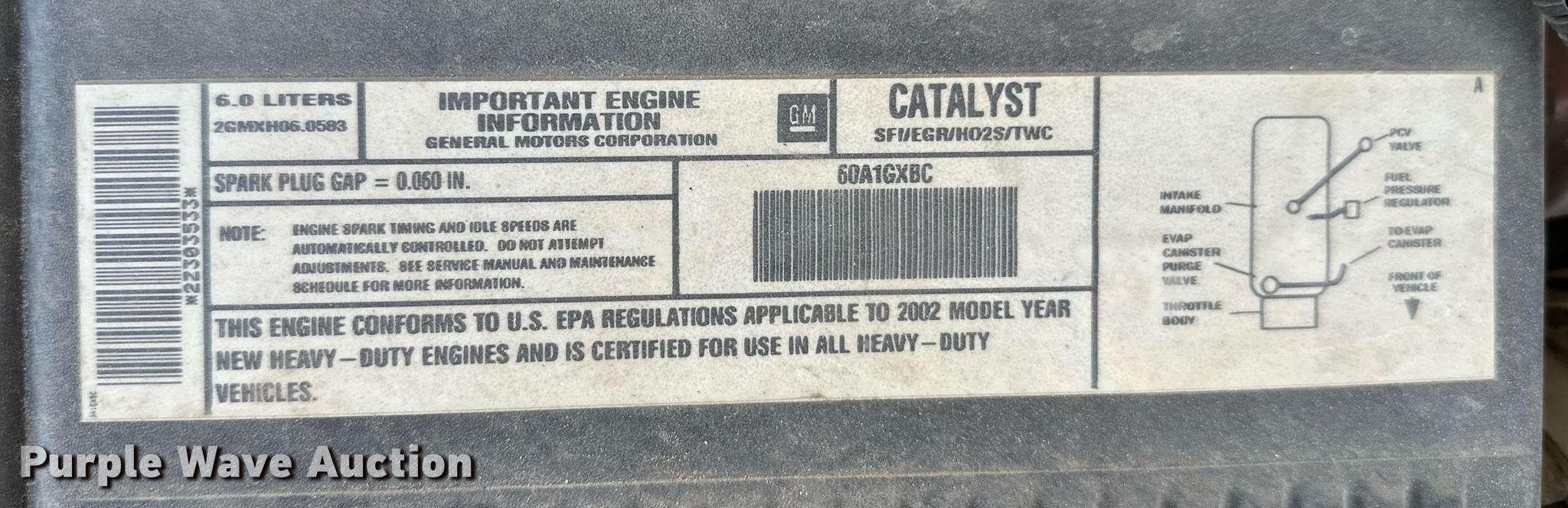 2002 Chevrolet Silverado 2500 pickup truck. Miles: 210,773 on odometer, VIN: 1GCGC24U72Z303533. Engine Displacement: 6.0L V8 OHV, Cylinders: 8, Fuel type: Gas. Transmission Automatic. Interior AC, Heat, Cruise control. Tires Size: 245/75R16. Notes Auxiliary fuel tank issues, leaks, Tailgate latch broken, Dash warning indicator: Check engine, Oil leak. Oklahoma title. Title distribution may be delayed up to 30 days from verification of funds. LeFlore County, OK. 310 Kerr Avenue. Poteau, OK 74953