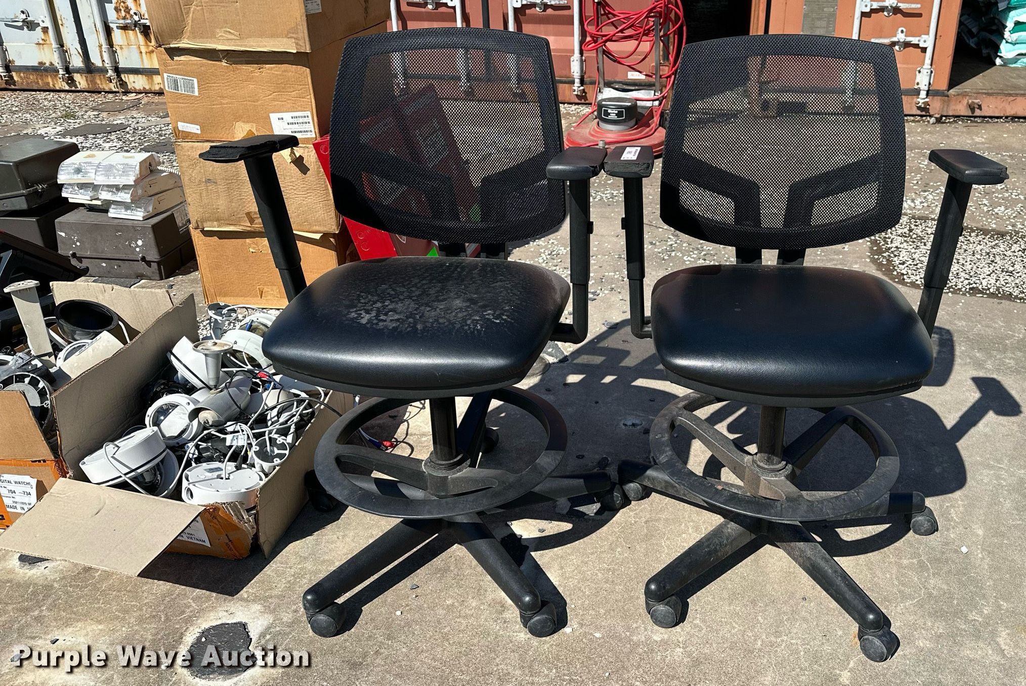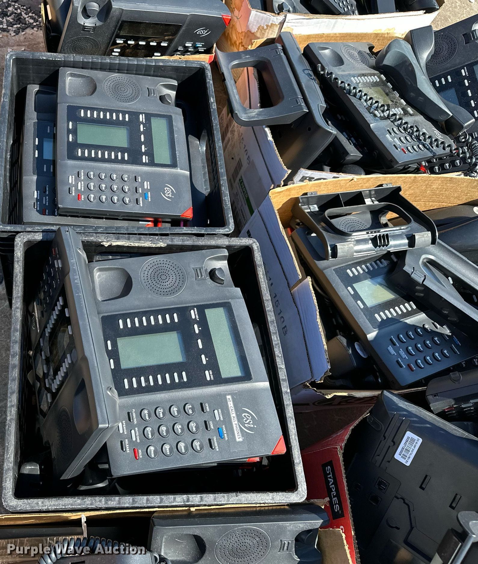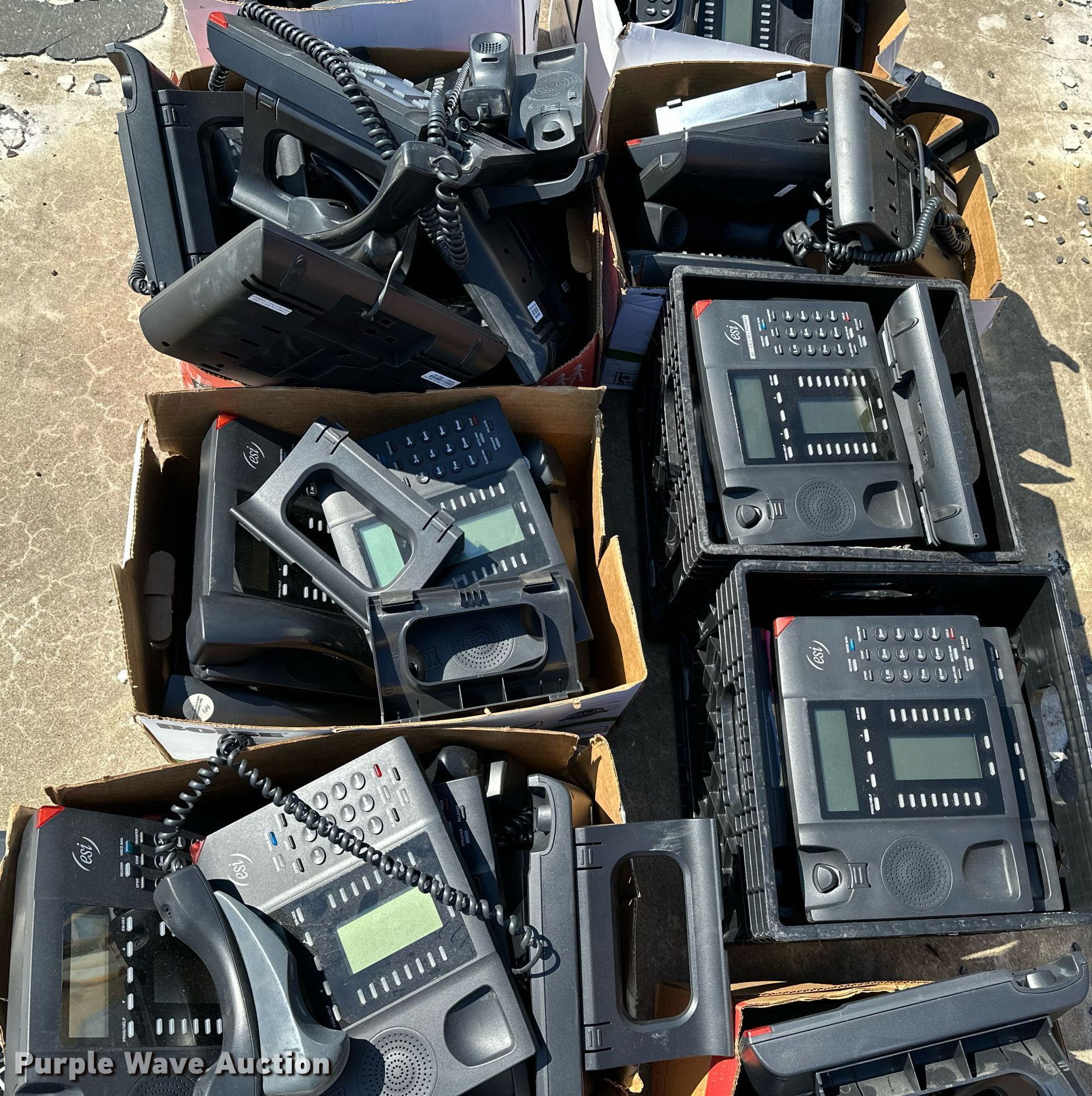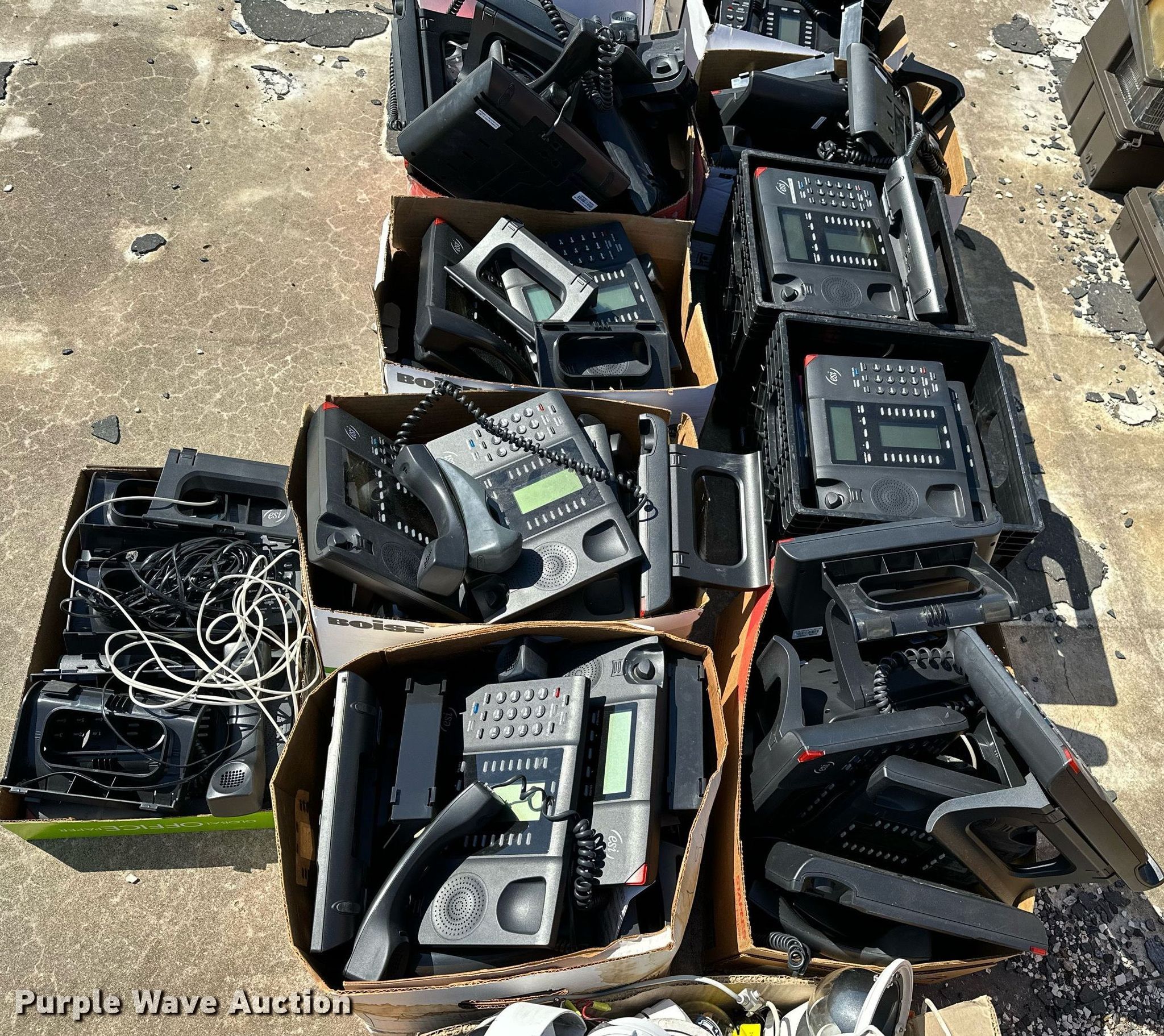 Purple Wave is selling a used Office Supplies and Equip. in Oklahoma. This item is a Office equipment with the following: Desk, (2) chairs, (2) boxes of security cameras, Approximately 20 phones, Unknown operating condition of cameras and phones