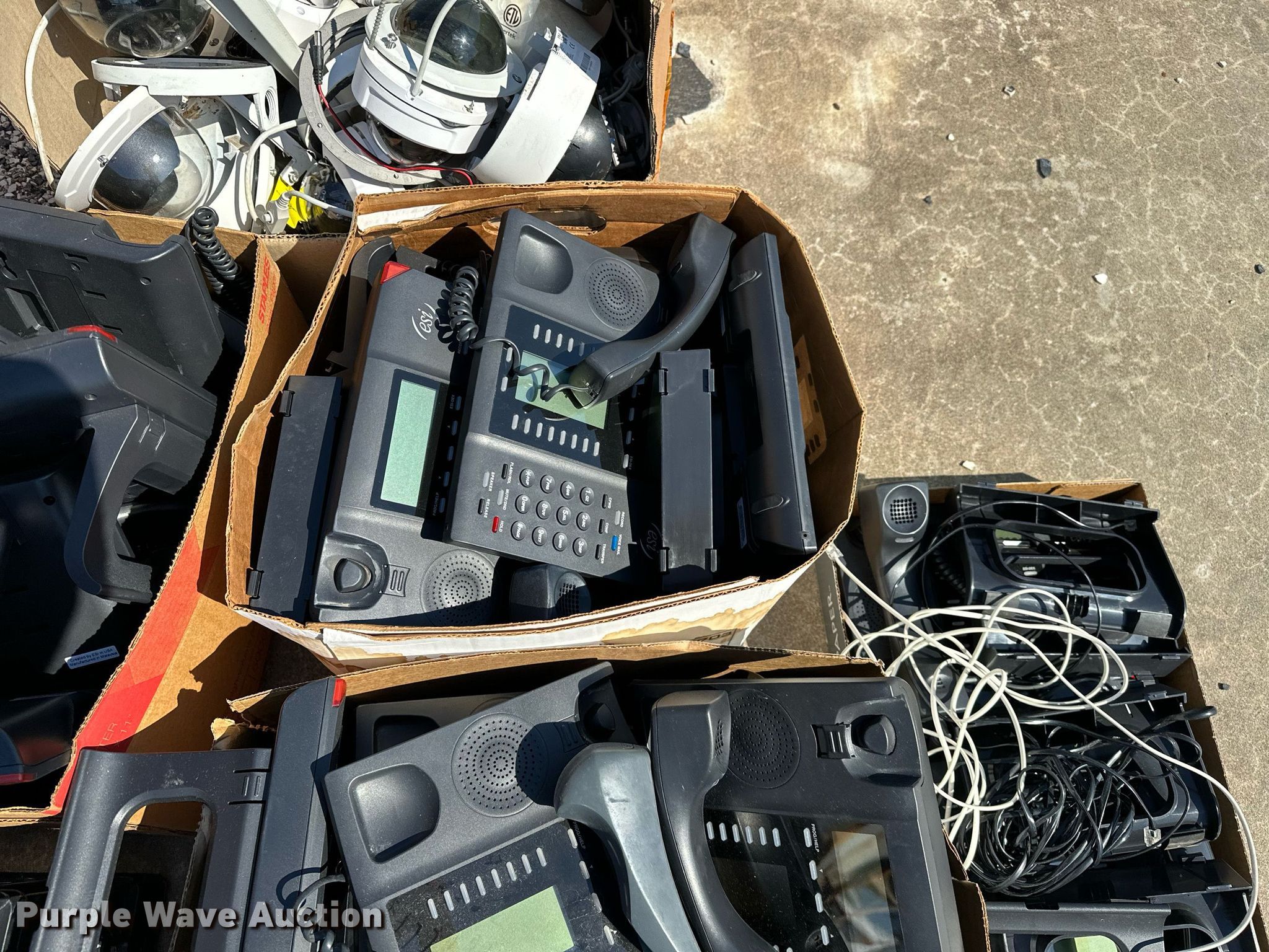 Office equipment. Desk, (2) chairs, (2) boxes of security cameras, Approximately 20 phones, Unknown operating condition of cameras and phones. Lincoln County, OK. 811 Manvel Ave, Suite 5. Chandler, OK 74834