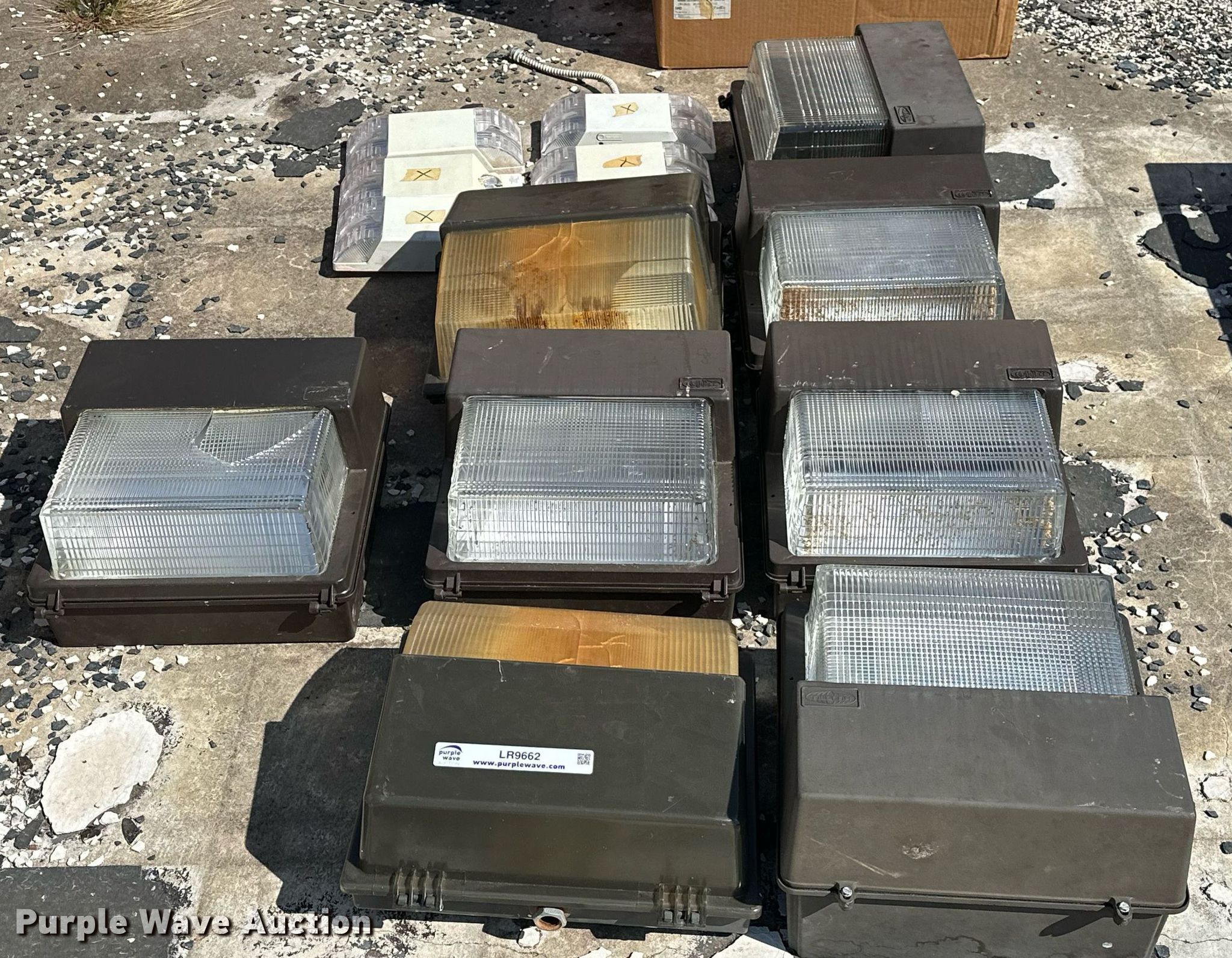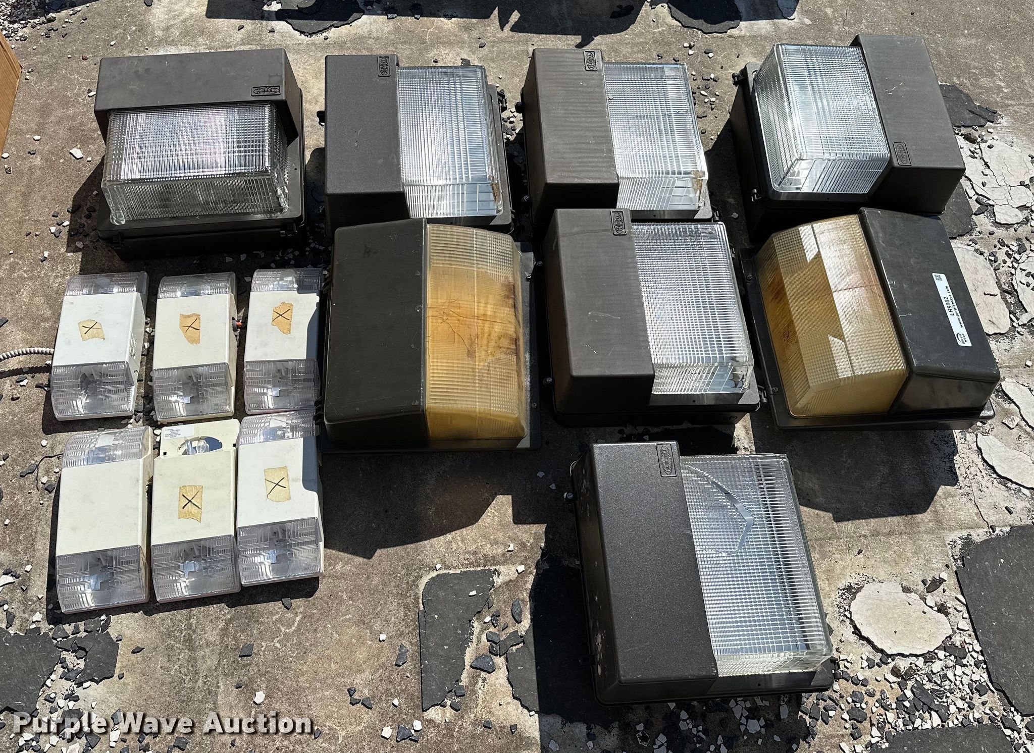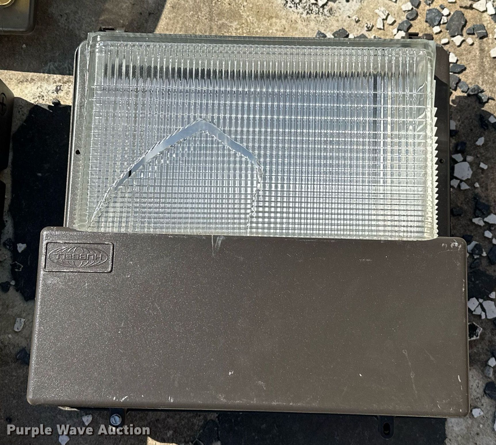 (12) lights. (8) Hubbell 13" L x 14" W, (4) 12" L x 5" W, Some bulbs missing, Unknown operating condition. Lincoln County, OK. 811 Manvel Ave, Suite 5. Chandler, OK 74834