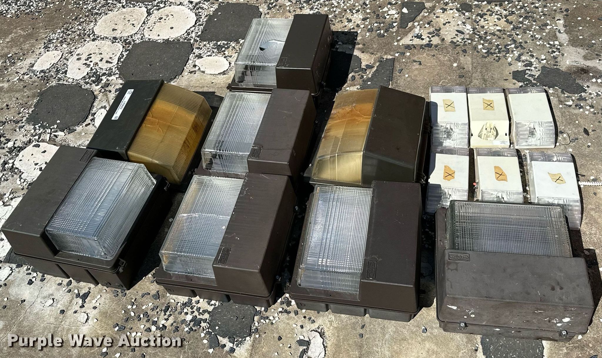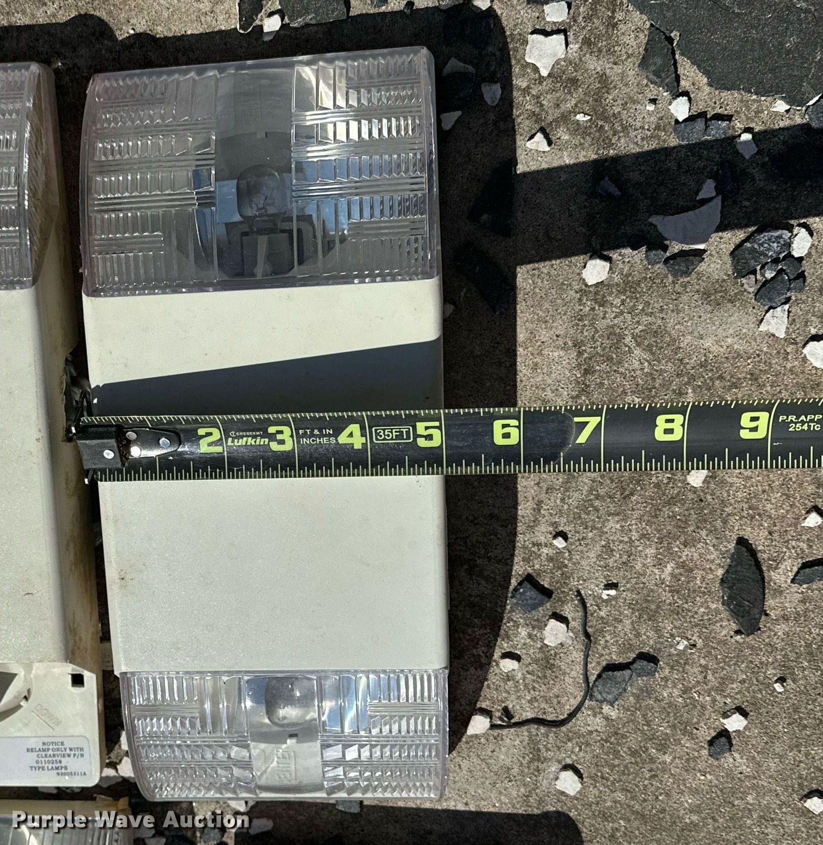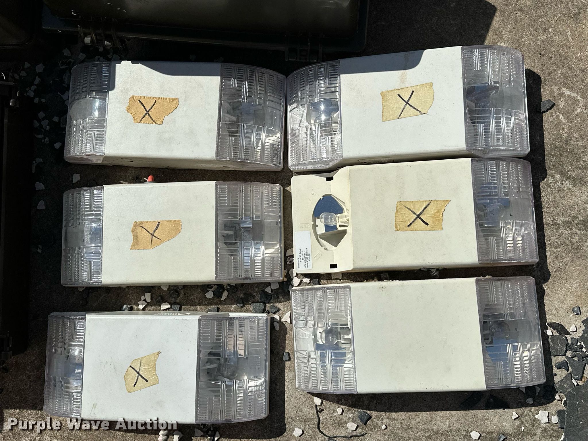 (12) lights. (8) Hubbell 13" L x 14" W, (4) 12" L x 5" W, Some bulbs missing, Unknown operating condition. Lincoln County, OK. 811 Manvel Ave, Suite 5. Chandler, OK 74834