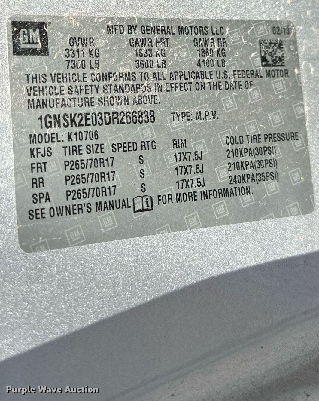 Purple Wave is selling a used Passenger Vehicle in Oklahoma. This item is a 2013 Chevrolet Tahoe Police SUV with the following: Miles: 217,351 on odometer, VIN: 1GNSK2E03DR266838