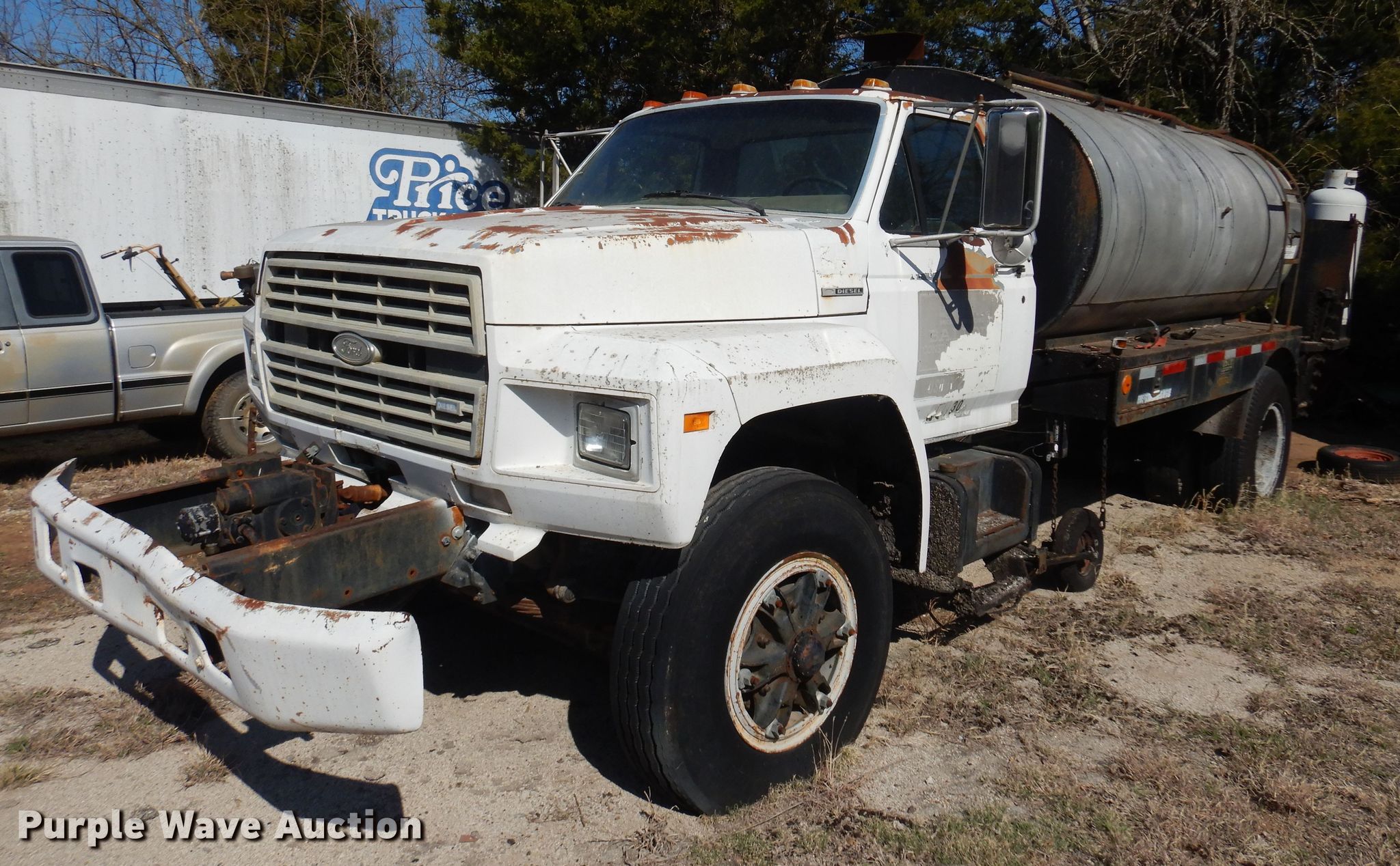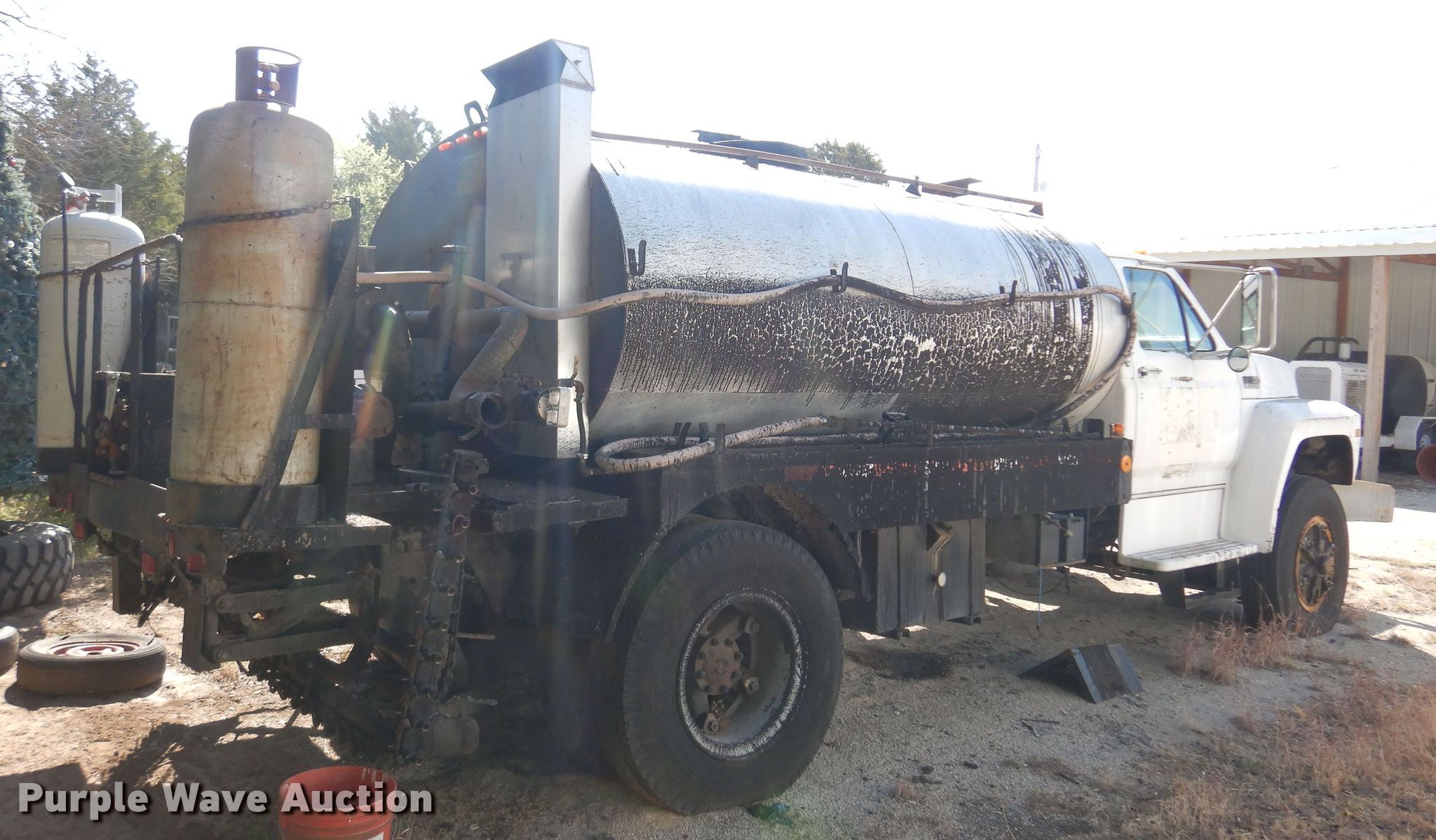 Purple Wave is selling a used Oil Distributor Truck in Kansas. This item is a 1990 Ford F800 oil distributor truck with the following: VIN: 1FDXK84A0LVA13702