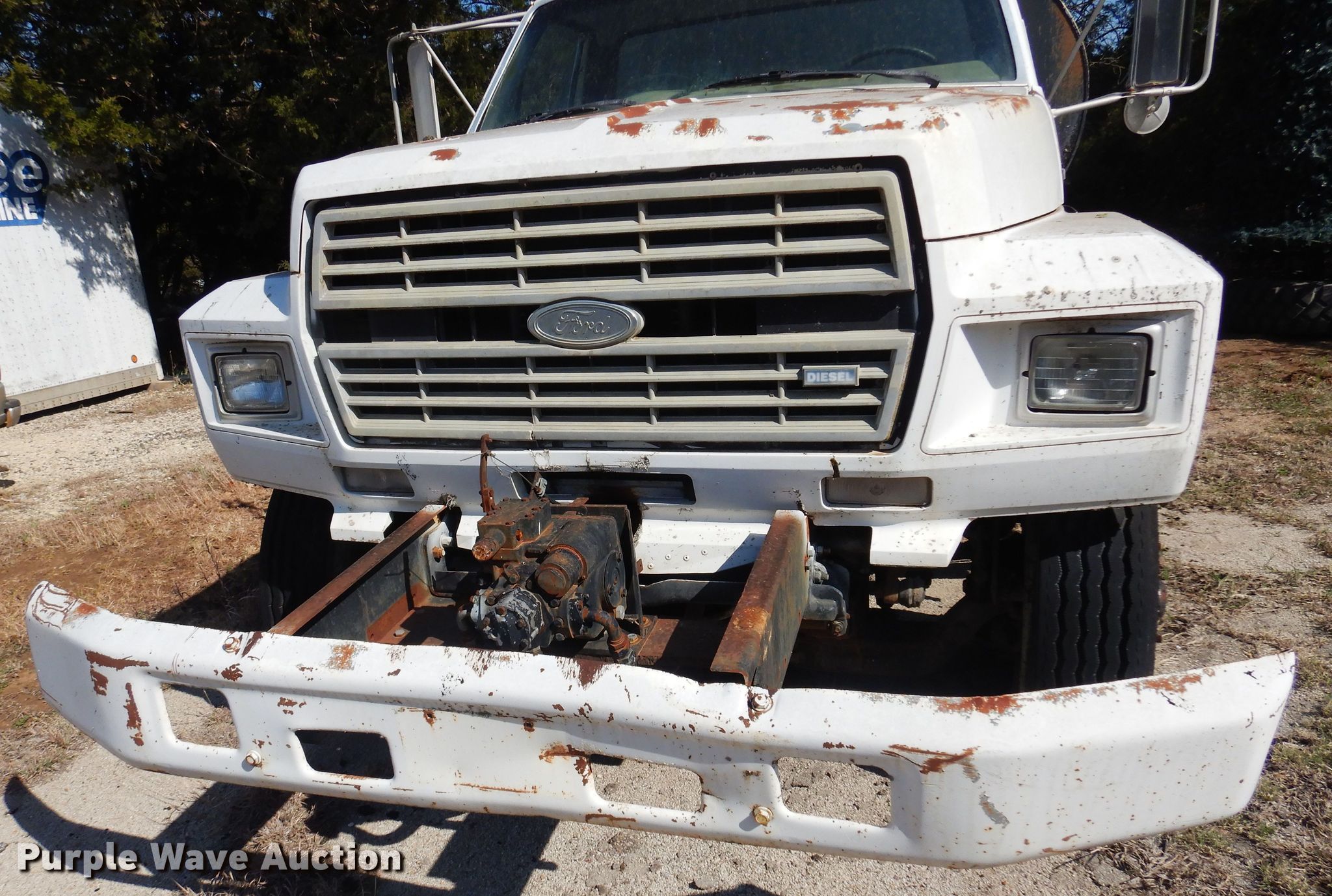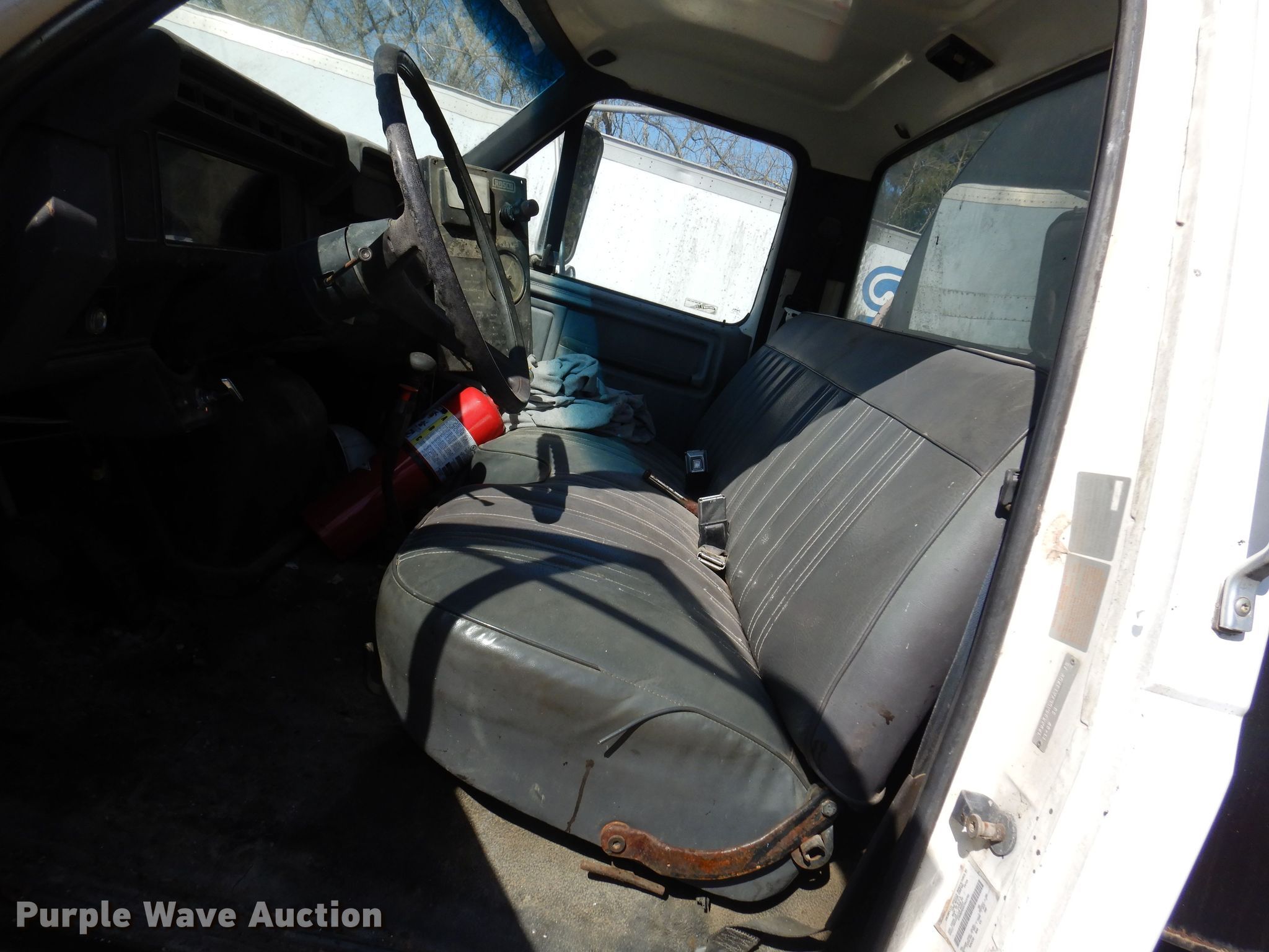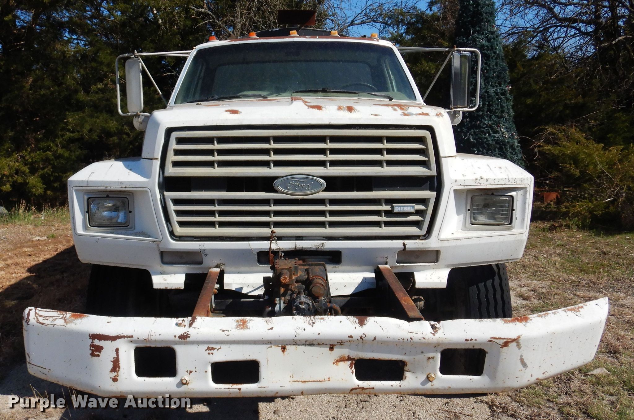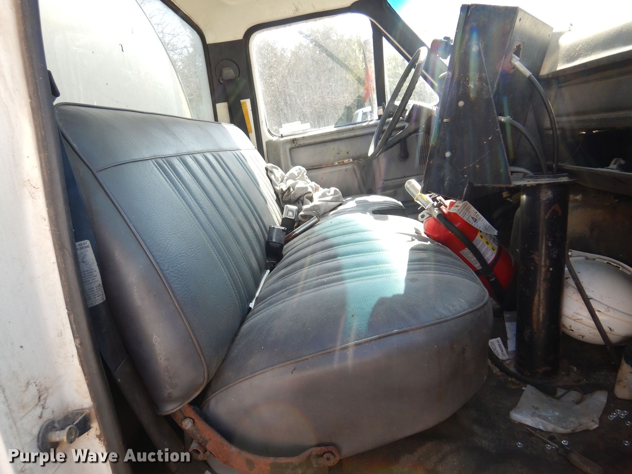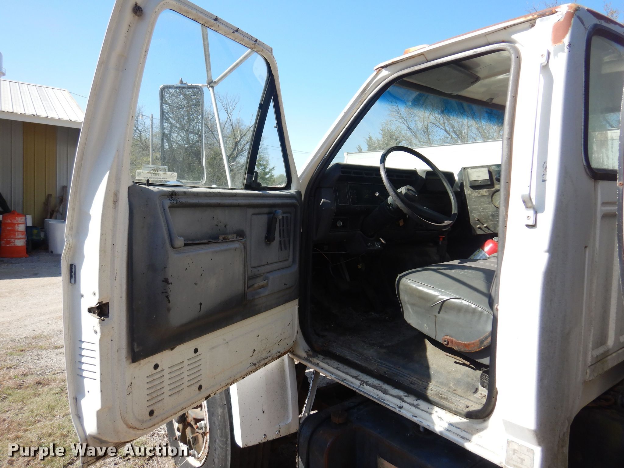1990 Ford F800 oil distributor truck. VIN: 1FDXK84A0LVA13702. Engine Displacement: 7.8L , Cylinders: 6, Fuel type: Diesel. Transmission Manual, Speed: 5, plus 2. Chassis Axles: Single, Suspension: Spring, Brakes: Air, PTO. Interior Heat. Features Bed / tank 14' L x 96" W, Burner: LPG, In-cab controls, Spray boom Width: 12', Folding.. Tires Size: 10.00R20. Notes Non-operational unit. Kansas title. Mileage has not been verified. Exempt will be written in the odometer disclosure on the title. Title distribution may be delayed up to 14 days from verification of funds. City of Leon. 111 S Main. Leon, KS 67074