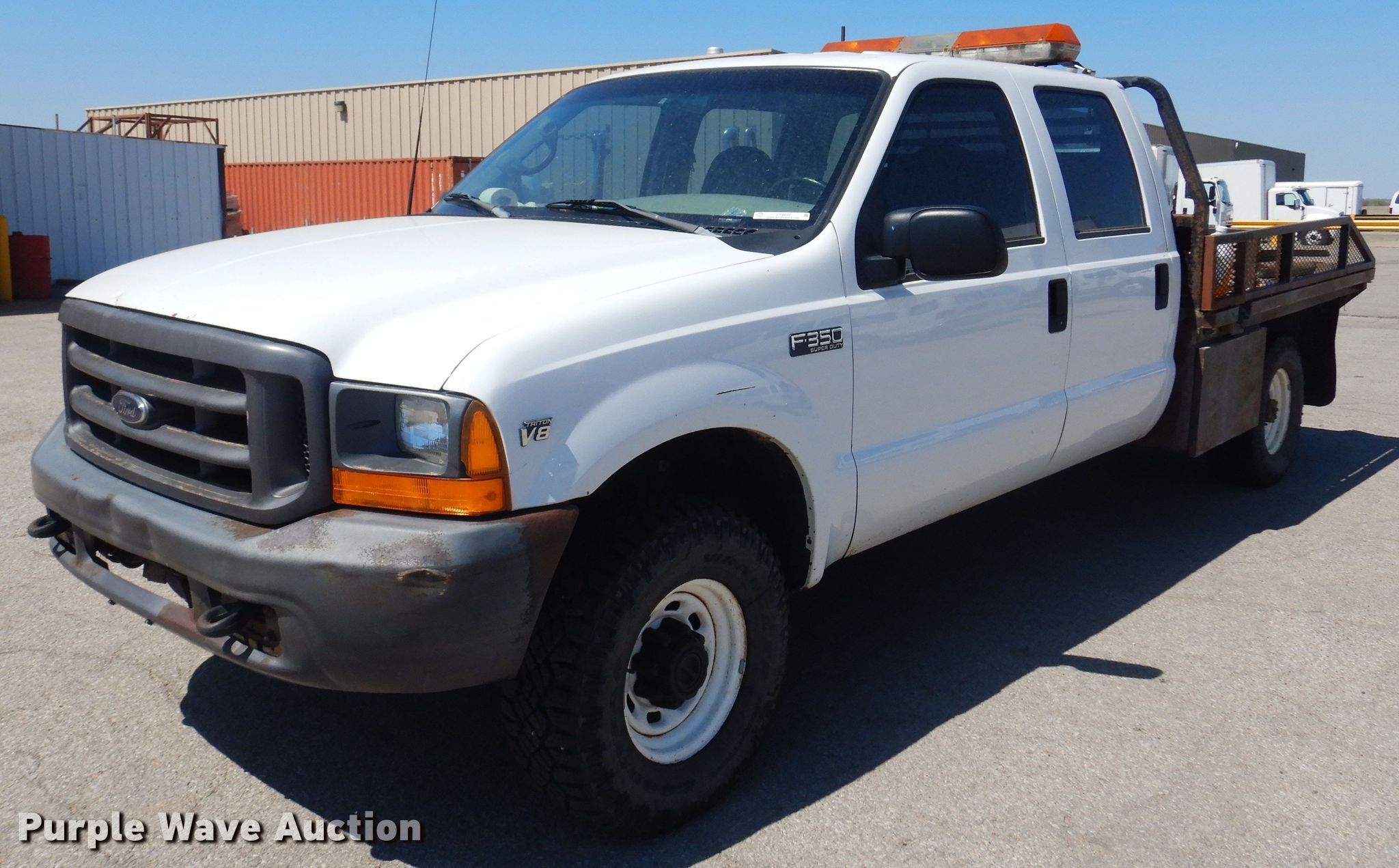 2000 Ford F350 Super Duty Crew Cab flatbed pickup truck
