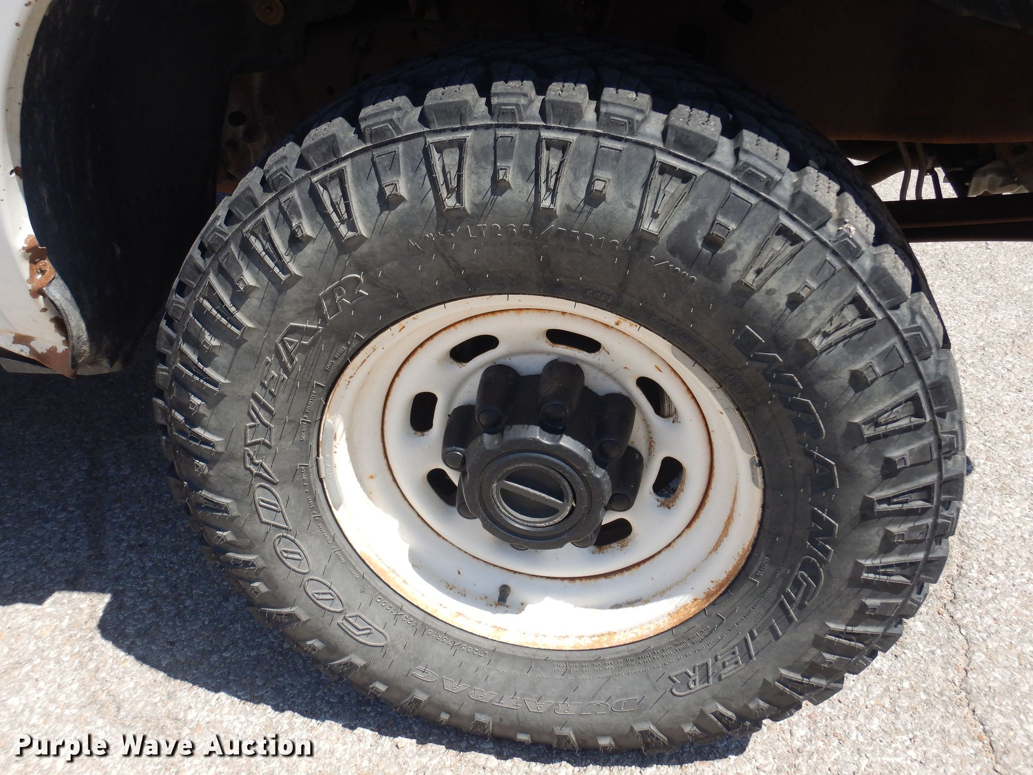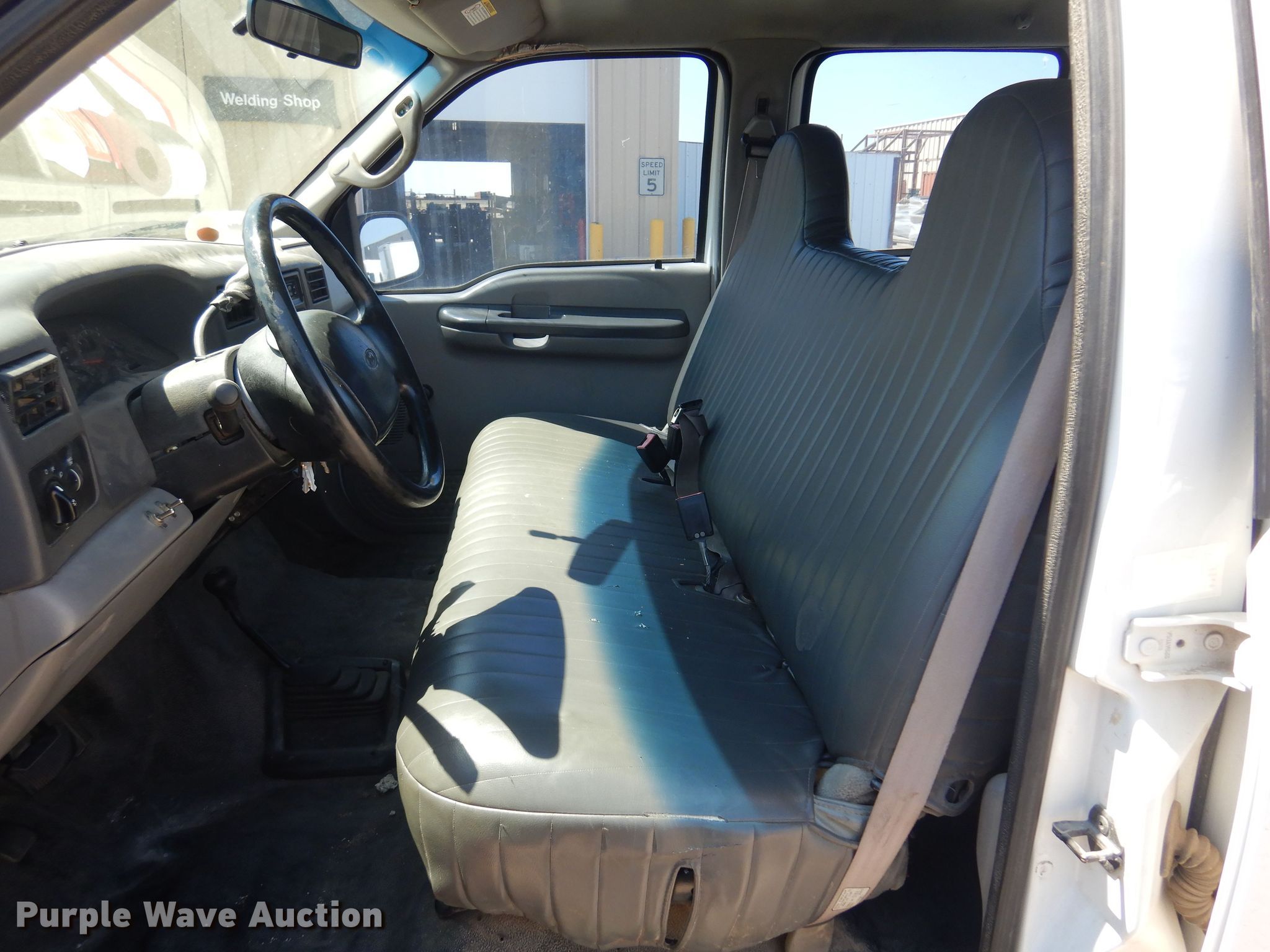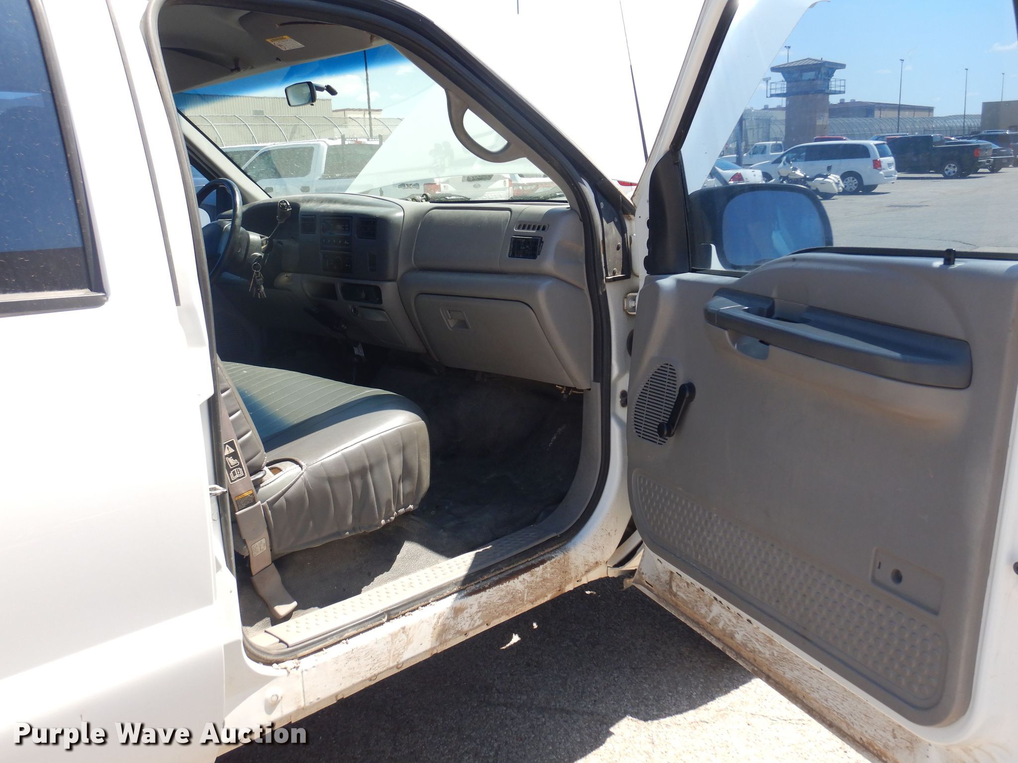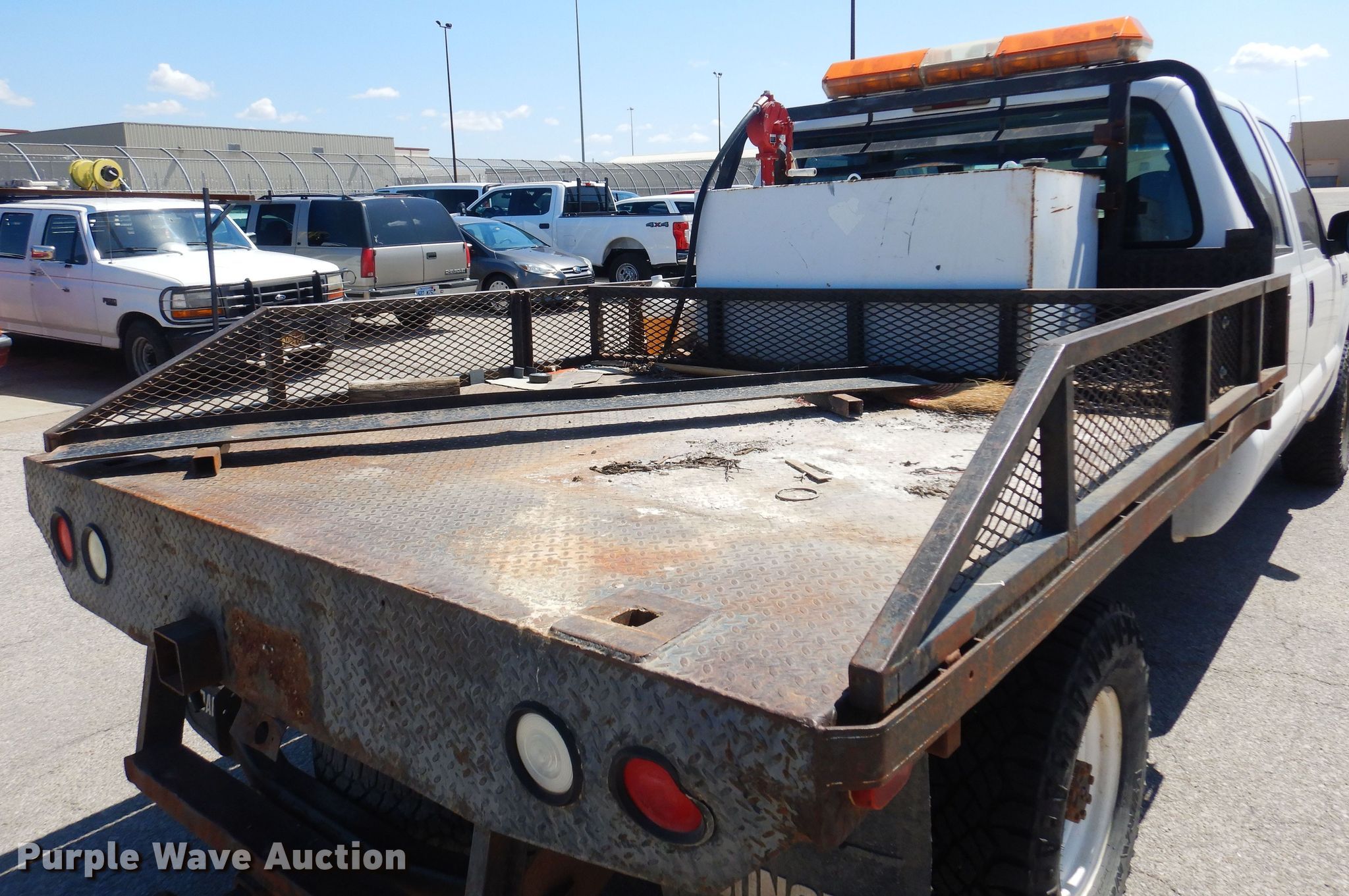 2000 Ford F350 Super Duty Crew Cab flatbed pickup truck. Miles: 143,742 on odometer, VIN: 1FTSW31L6YEA61269. Engine Displacement: 5.4L V8 SOHC, Cylinders: 8, Fuel type: Gas. Transmission Automatic, Four wheel drive. Interior AC, Heat, Cruise control. Features Flatbed 8' 5" L x 85" W, Auxiliary fuel tank Capacity: 100 gallons. Tires Size: 265/75R16. Kansas title. Title distribution may be delayed up to 14 days from verification of funds. El Dorado Correctional Facility. El Dorado, KS 67042