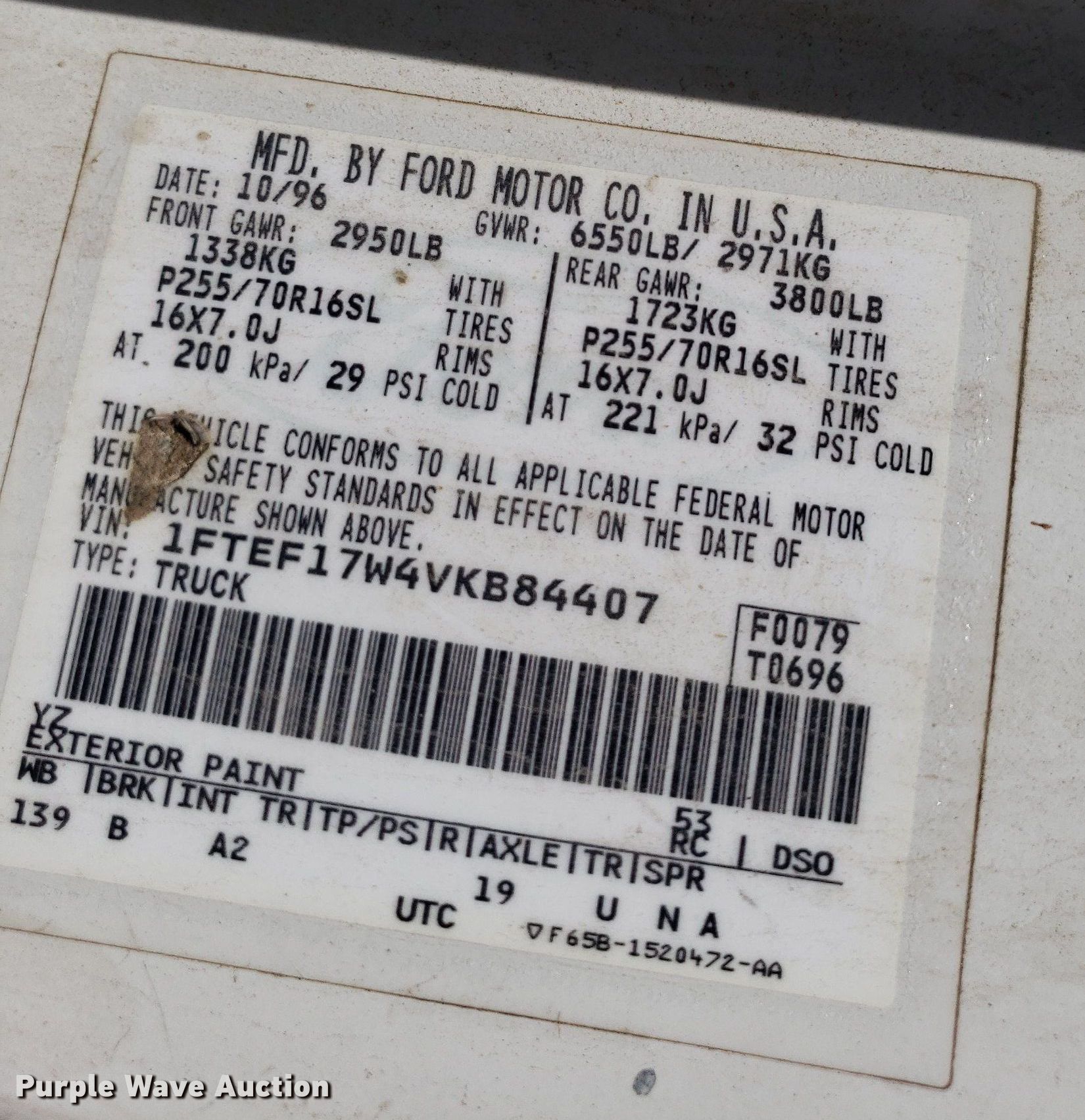 • VIN: 1FTEF17W4VKB84407