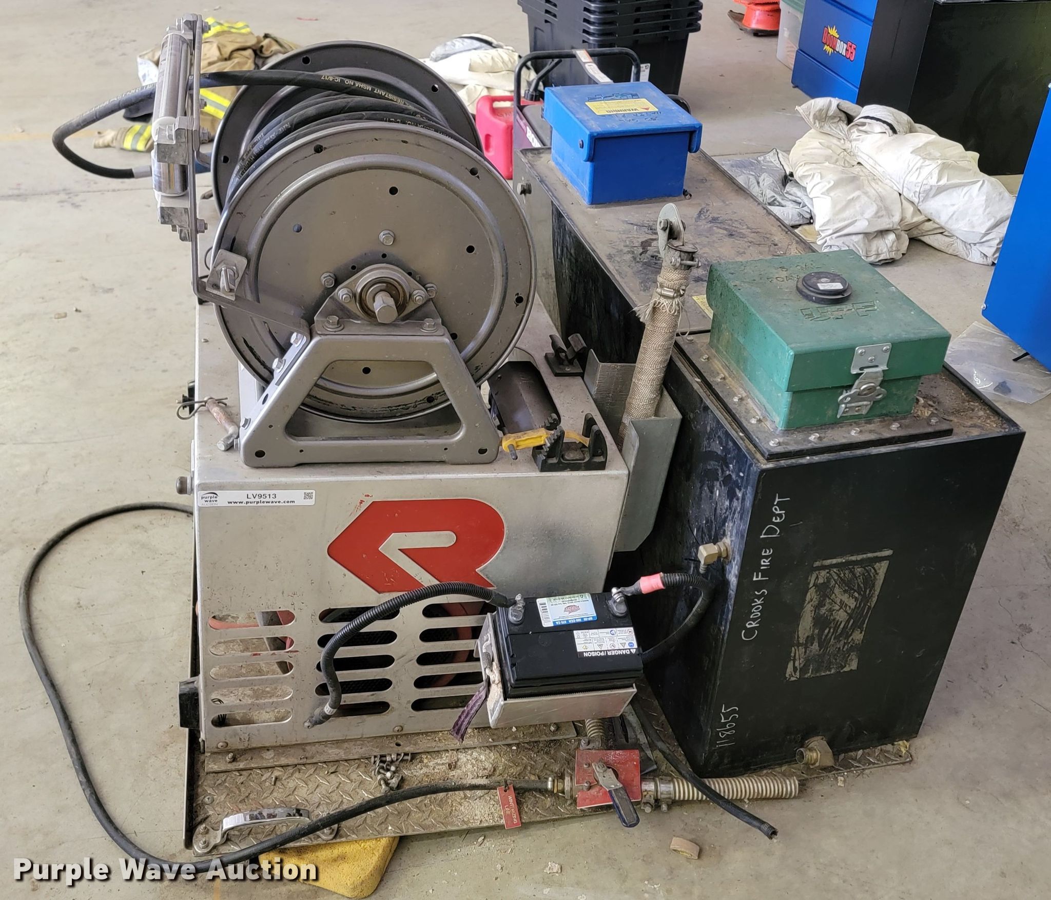 Purple Wave is selling a used Tools in South Dakota. This item is a Rosenbauer fire suppression system with the following: Honda two cylinder gas engine, Water tank, Capacity: 50 gallons, Foam tank, Capacity: 5 gallons, Hose reel, Skid mounted