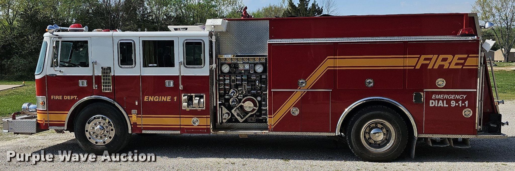 Purple Wave is selling a used Fire Truck or Emergency Vehicle in Missouri. This item is a 1989 Pierce pumper fire truck with the following: Miles: 34,118 on odometer, VIN: 1P9CT02J6KA040659