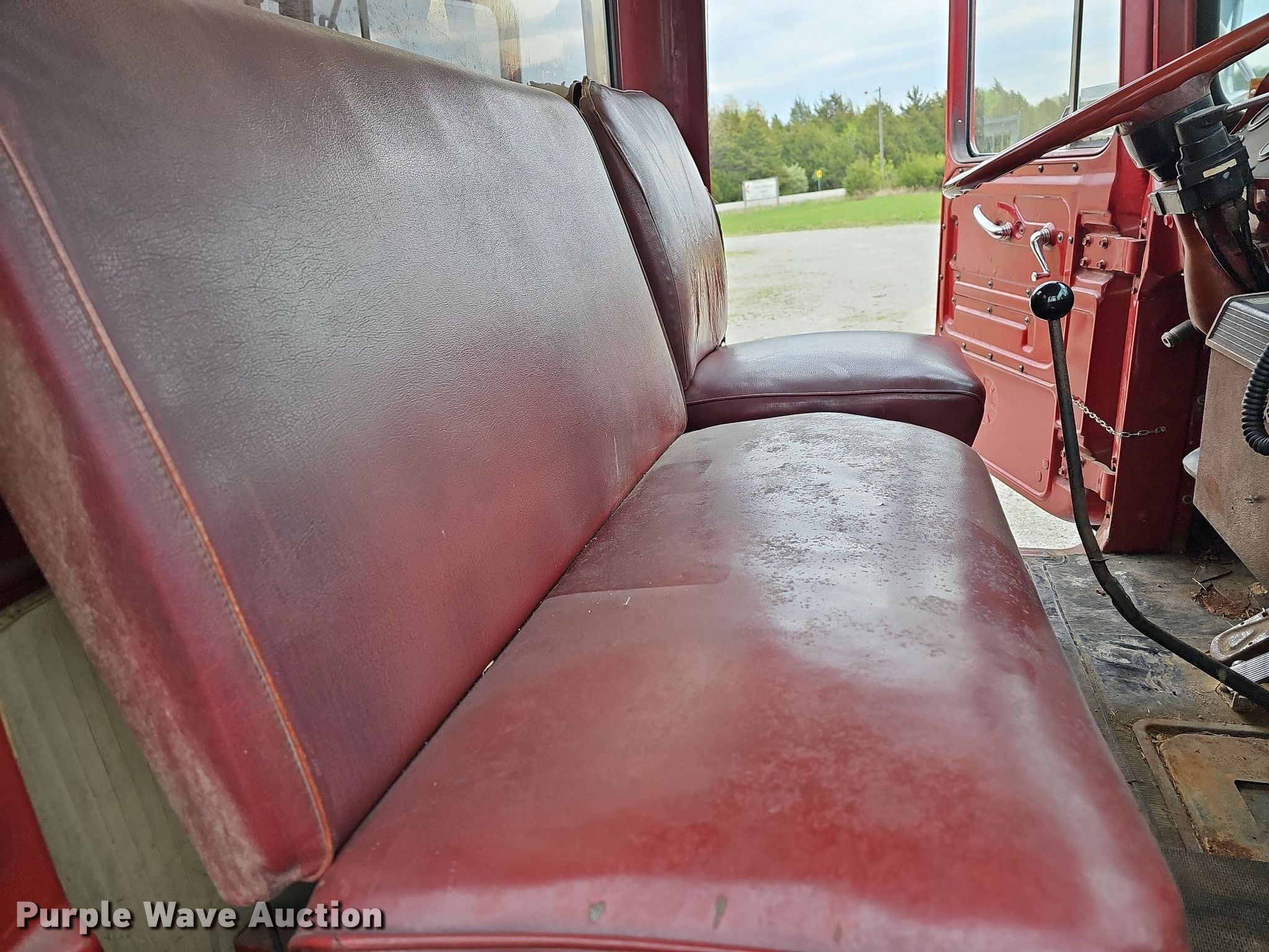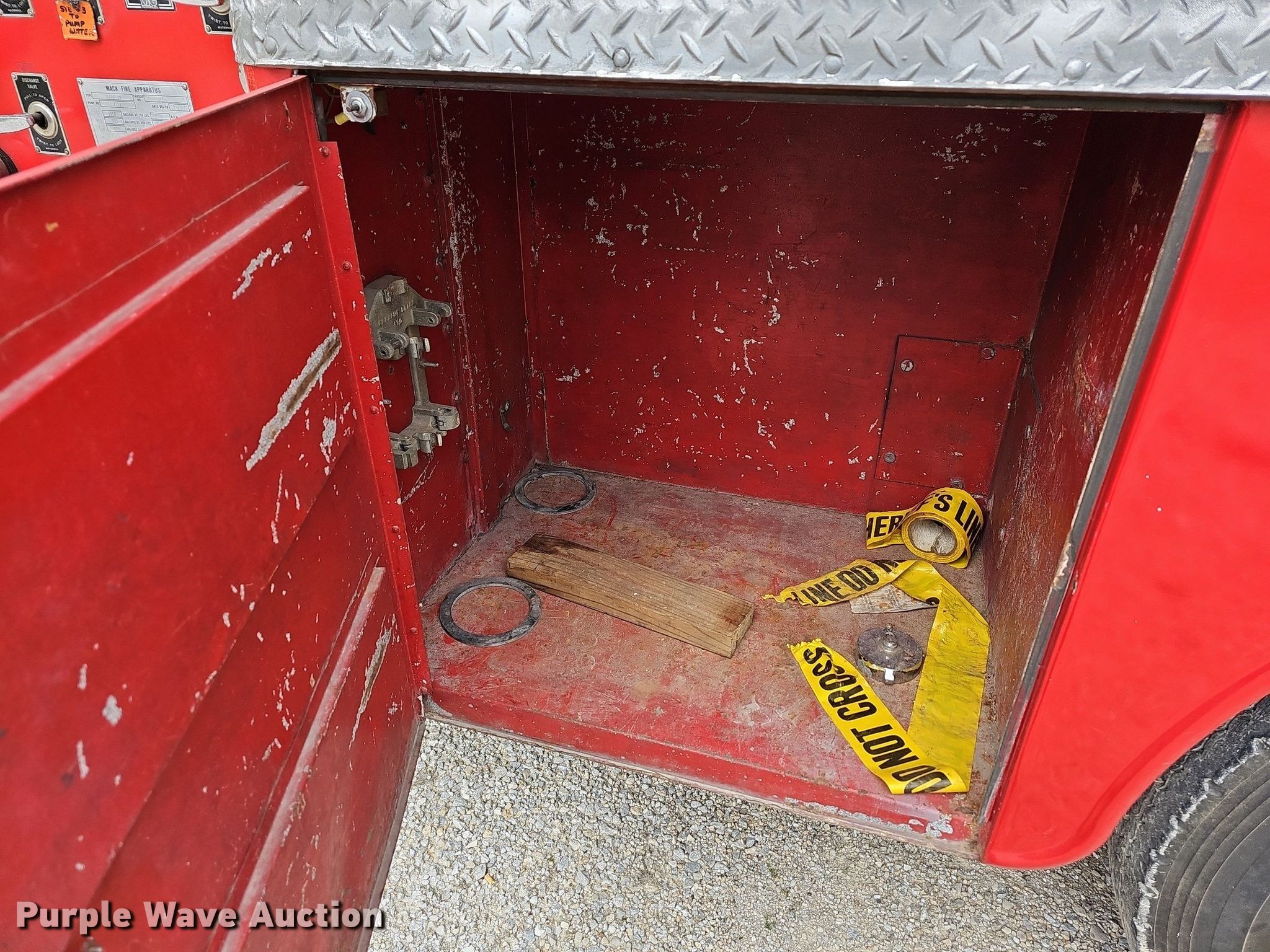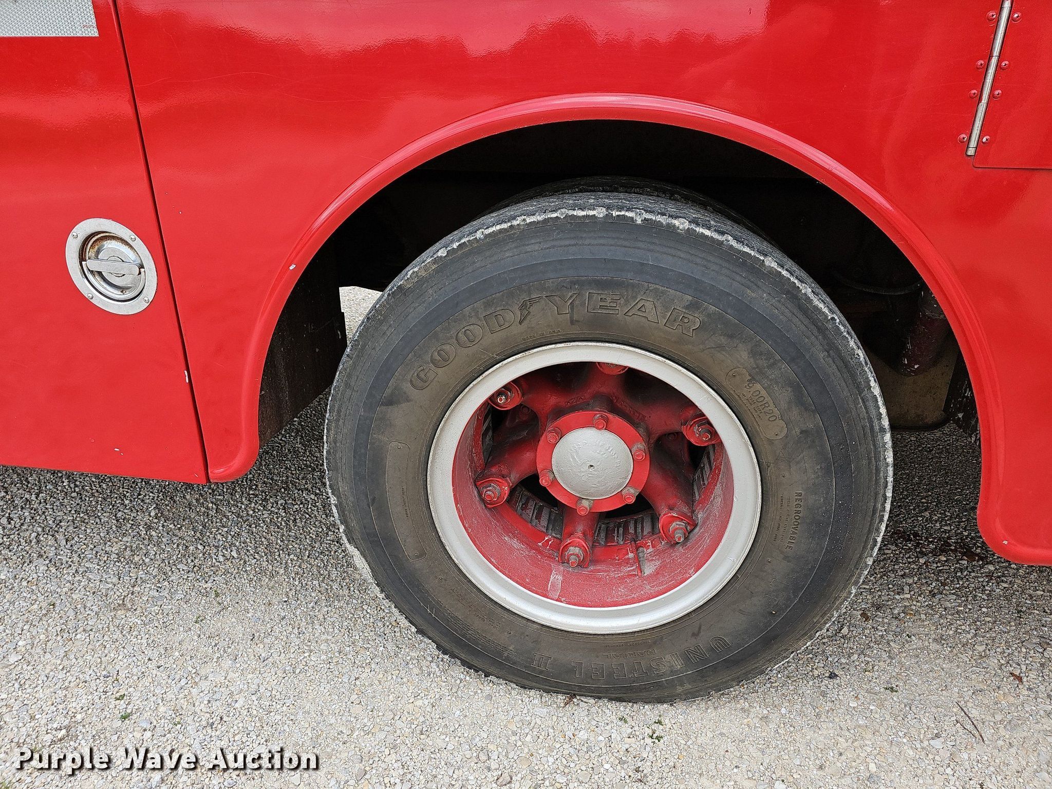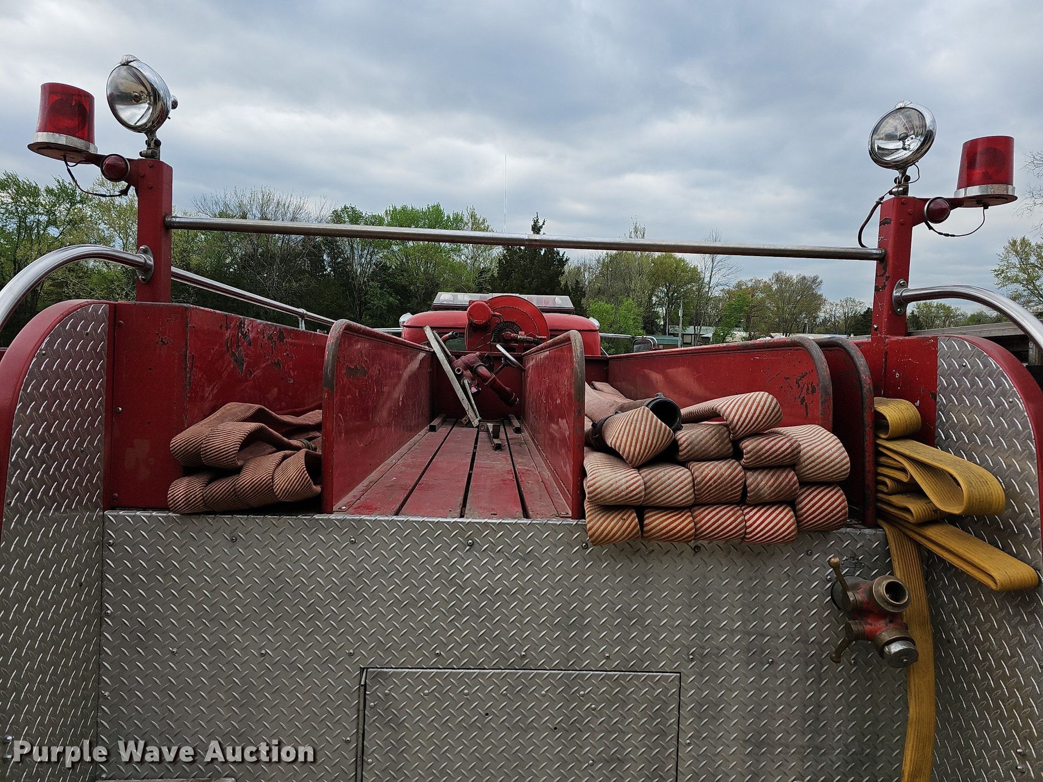 1973 Mack pumper fire truck. Miles: 91,065 on odometer, VIN: R608F1055. Engine Mack, Cylinders: 6, Fuel type: Gas. Transmission Manual, Speed: 5. Chassis Axles: Single, Suspension: Spring, Brakes: Air. Interior Heat. Features Fire truck body Pump 1,250 gpm, Hose reel Hose, Ladder. Tires Size: 9.00R20. Notes Contents not included, Dead battery. Missouri title. Title distribution may be delayed up to 14 days from verification of funds. Wheatland Vol Fire dept. 18901 Missouri 83. Wheatland, MO 65779