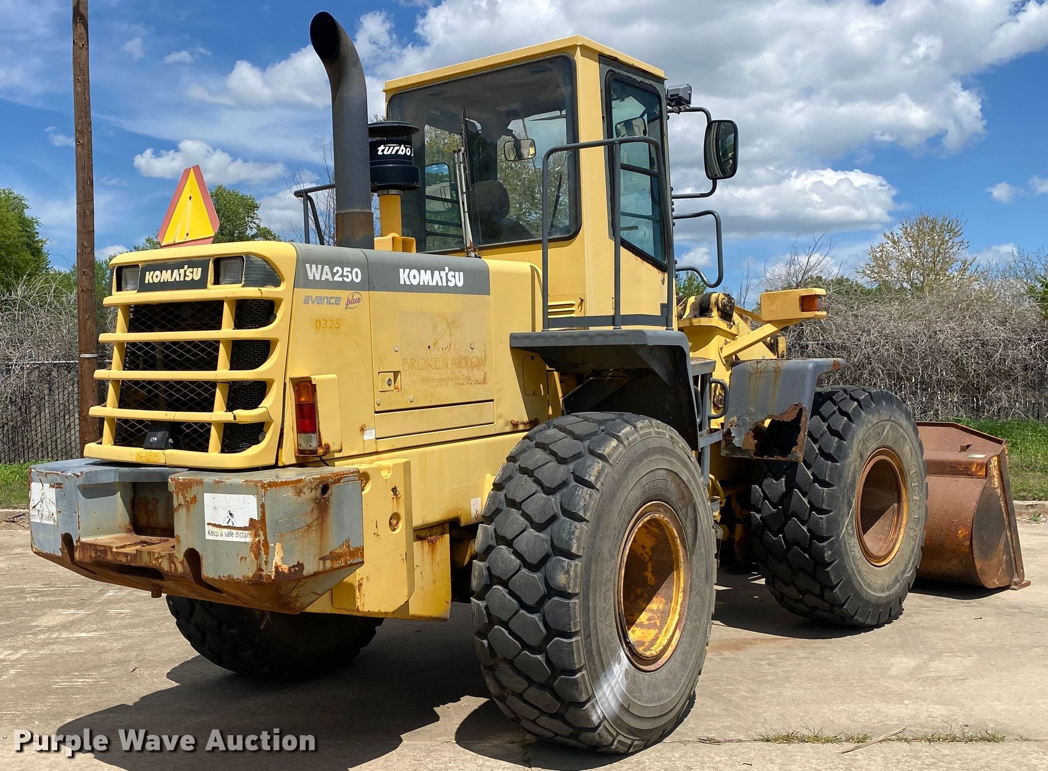Purple Wave is selling a used Wheel Loader in Oklahoma. This item is a 2003 Komatsu WA250-3MC wheel loader with the following: Hours: 5,038 on meter, Serial: A71838