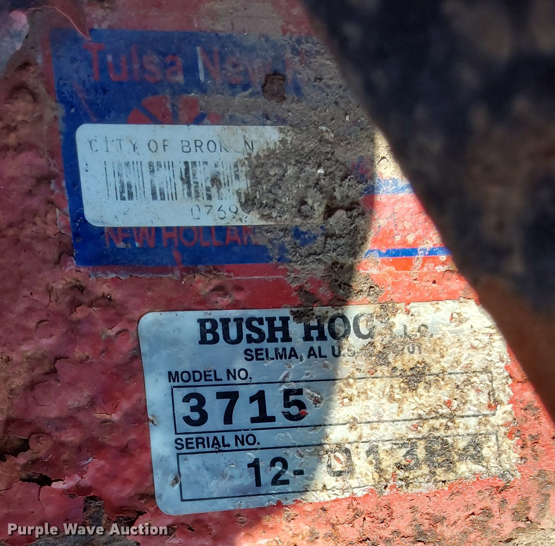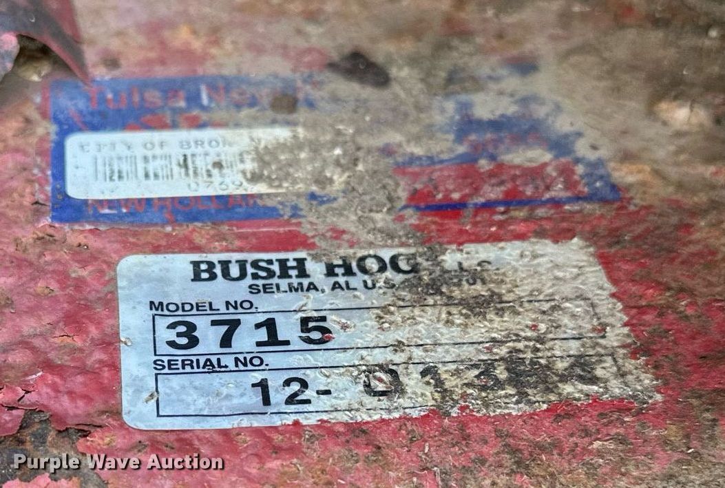 Purple Wave is selling a used Mower, Cutter, Shredder in Oklahoma. This item is a Bush Hog 3715 batwing rotary mower with the following: Serial: 12-01384, Unit #: 0449