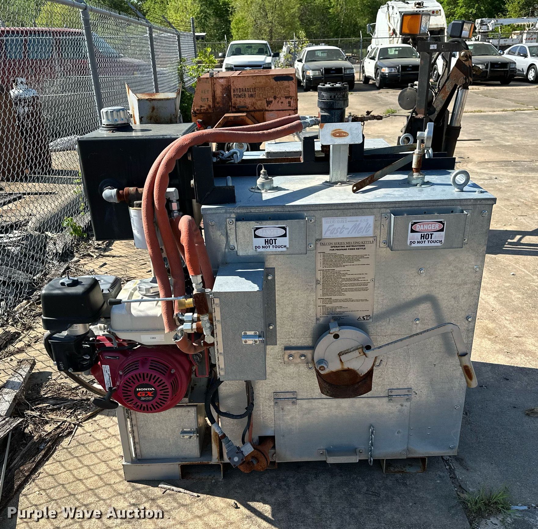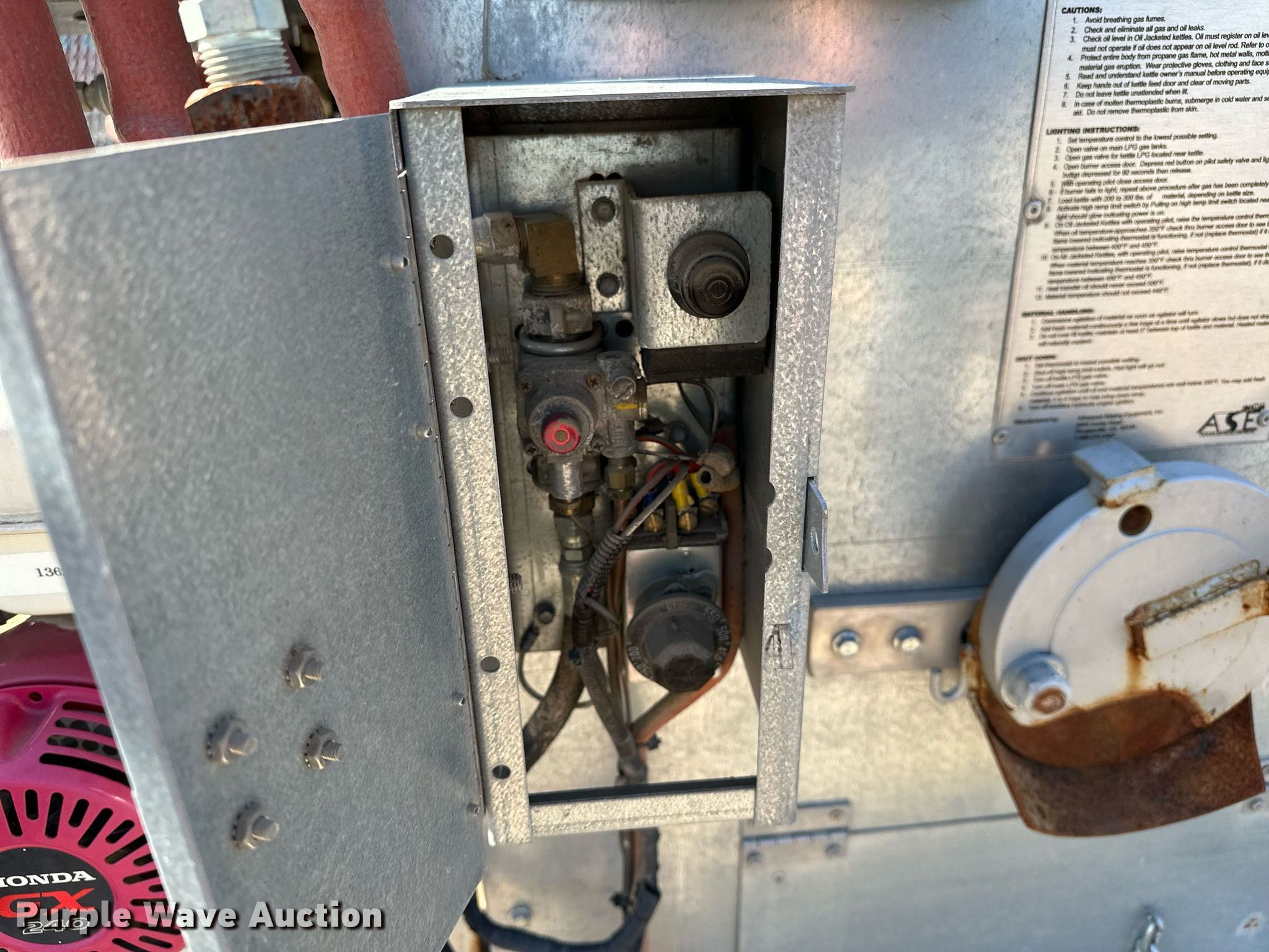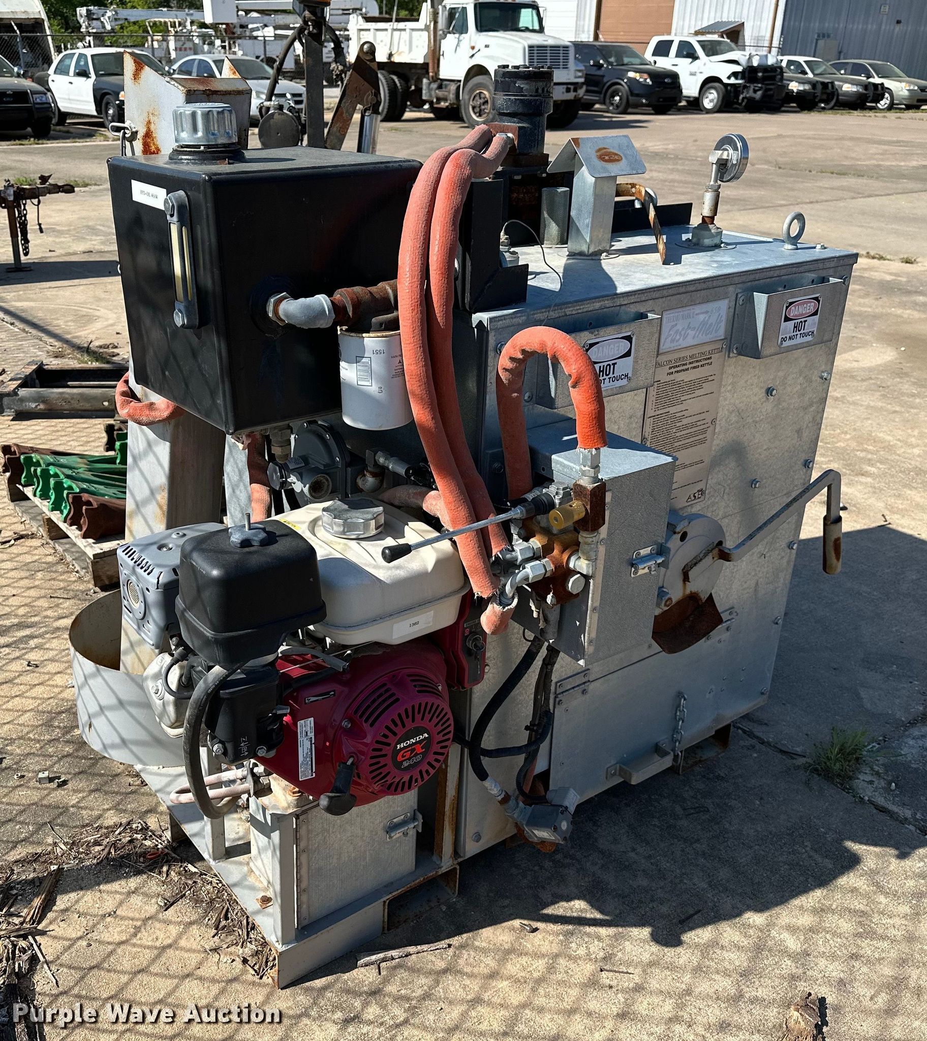 Purple Wave is selling a used Paving Sply. or Attach. in Oklahoma. This item is a Advanced Striping Equipment Thermo Mark II 650 melting kettle with the following: Honda GX240, Cylinders: 1, Fuel type: Gas