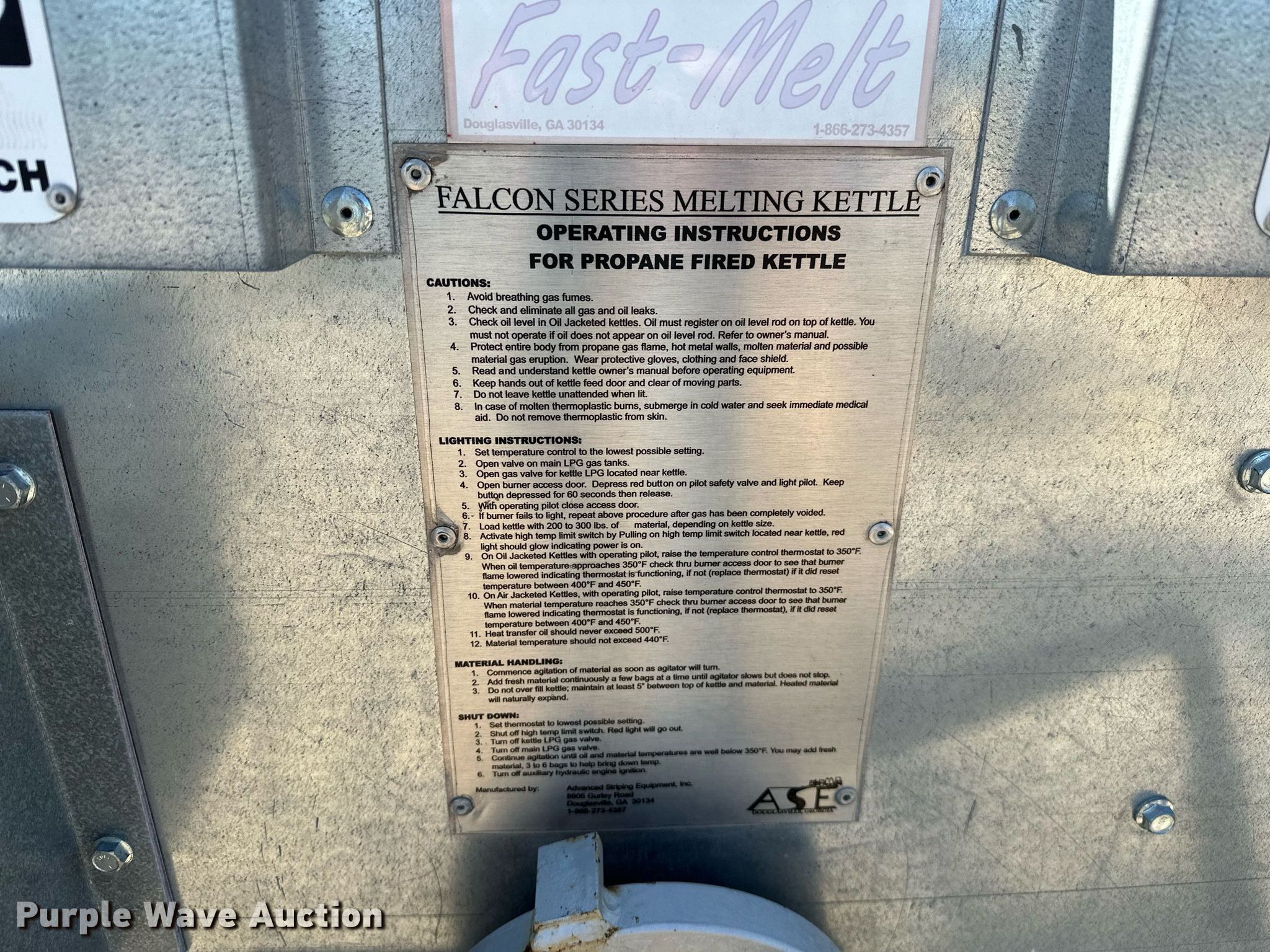 Advanced Striping Equipment Thermo Mark II 650 melting kettle has sold in Broken Arrow, Oklahoma for $1265. Item MG9818 sold on May 16th, 2023.