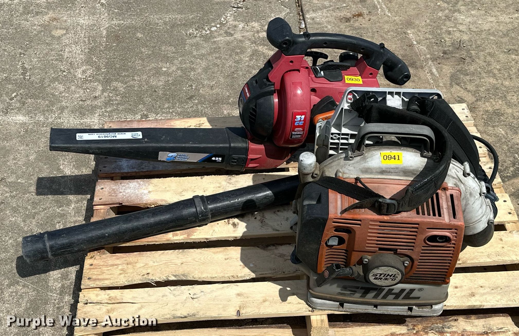 Purple Wave is selling a used Lawn and Garden in Oklahoma. This item is a (2) leaf blowers with the following: Unit # 0930