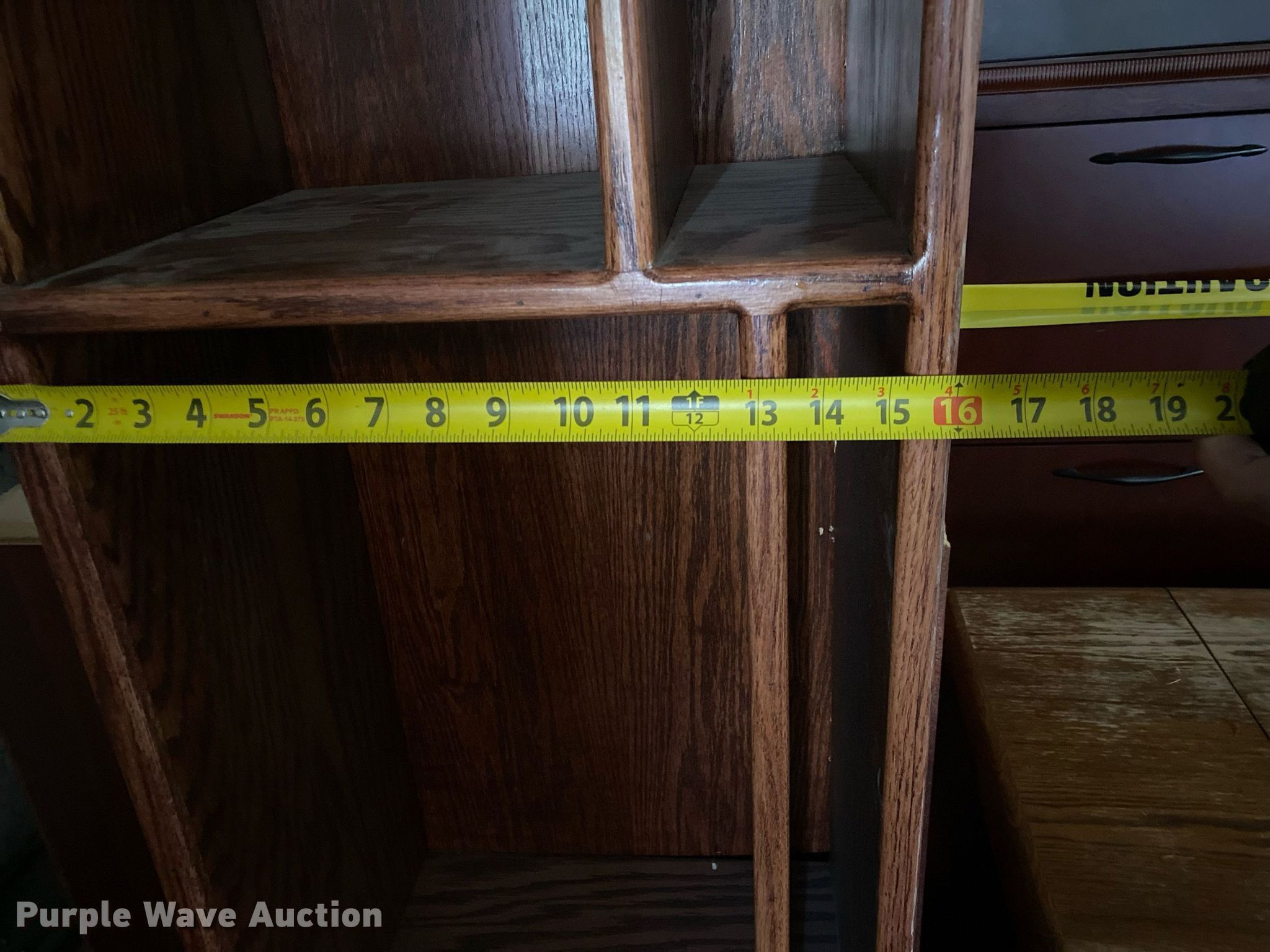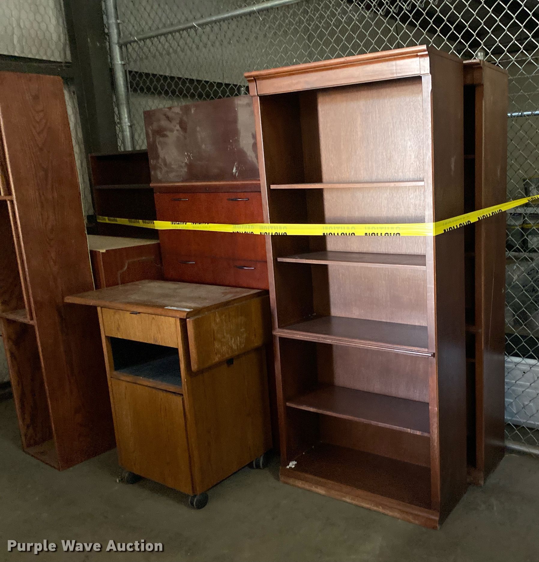 Purple Wave is selling a used Furniture in Oklahoma. This item is a Furniture with the following: (3) bookcases, (2) 32"W x 73"H, 16"W x 76"H, File cabinet, Printer stand