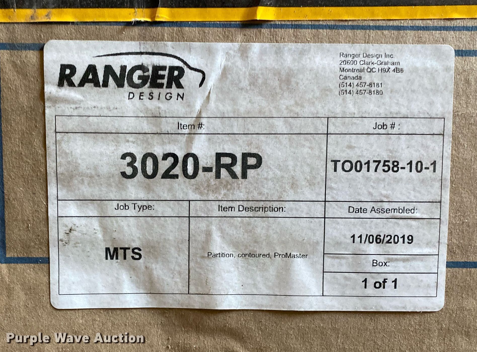 Purple Wave is selling a used Automotive Parts or Acces. in Oklahoma. This item is a Ranger Design 3020-RP cargo van partition with the following: Ranger Design 3020-RP cargo van partition. City of Broken Arrow, OK. 2304 First St. Broken Arrow, OK 74012