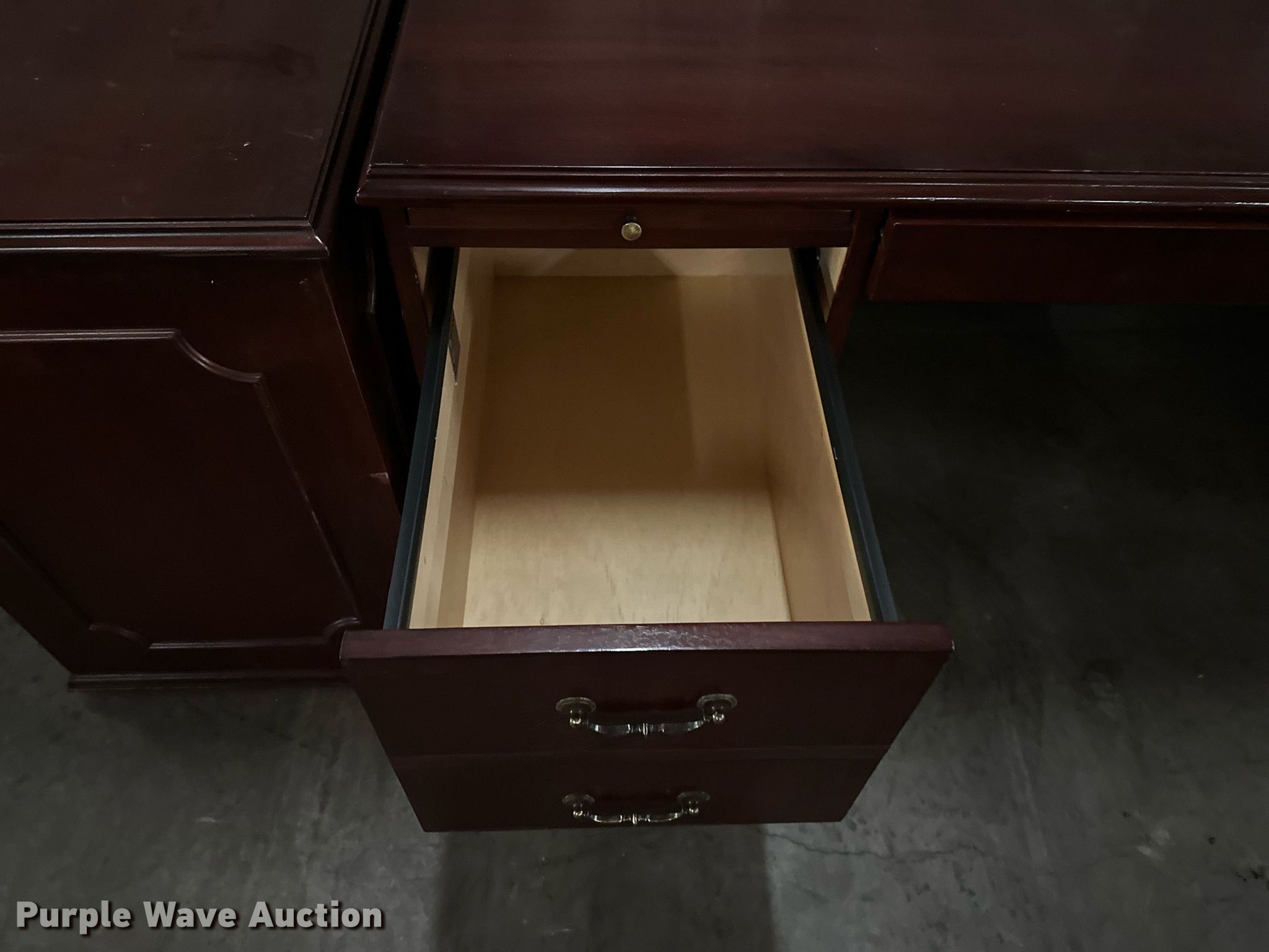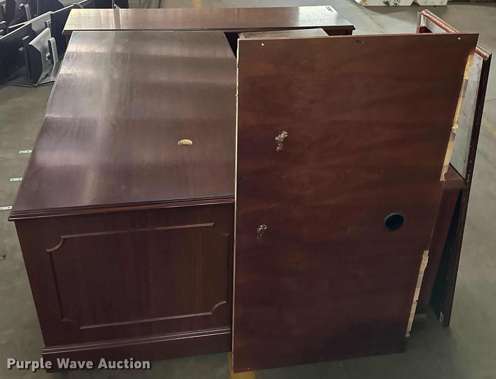 Purple Wave is selling a used Furniture in Oklahoma. This item is a (2) desks with the following: L-shaped desk, Four drawer desk
