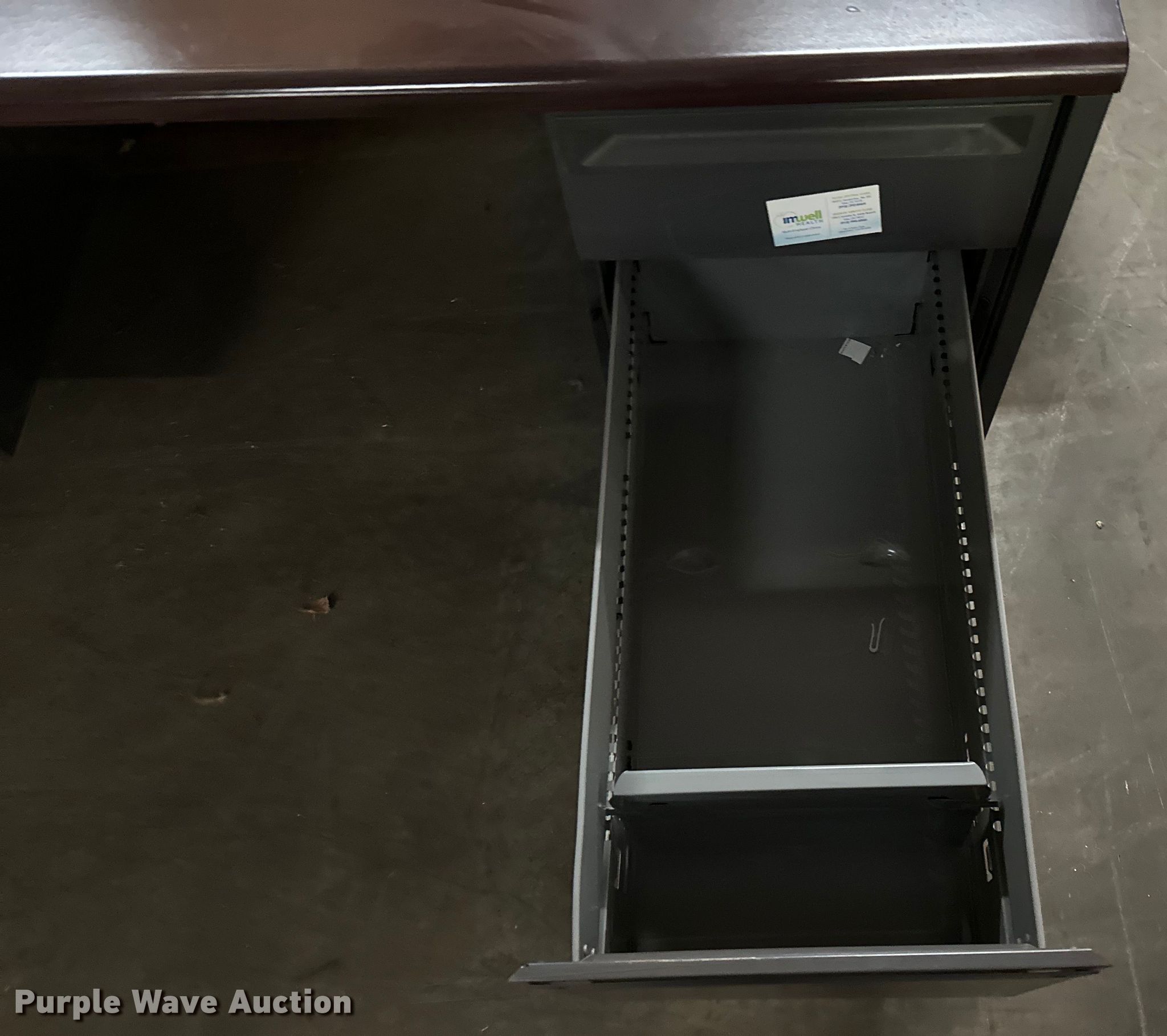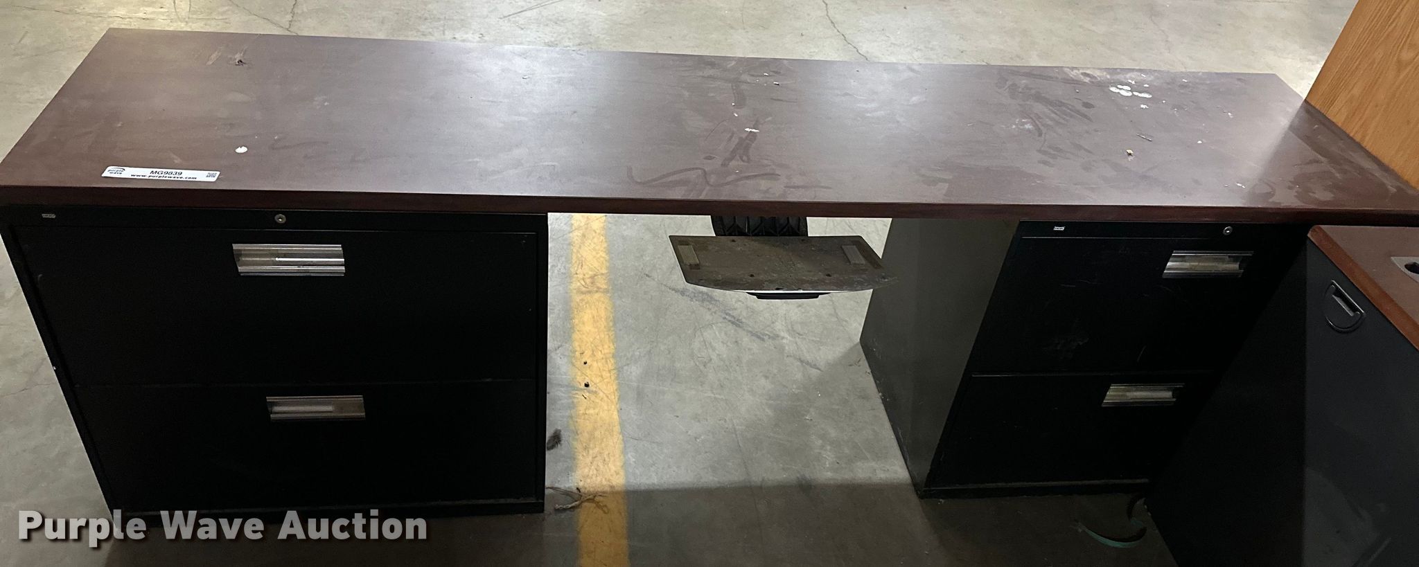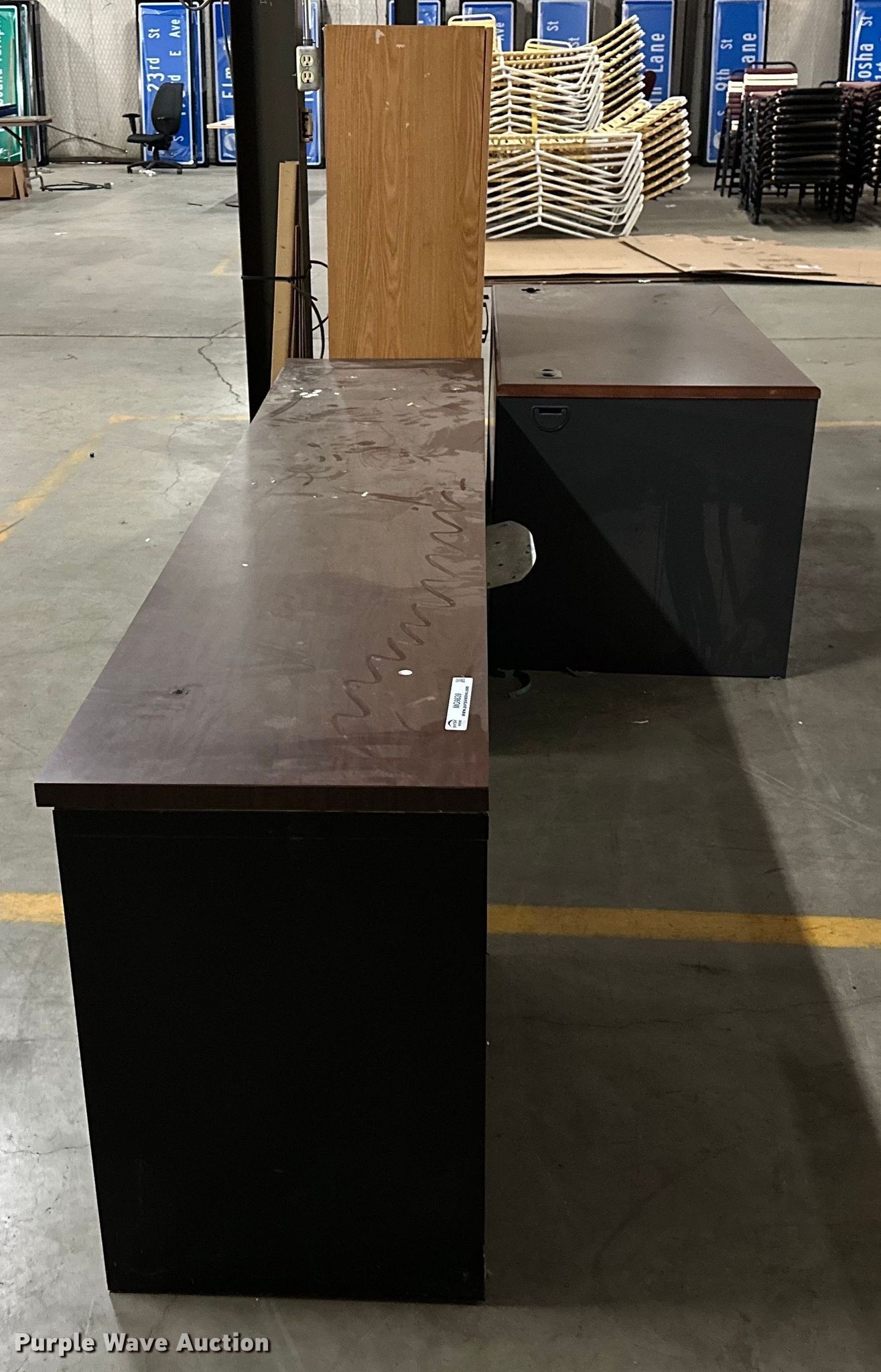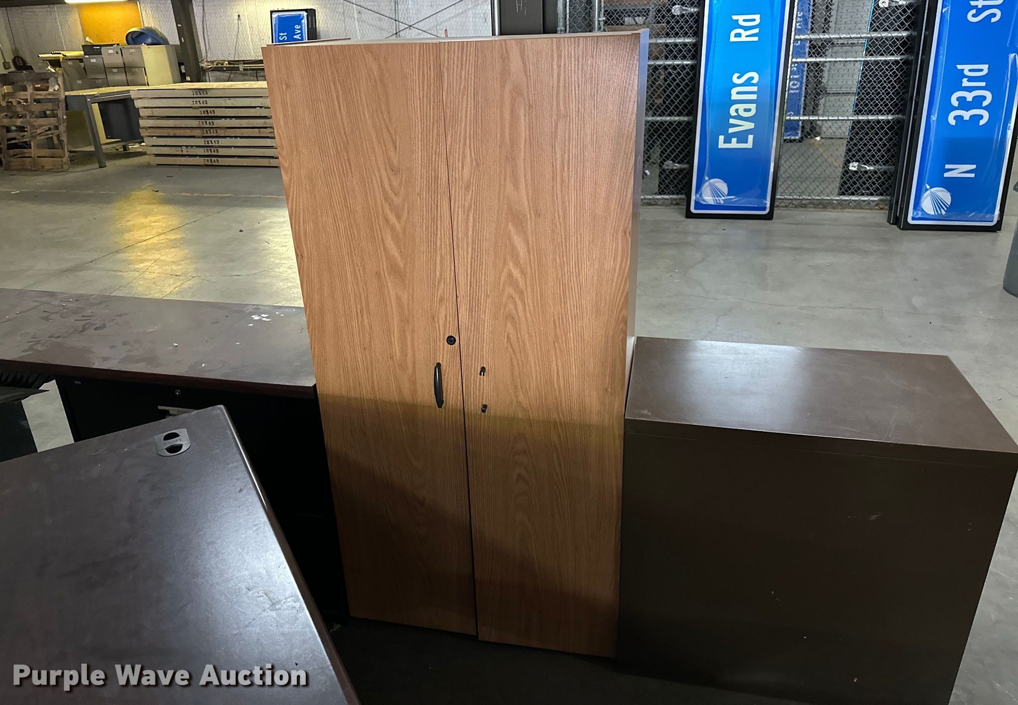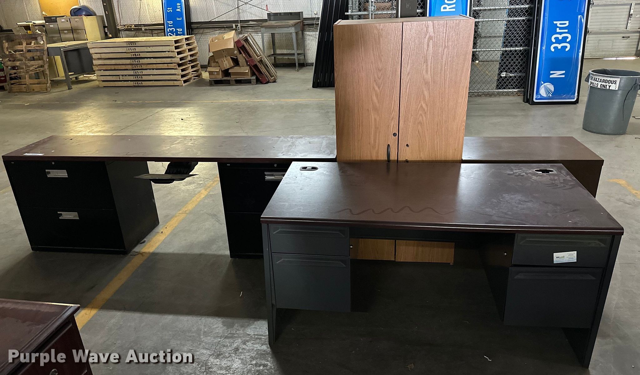Purple Wave is selling a used Furniture in Oklahoma. This item is a Furniture with the following: (2) desks, Four shelf cabinet, Two drawer file cabinet, Bottom drawer will not open