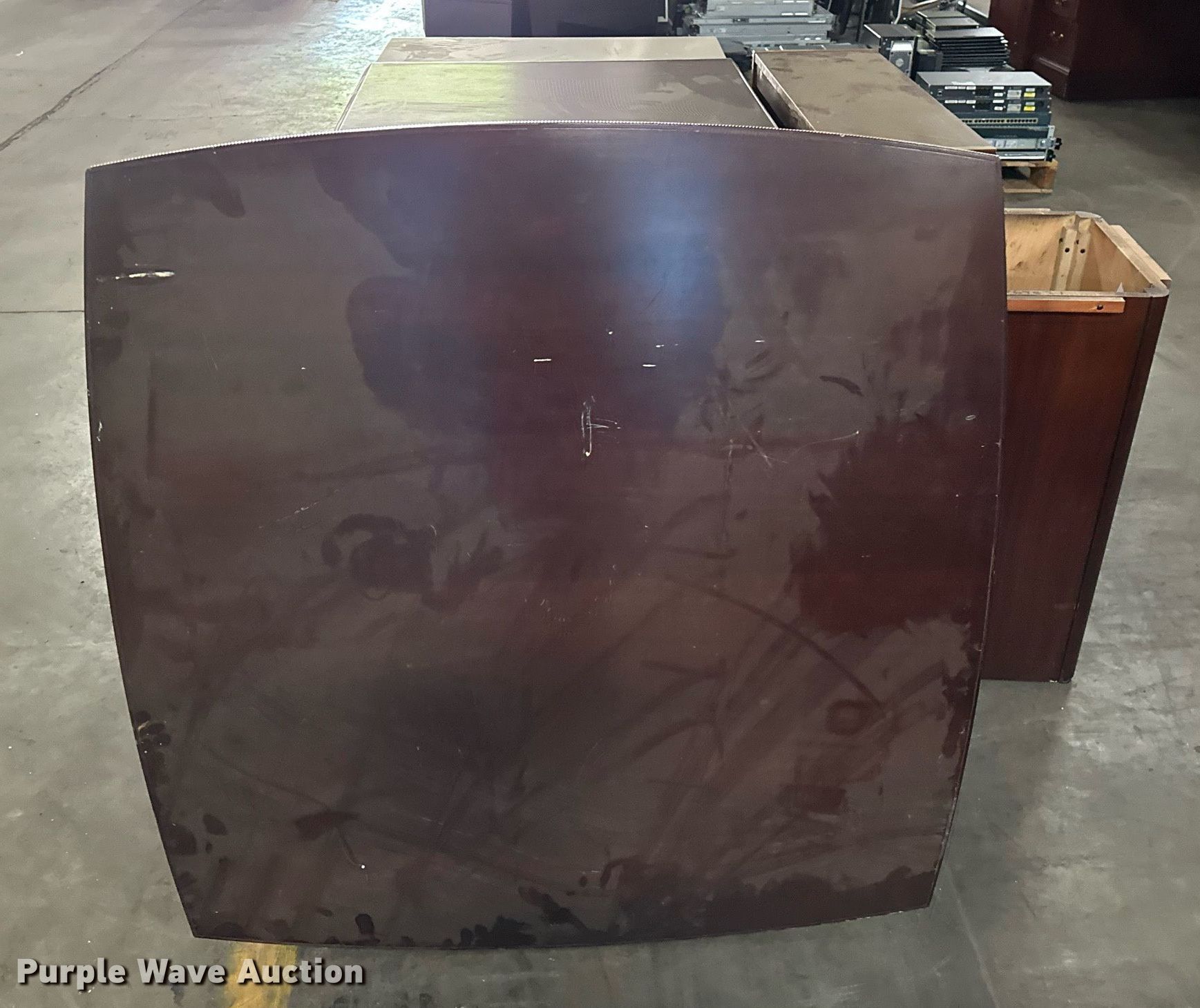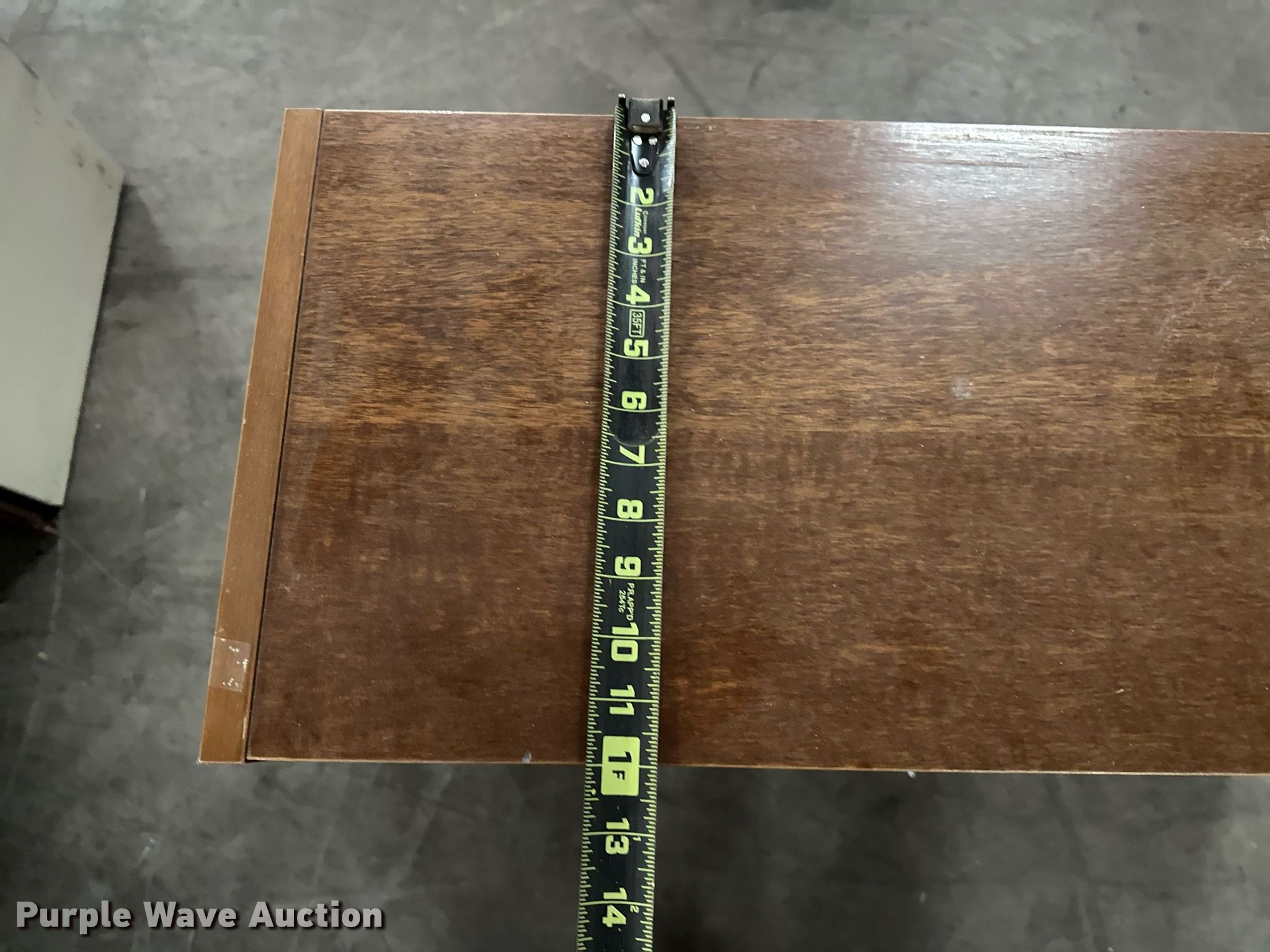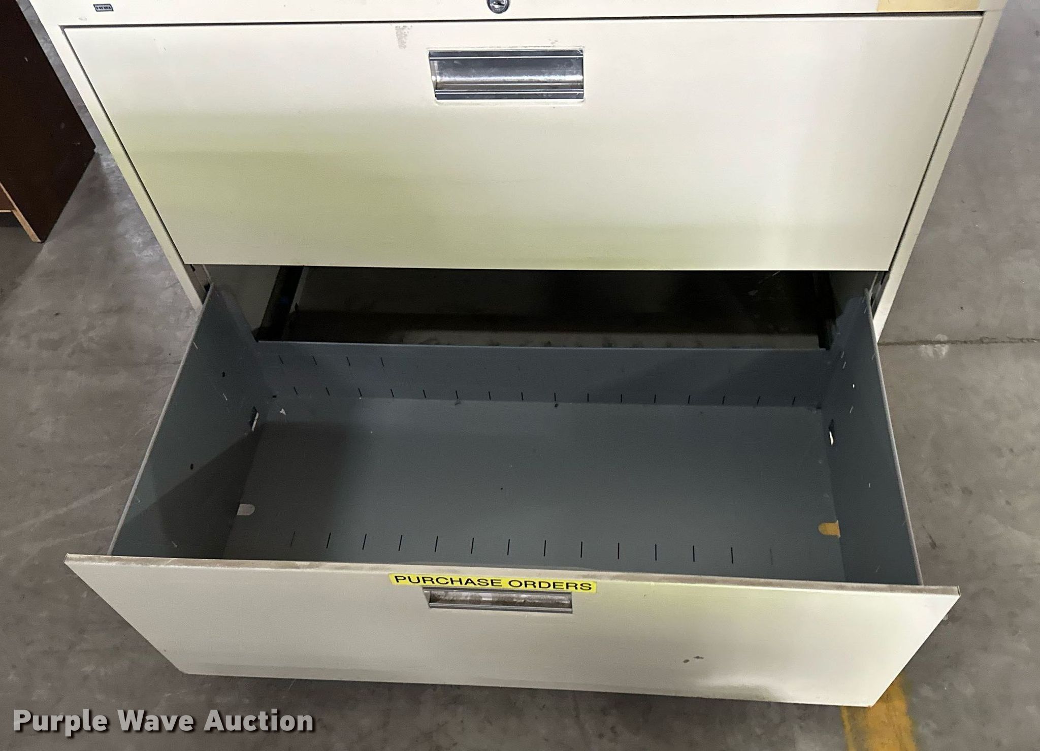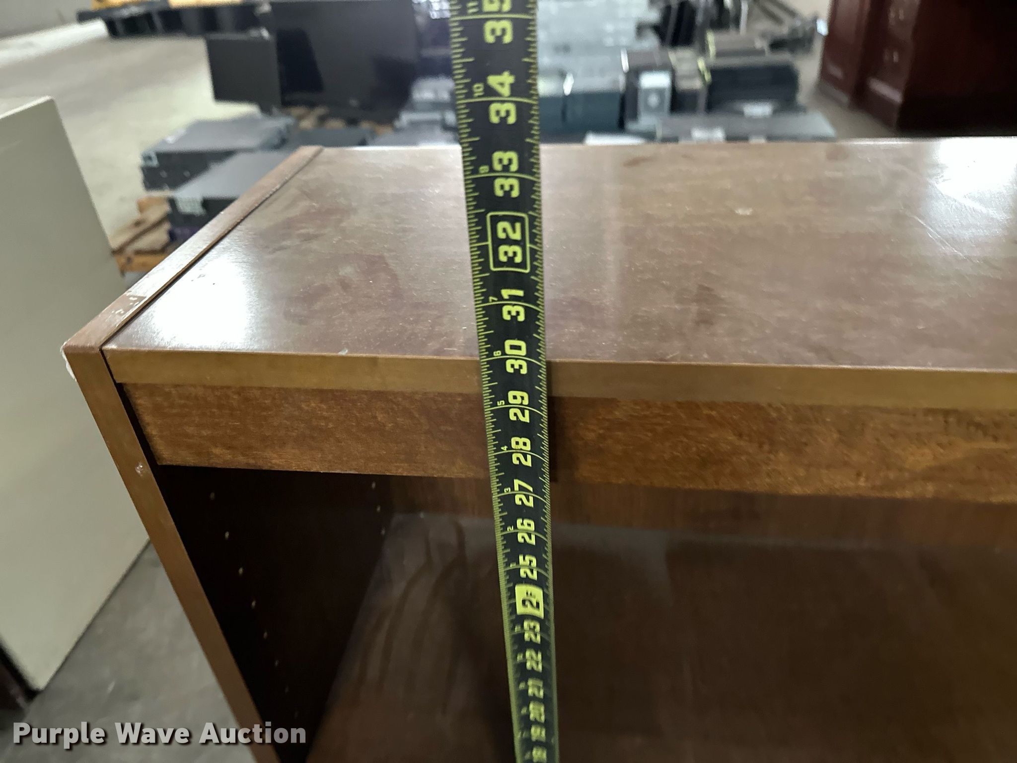 Purple Wave is selling a used Furniture in Oklahoma. This item is a Furniture with the following: Four drawer desk, Book shelf, Round desk, Two drawer file cabinet