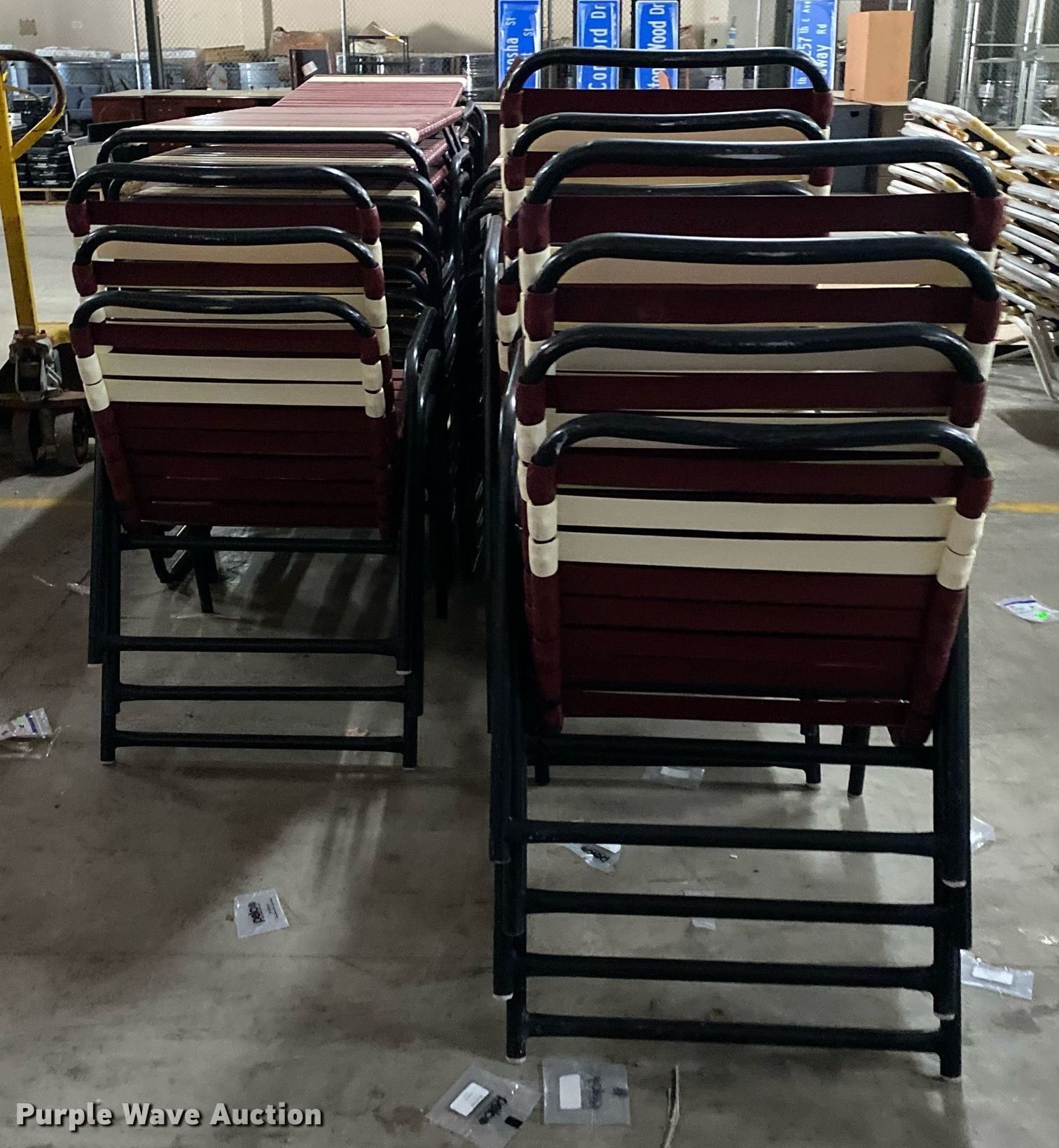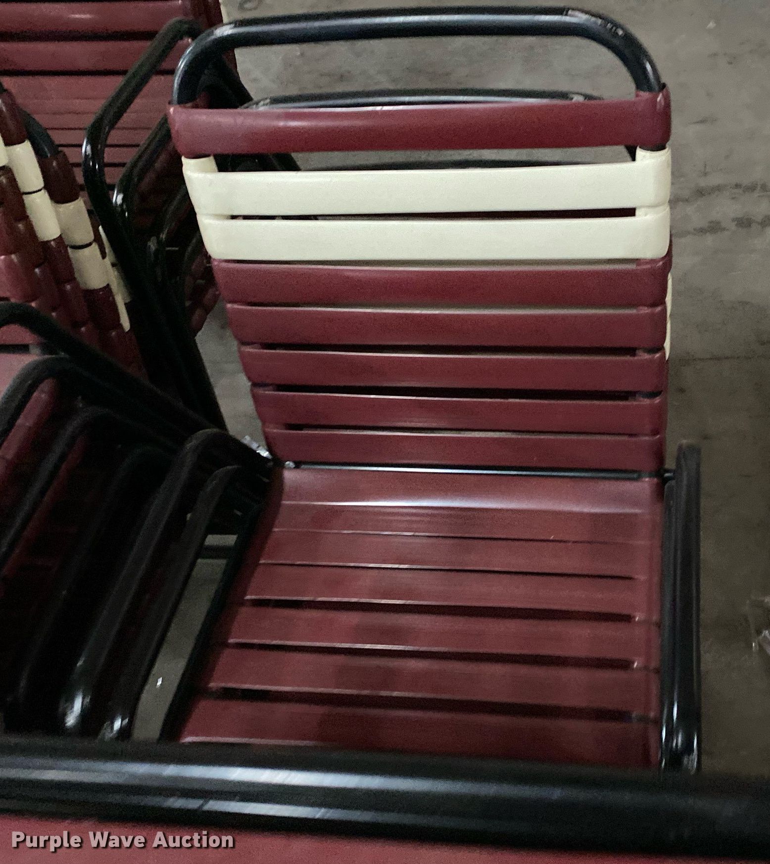 Purple Wave is selling a used Furniture in Oklahoma. This item is a Patio furniture with the following: Approximately 24 lounge chairs, Approximately 12 chairs