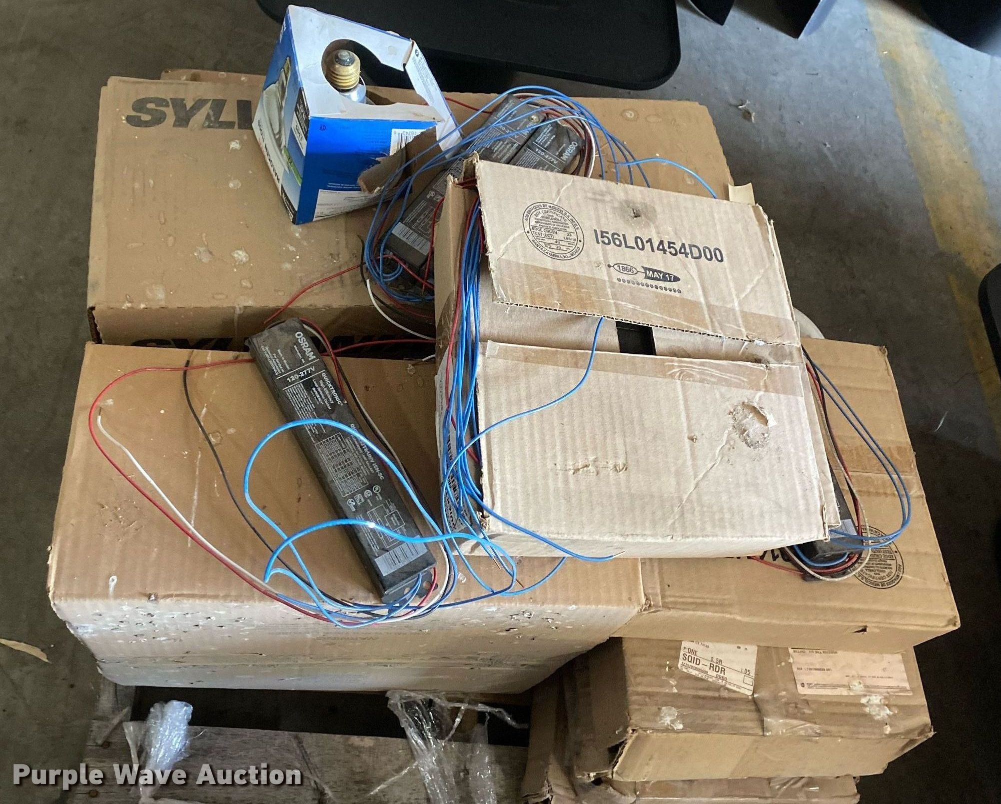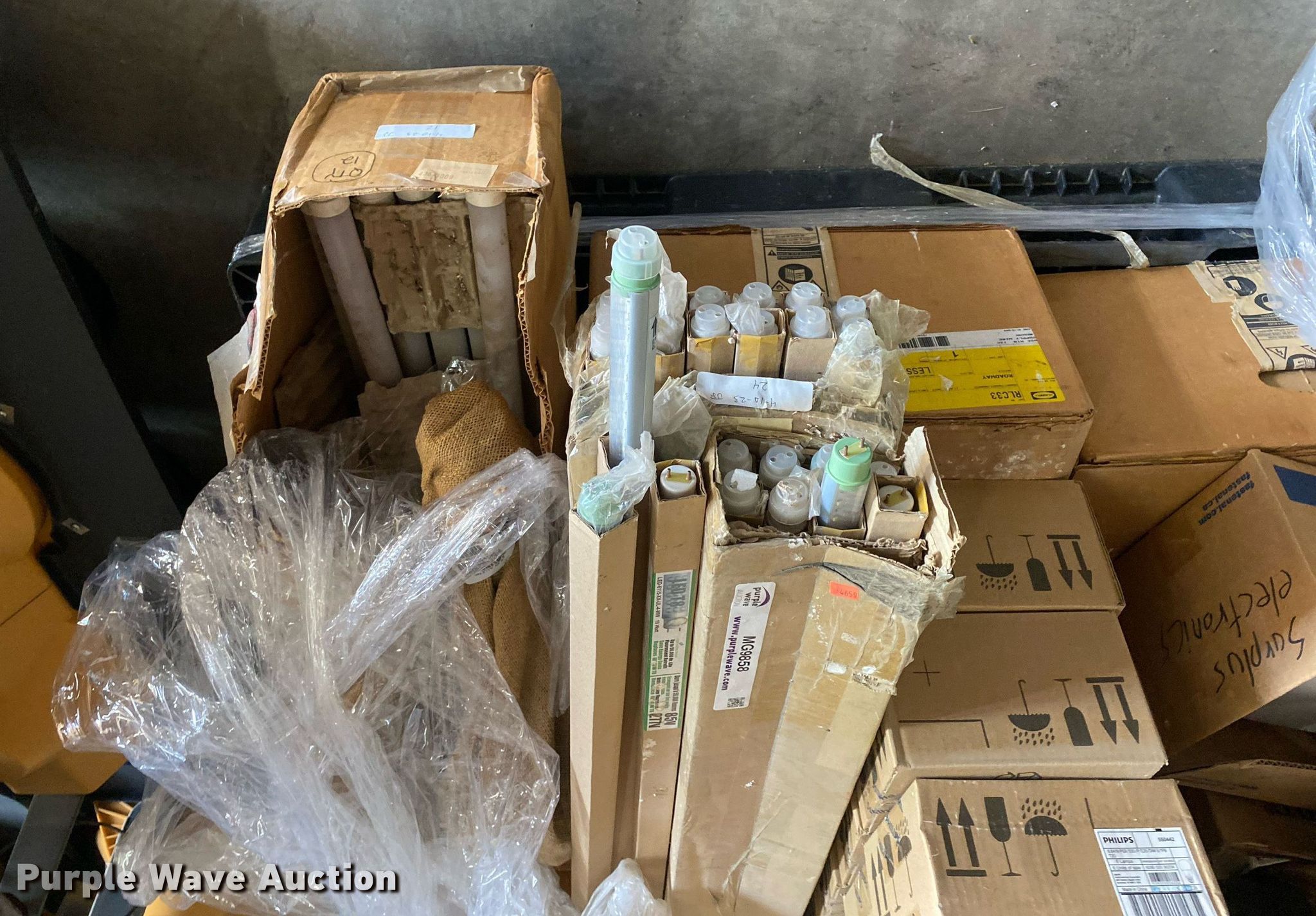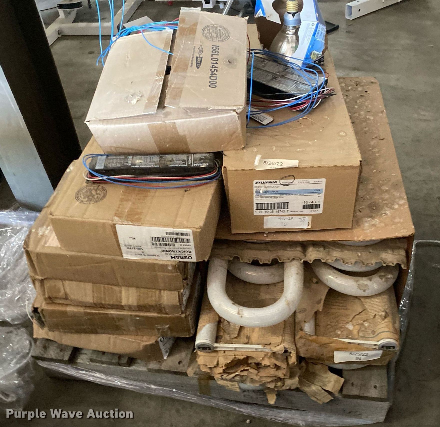 Purple Wave is selling a used Building Materials in Oklahoma. This item is a Light bulbs with the following: 4' fluorescent bulbs, 60 watt bulbs, Copper wire