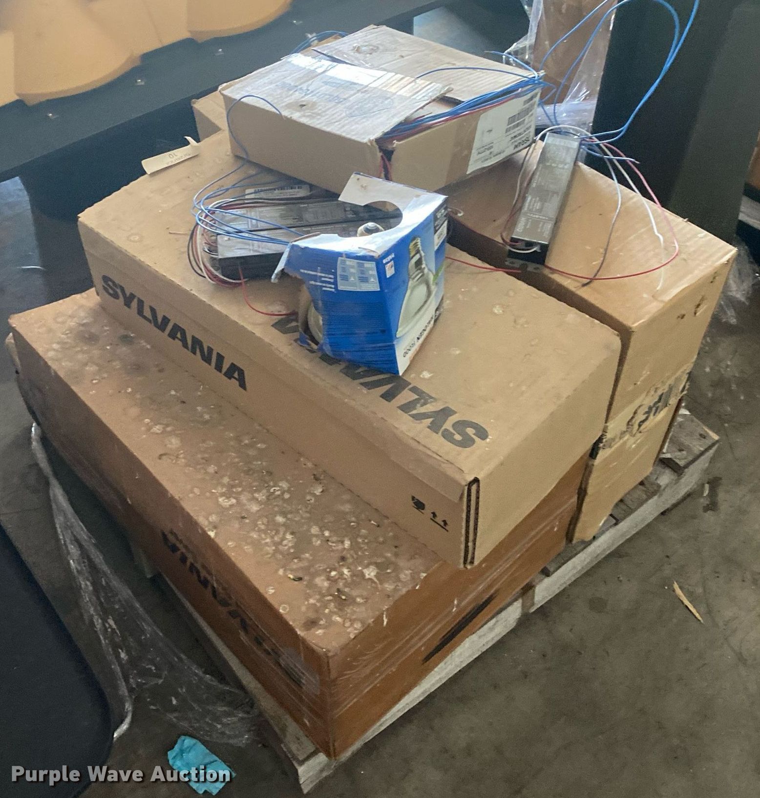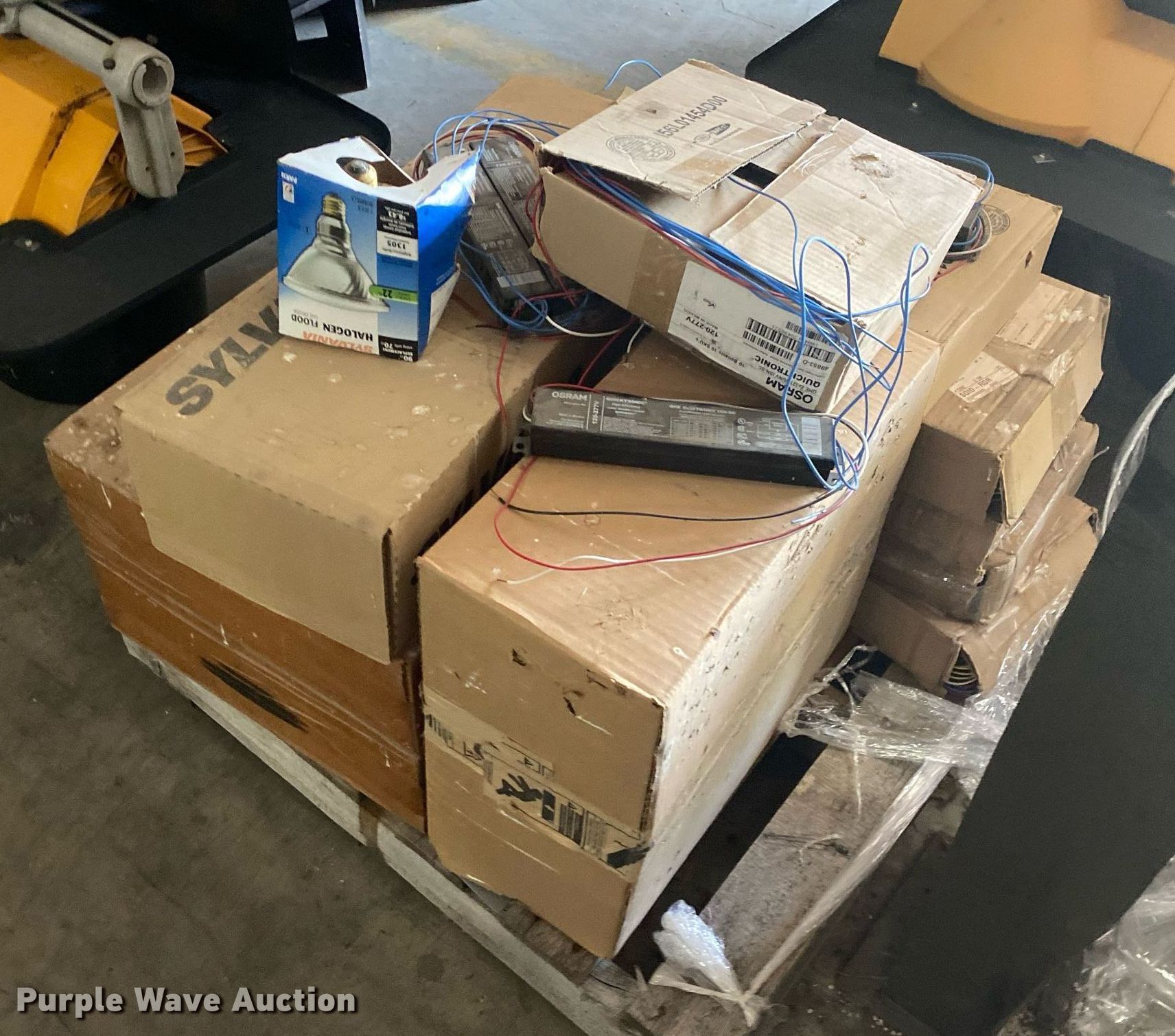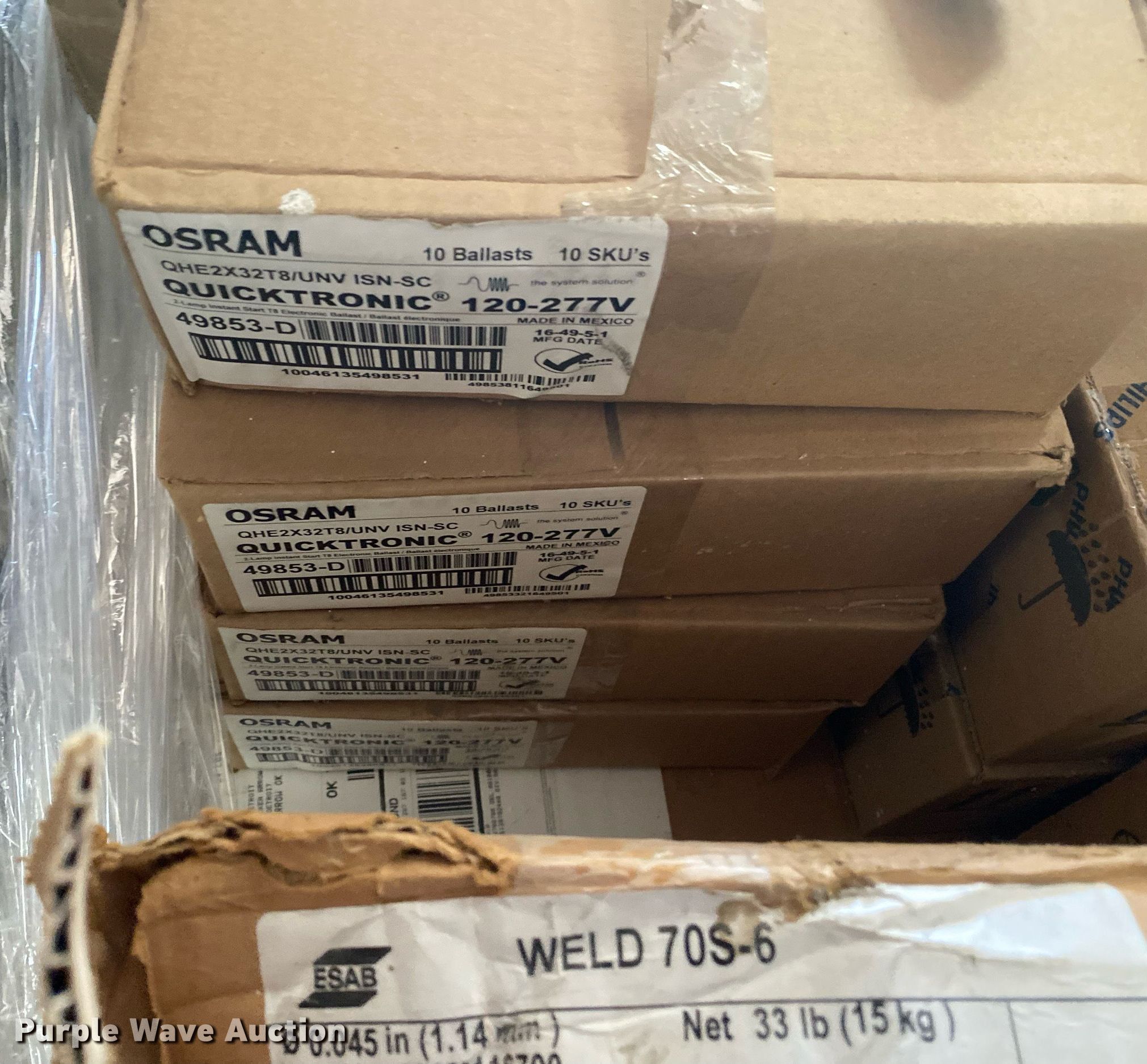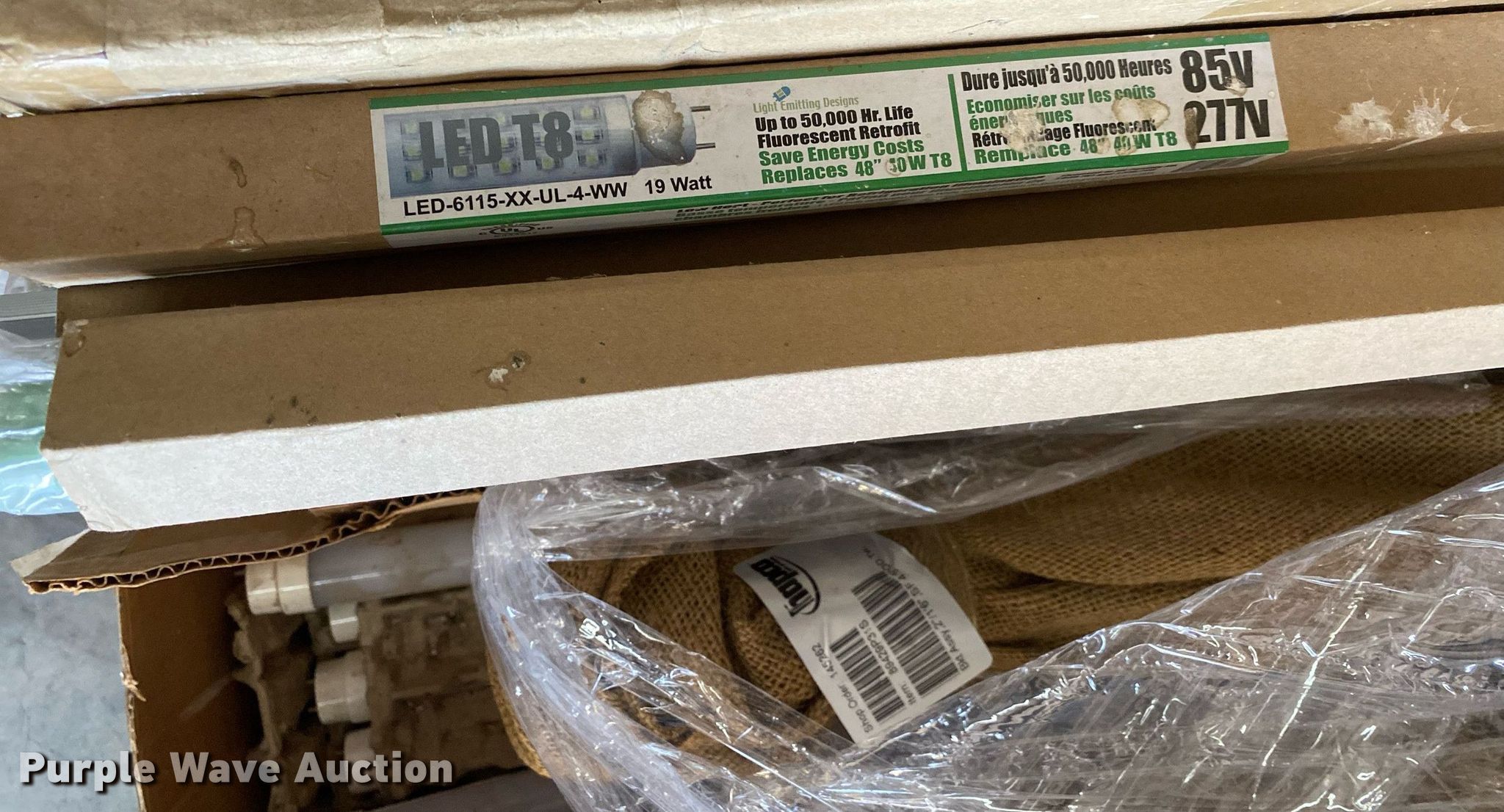 Purple Wave is selling a used Building Materials in Oklahoma. This item is a Light bulbs with the following: 4' fluorescent bulbs, 60 watt bulbs, Copper wire