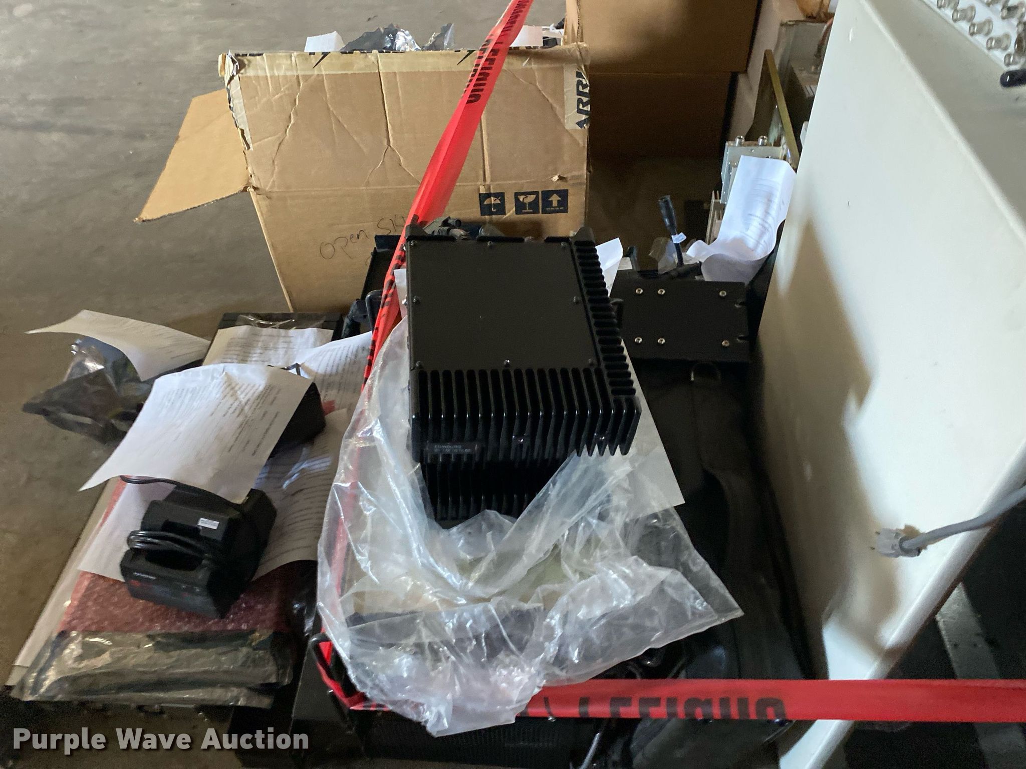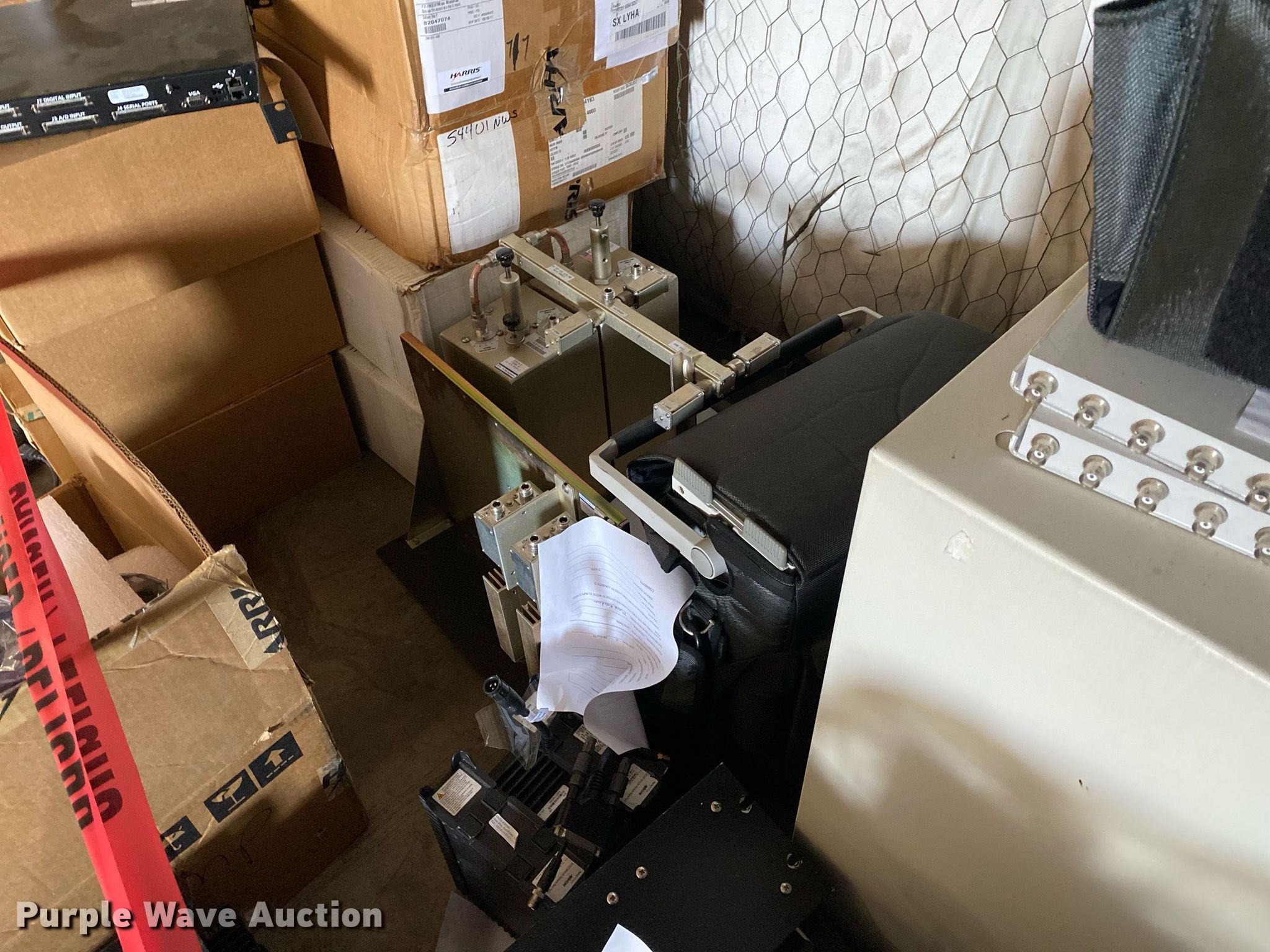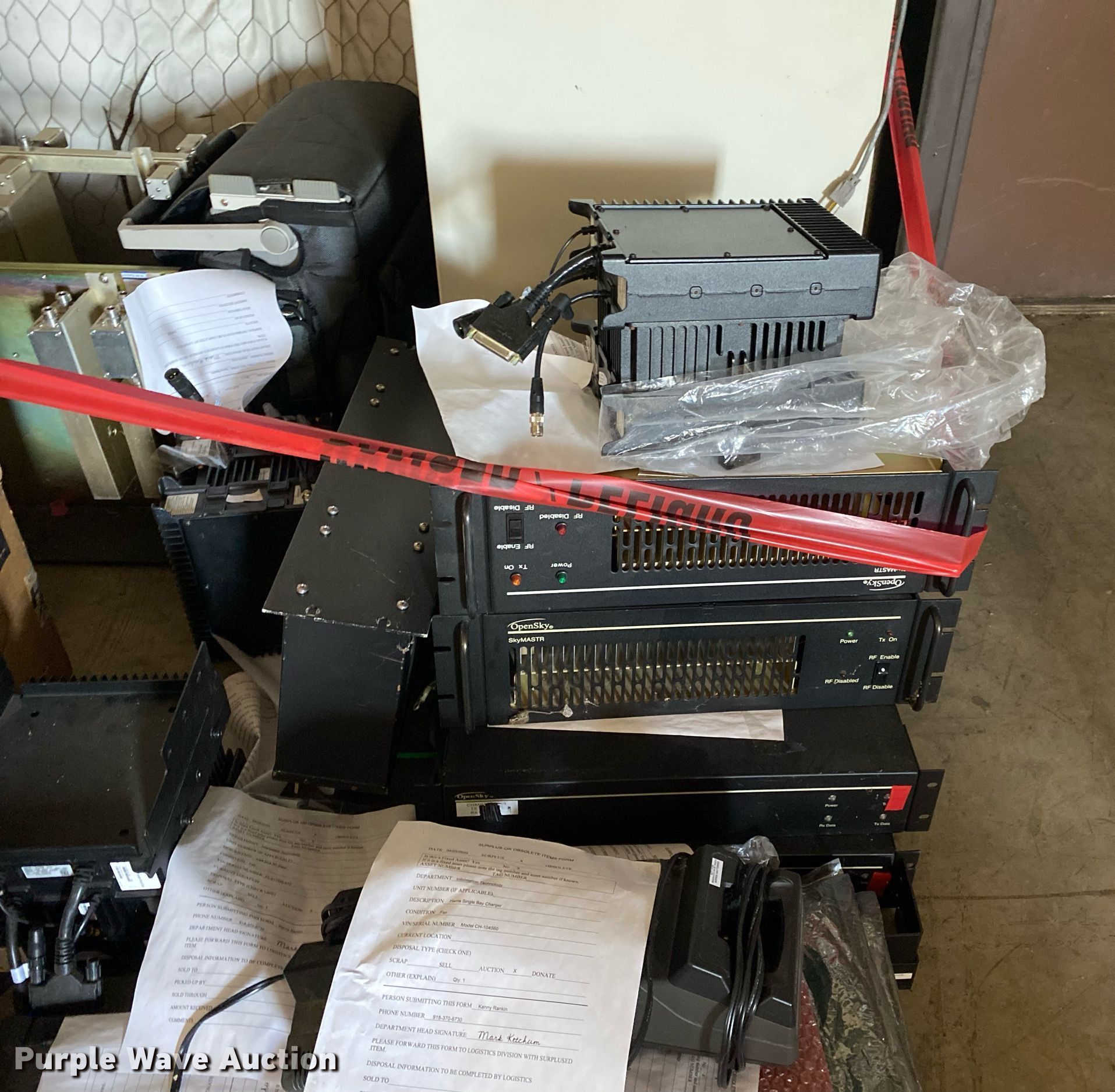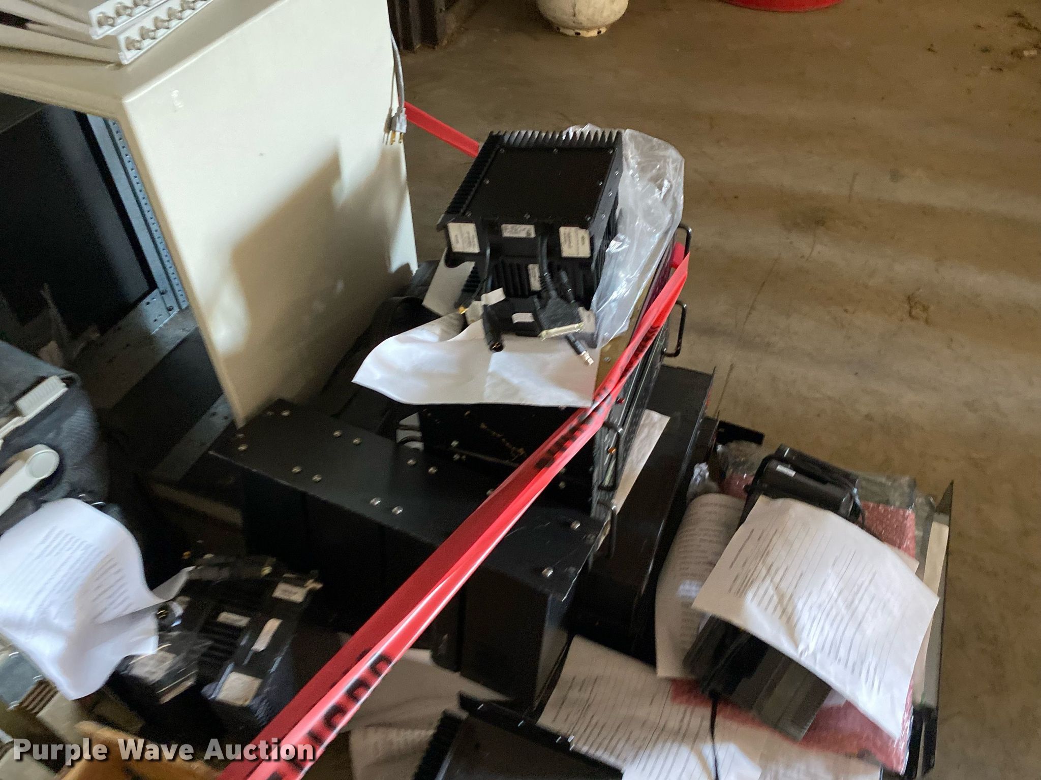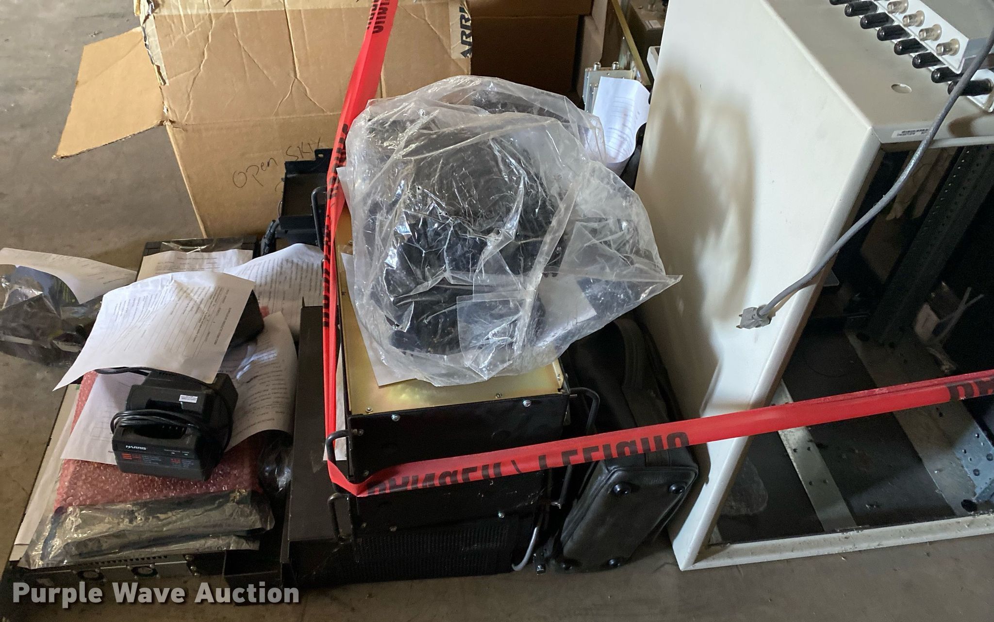 Purple Wave is selling a used Electronics in Oklahoma. This item is a Electronics with the following: Two way radio charging stations, Enclosure, Harris Network Sentry 3 base units, SkyMastr base station and more