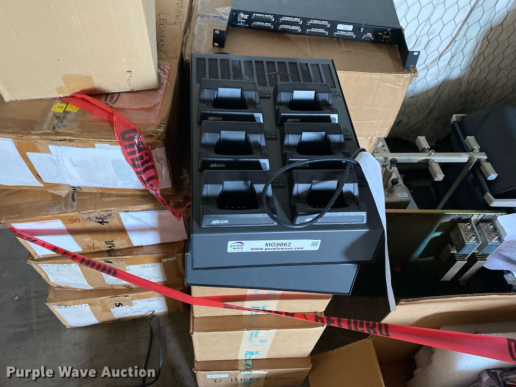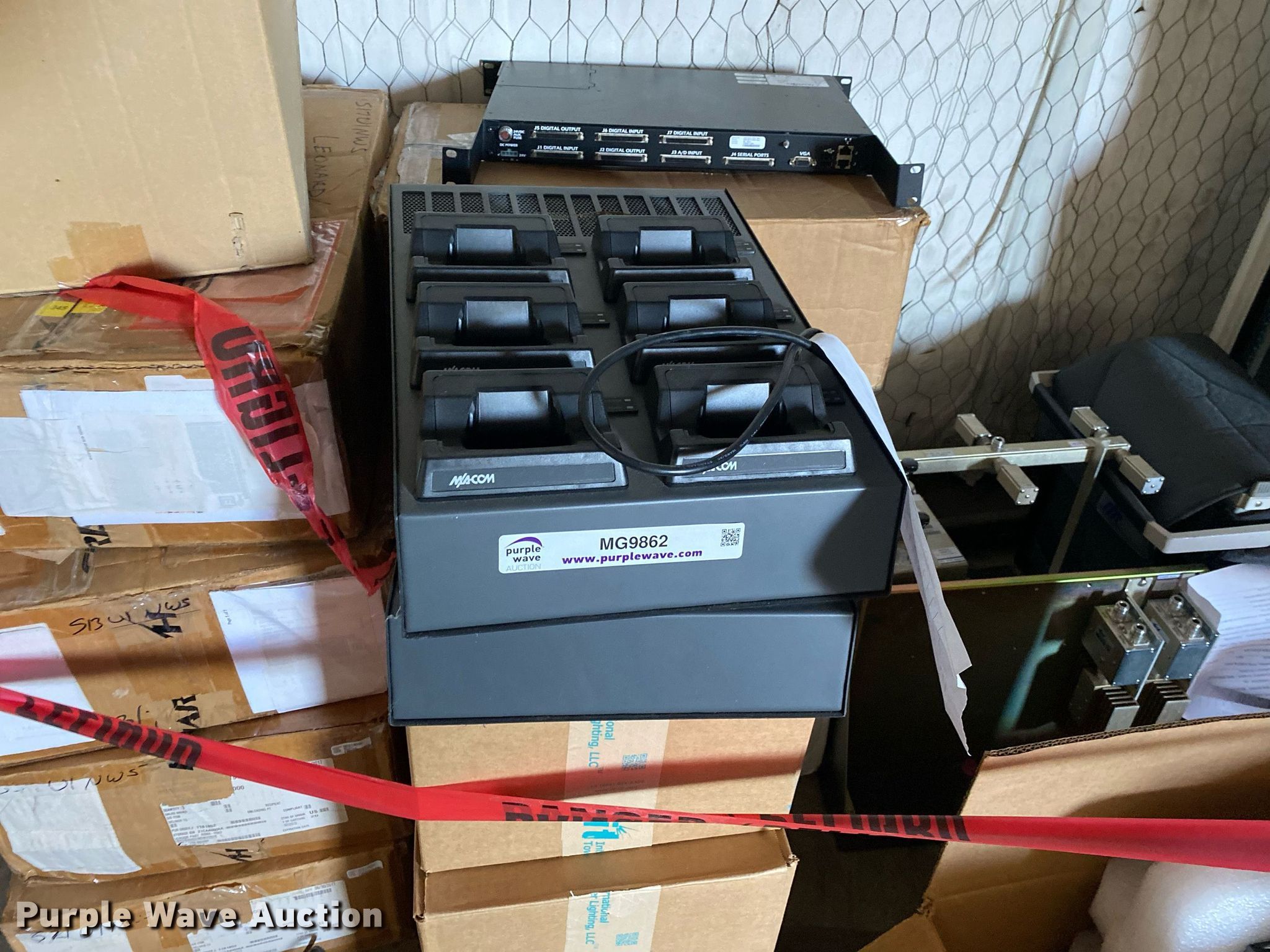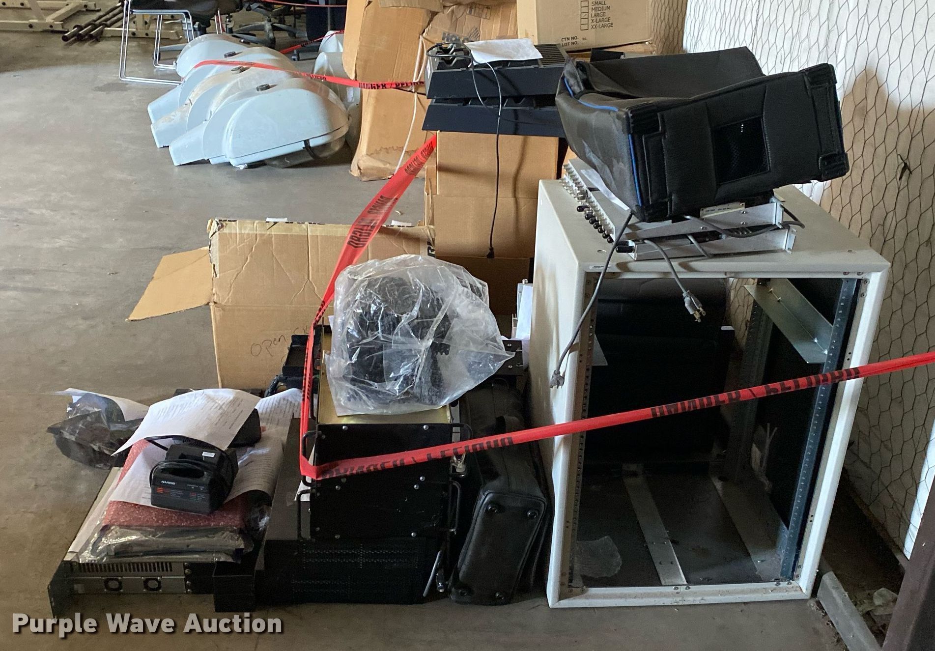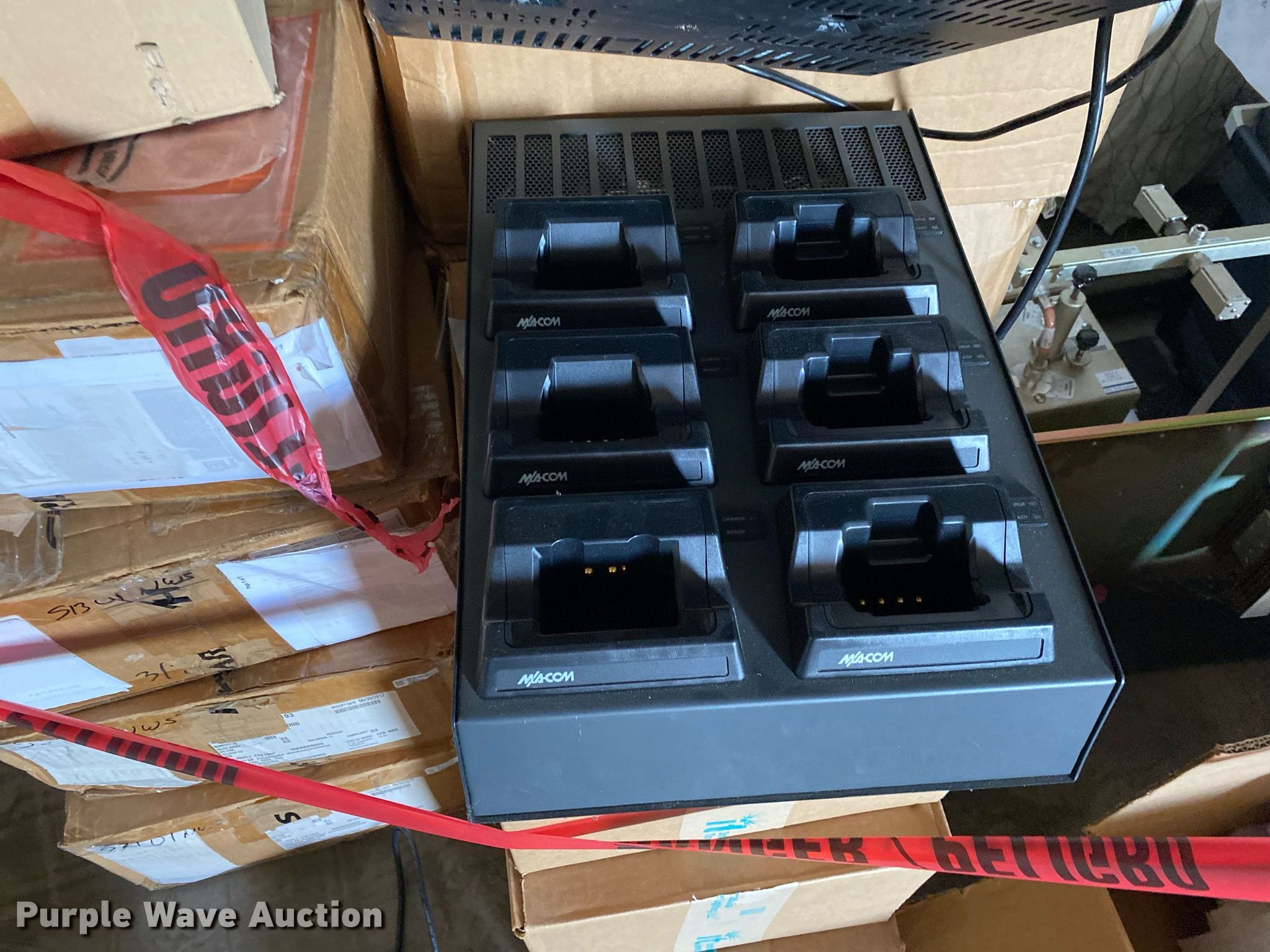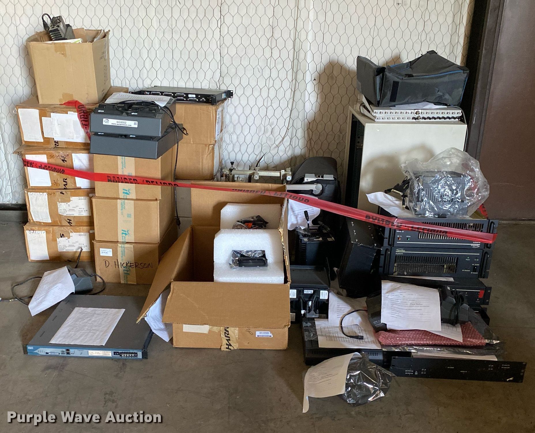 Purple Wave is selling a used Electronics in Oklahoma. This item is a Electronics with the following: Two way radio charging stations, Enclosure, Harris Network Sentry 3 base units, SkyMastr base station and more