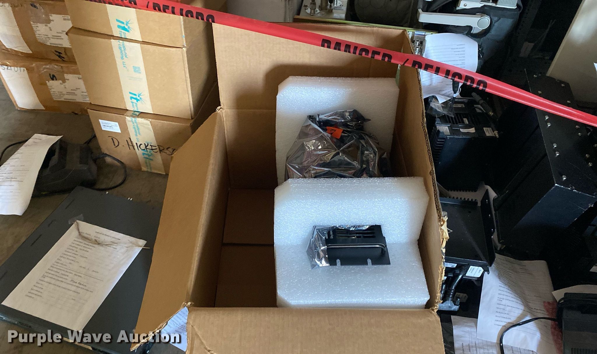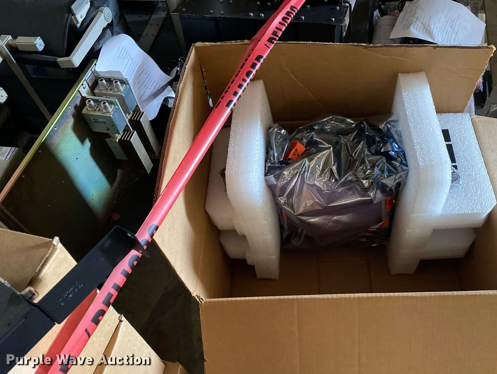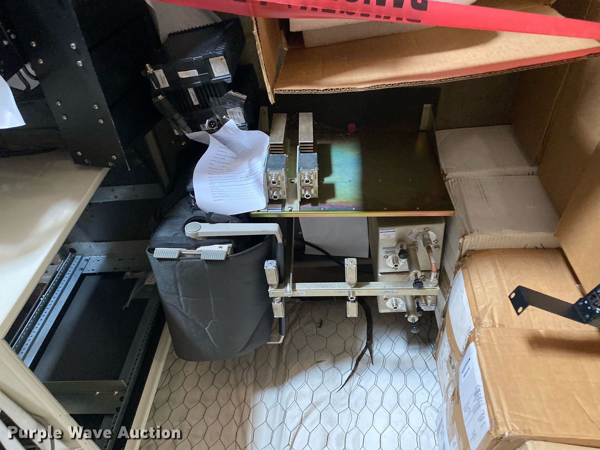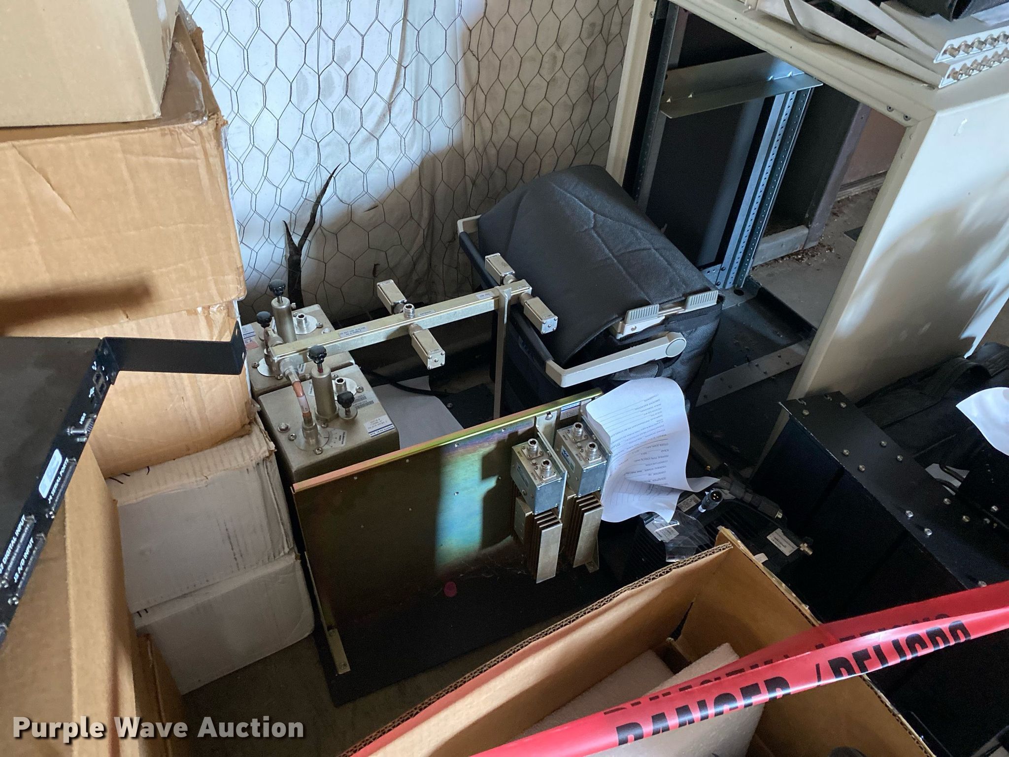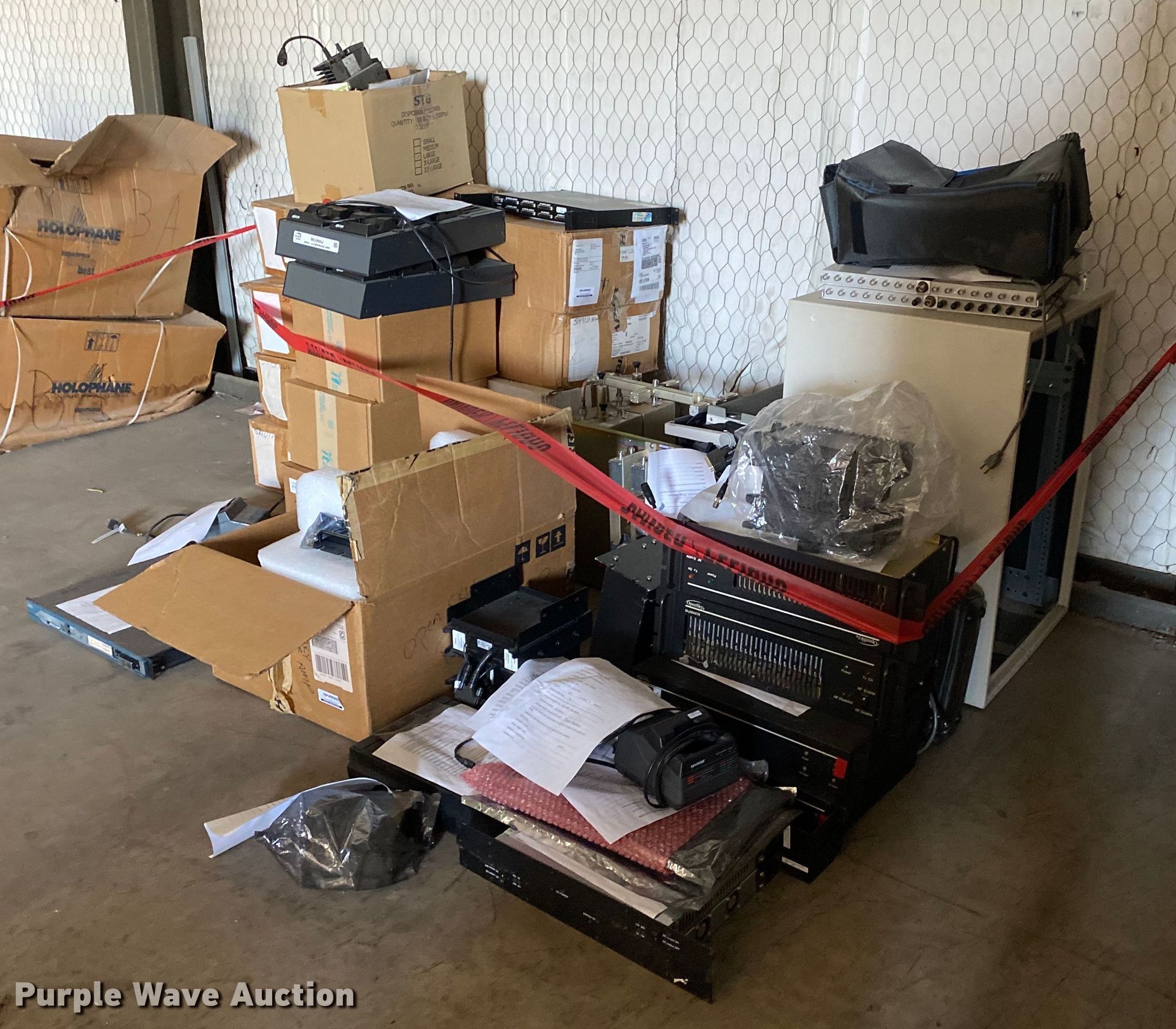 Purple Wave is selling a used Electronics in Oklahoma. This item is a Electronics with the following: Two way radio charging stations, Enclosure, Harris Network Sentry 3 base units, SkyMastr base station and more