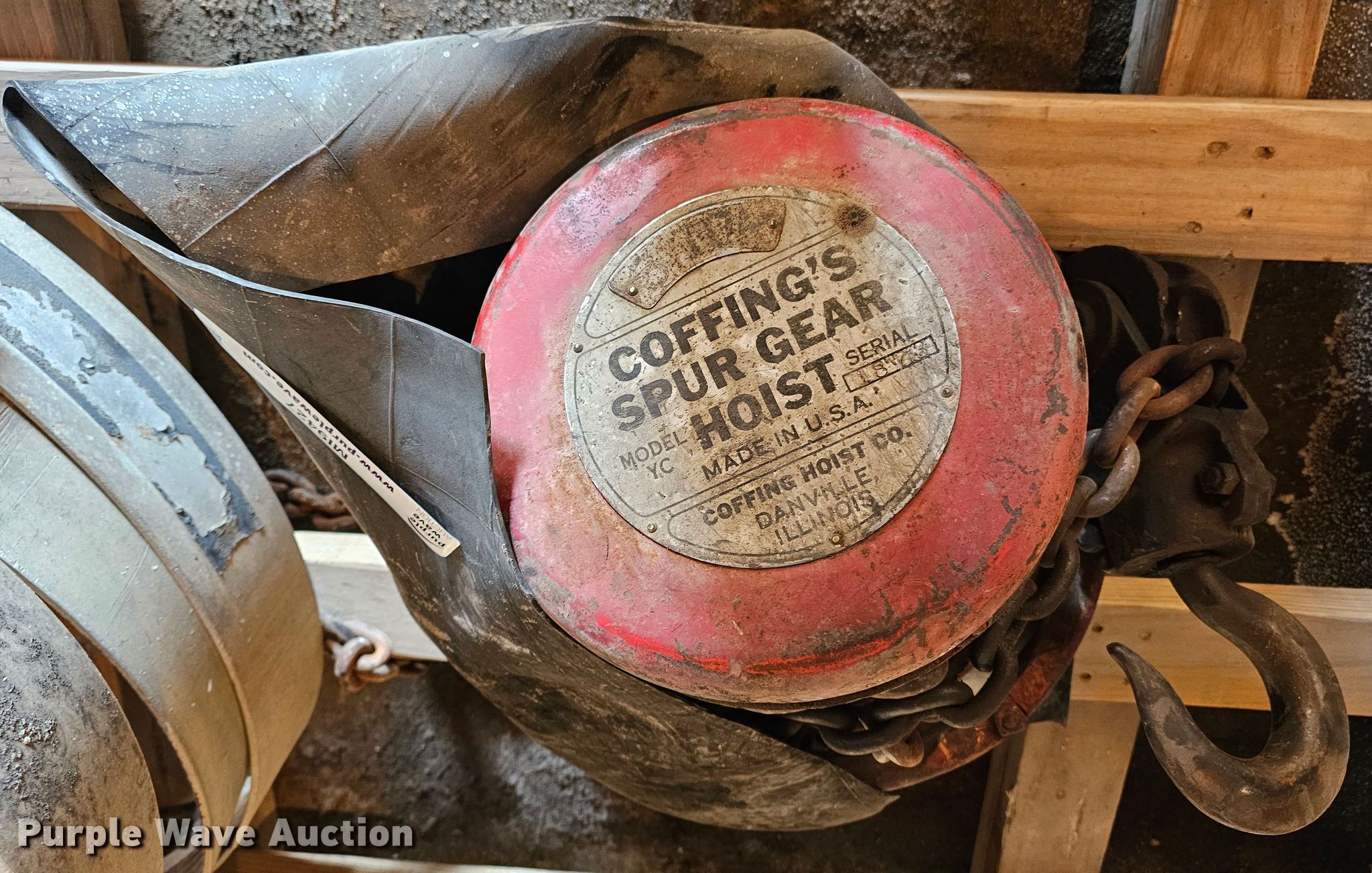 Purple Wave is selling a used Tools in Kansas. This item is a Coffing spur gear hoist with the following: Serial: 1878