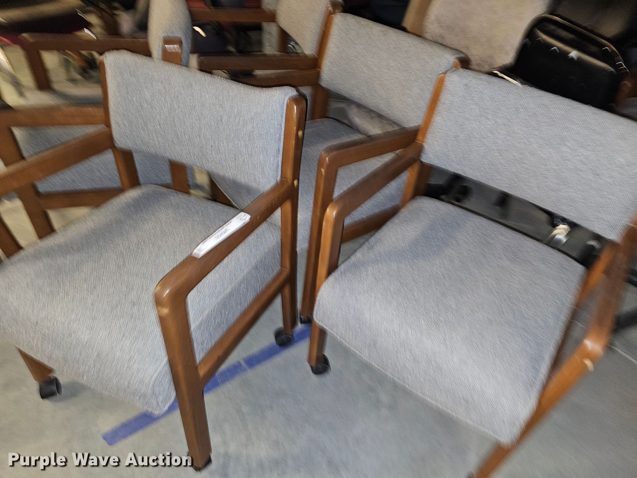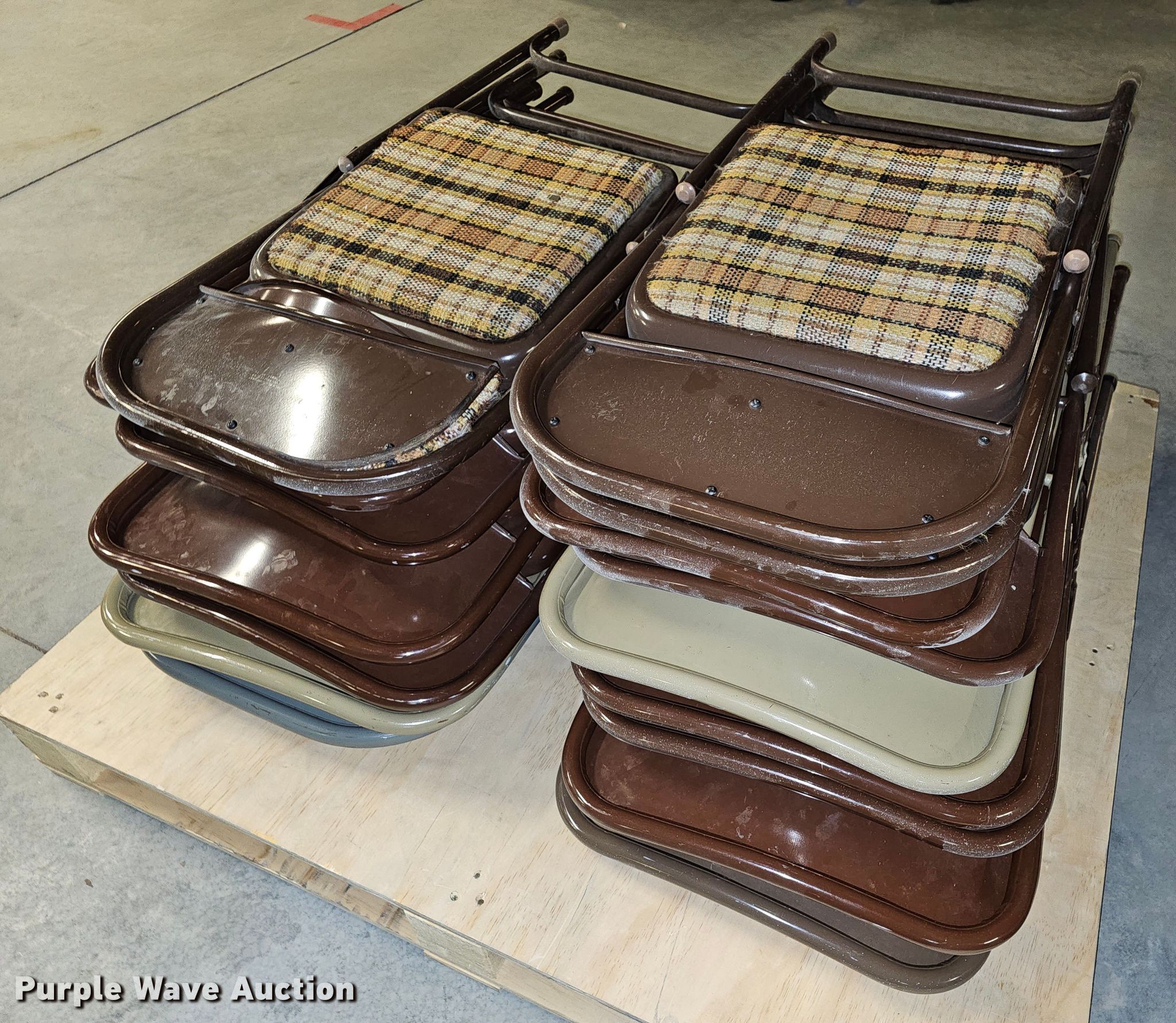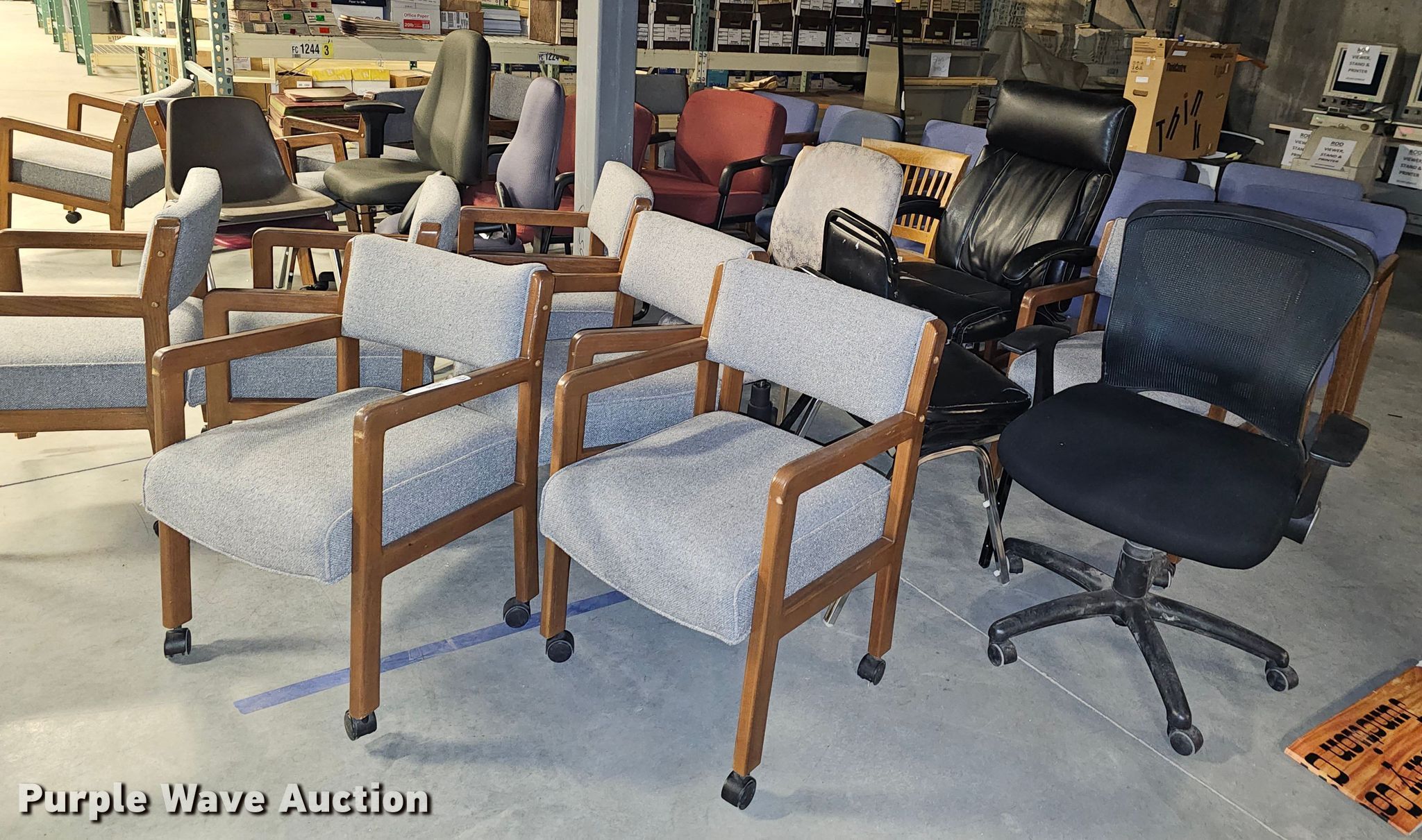 Purple Wave is selling a used Furniture in Kansas. This item is a Approximately 49 chairs with the following: Some damaged