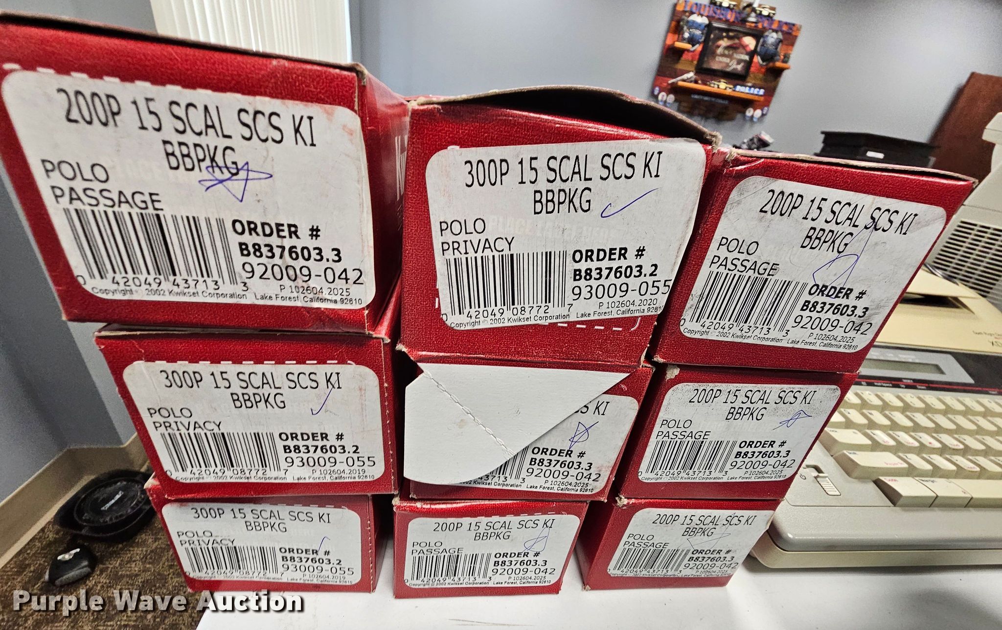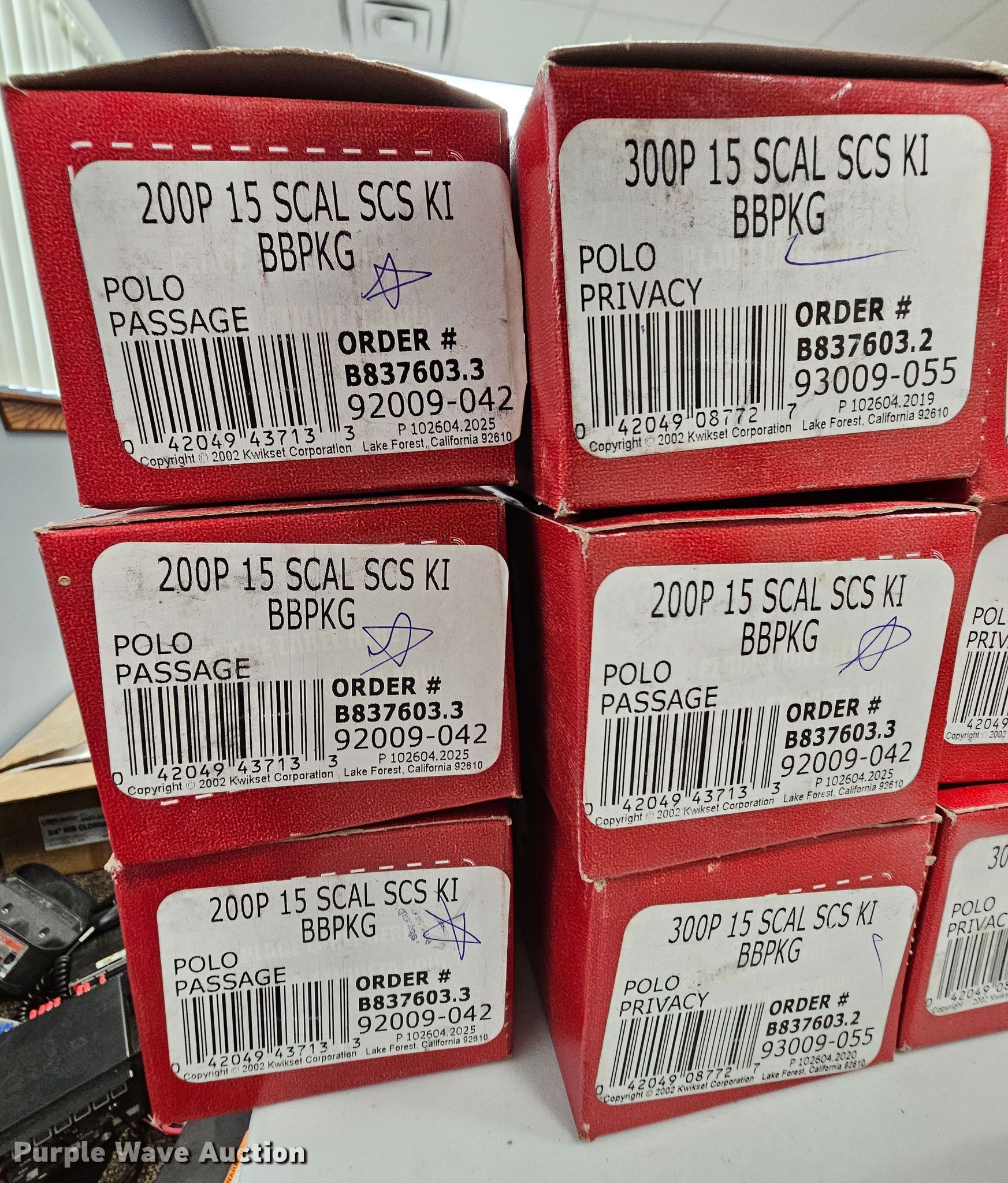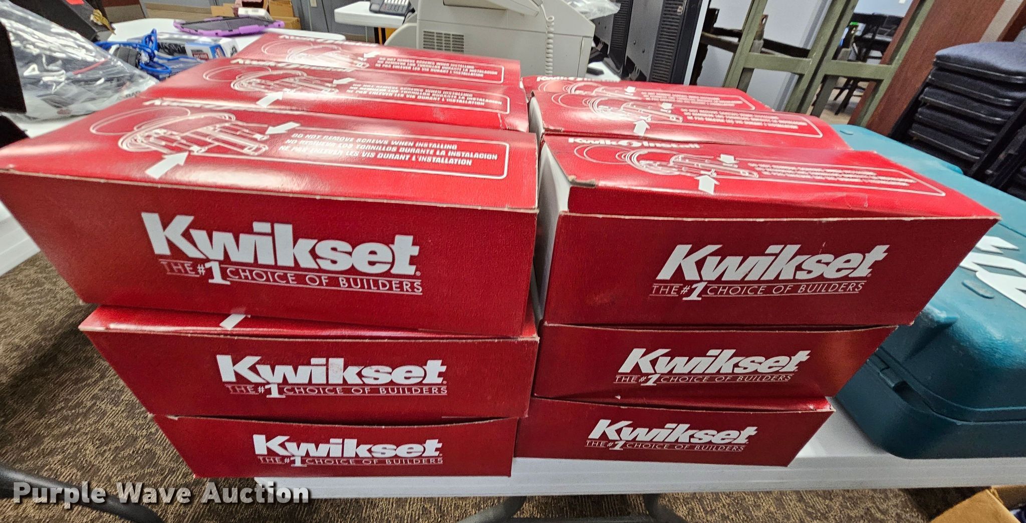 Purple Wave is selling a used Building Materials in Kansas. This item is a Building materials with the following: (18) Kwikset door handle sets, Makita 8390D drill, (2) batteries, Charger, Case