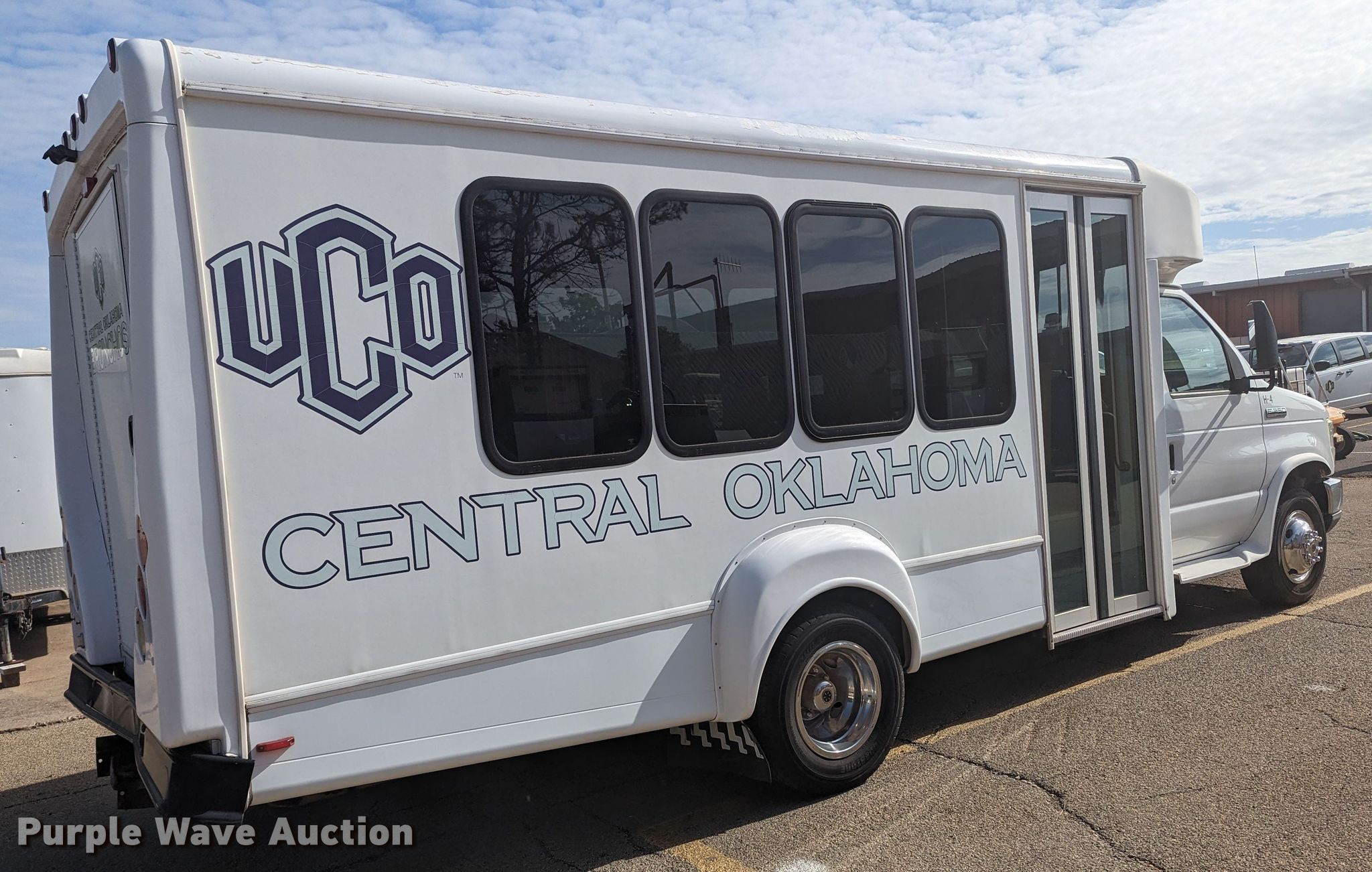 2011 Ford E350 shuttle bus. Miles: 109,803 on odometer, VIN: 1FDWE3FS7BDA54506. Engine Displacement: 6.8L, Cylinders: 10, Fuel type: Gas. Transmission Automatic. Chassis Axles: Single, Suspension: Spring, Brakes: Hydraulic. Interior AC, Heat, Cruise control, Passengers: 13. Tires Size: 225/75R16. Notes Decals will be removed or painted over prior to auction, Engine issues, cylinder. Oklahoma title. Seller is a government entity who will be assigning and distributing the title. Please contact the seller for distribution questions. University of Central Oklahoma. 100 N University Dr. Edmond, OK 73034