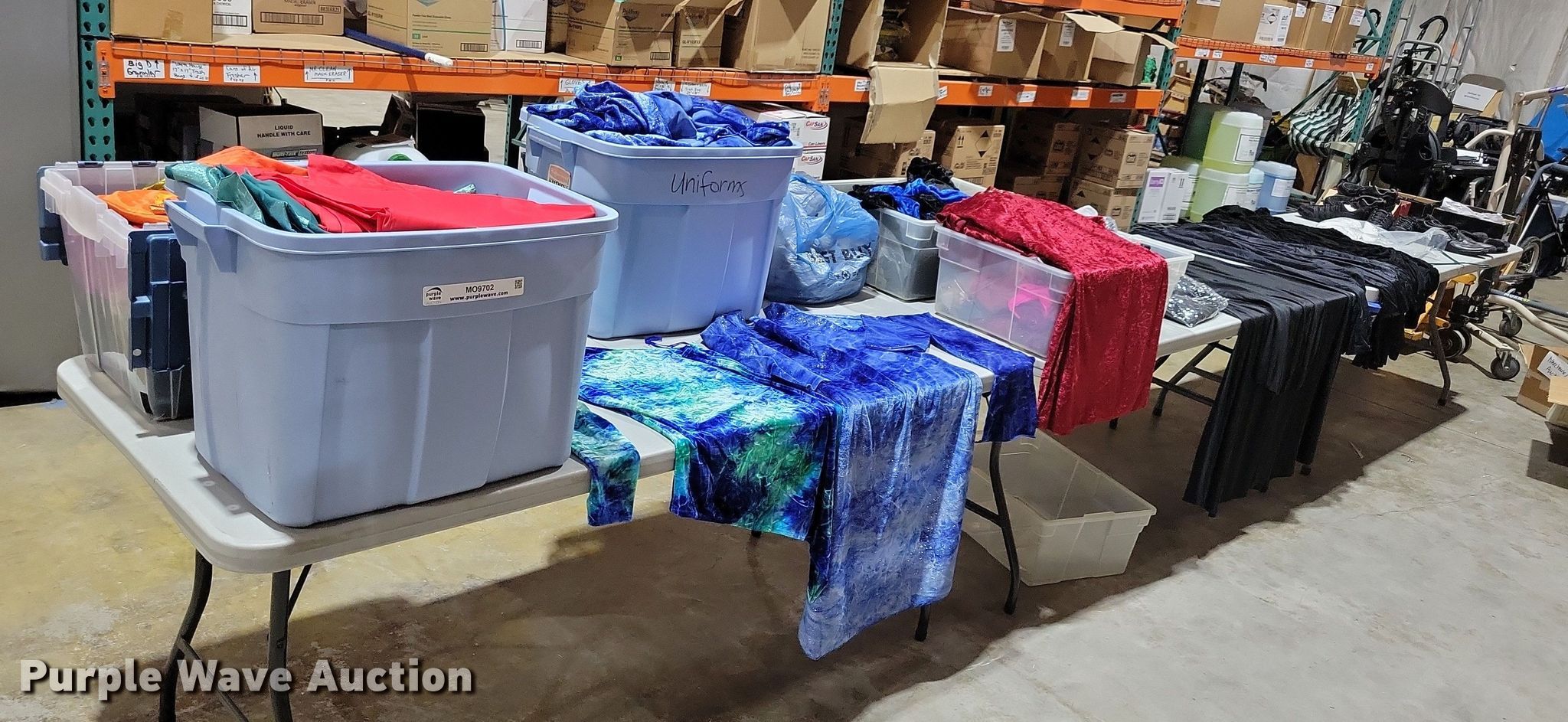Purple Wave is selling a used All Other Household Items in Iowa. This item is a Clothing with the following: Flag uniforms, Dance uniforms, Flags, Women's shoes, Sizes: 8, 8 1/2, 9