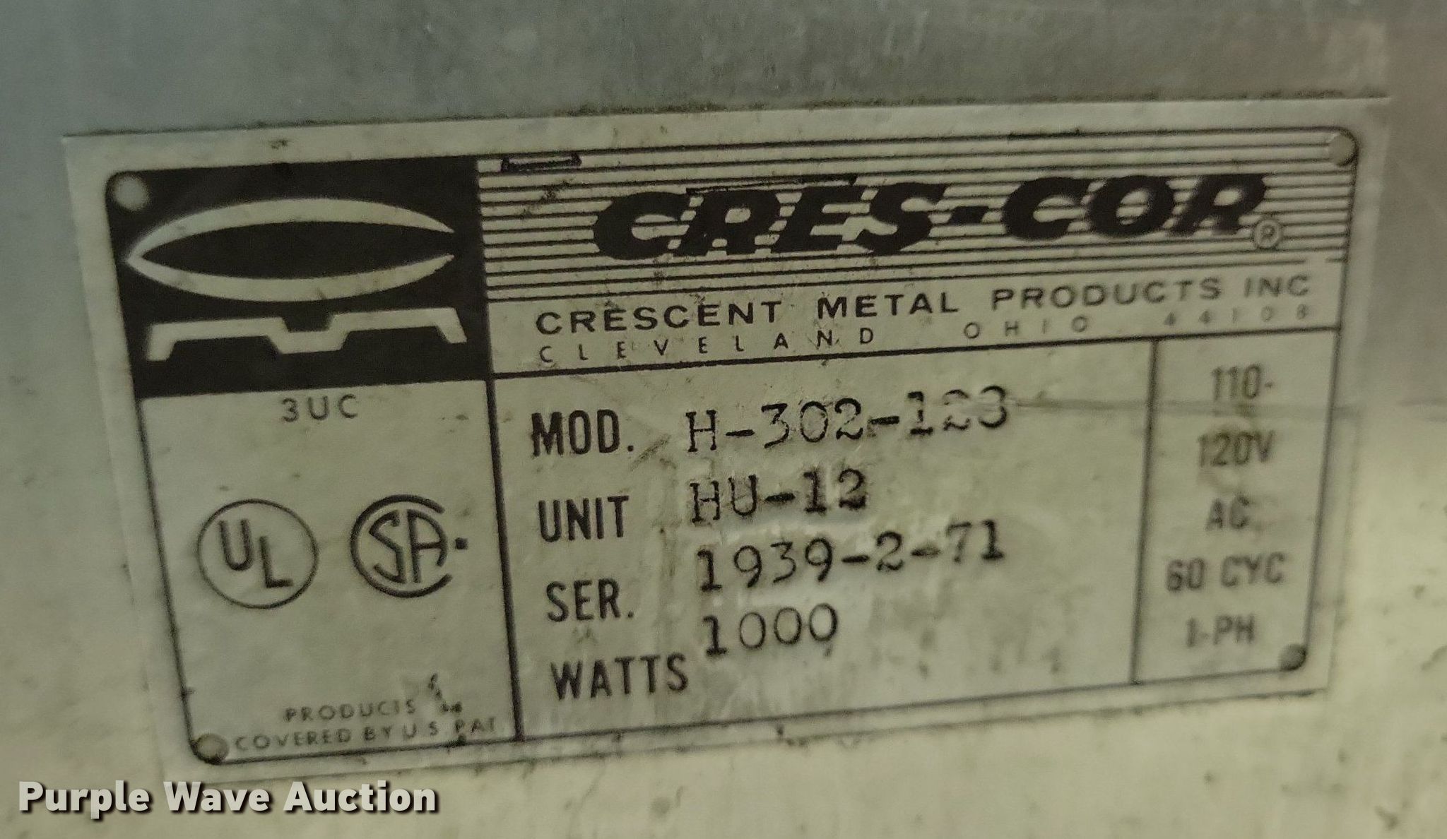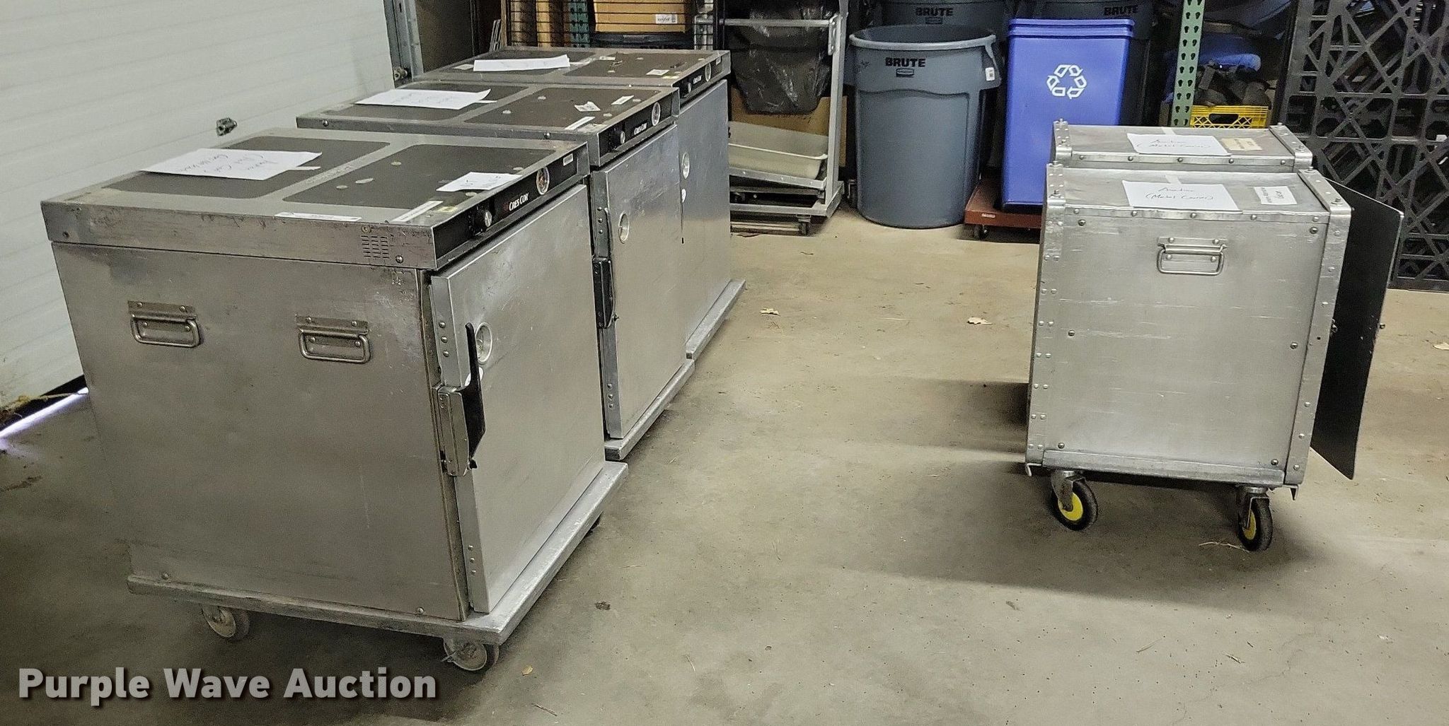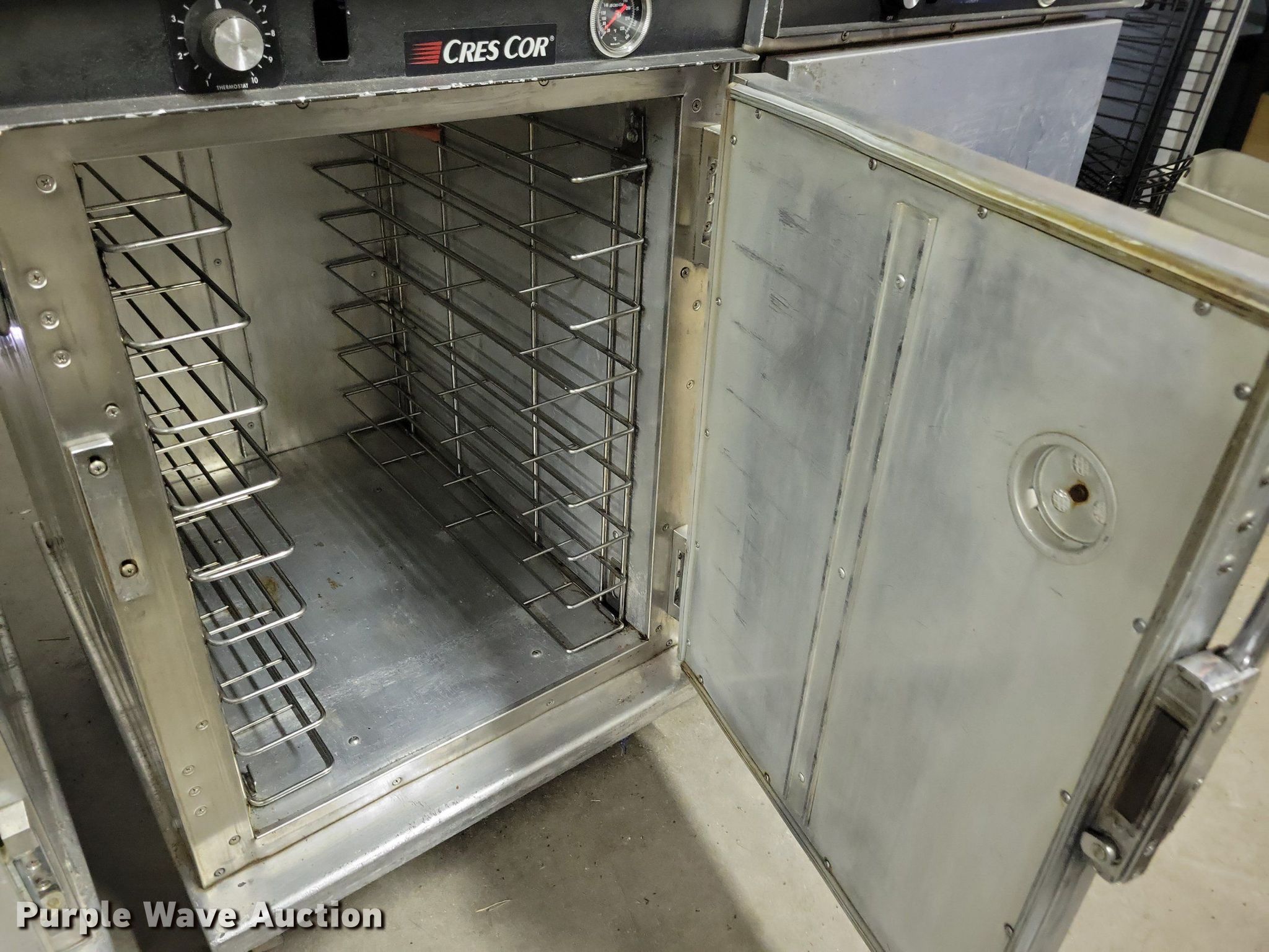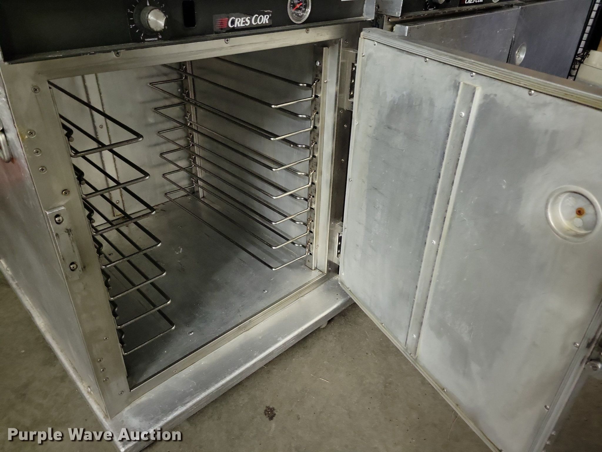 Purple Wave is selling a used Restaurant Equip. in Iowa. This item is a (5) Cres Cor food cabinets with the following: (3) heated cabinets, (2) refrigerated cabinets, Phase: Single, Volts: 120