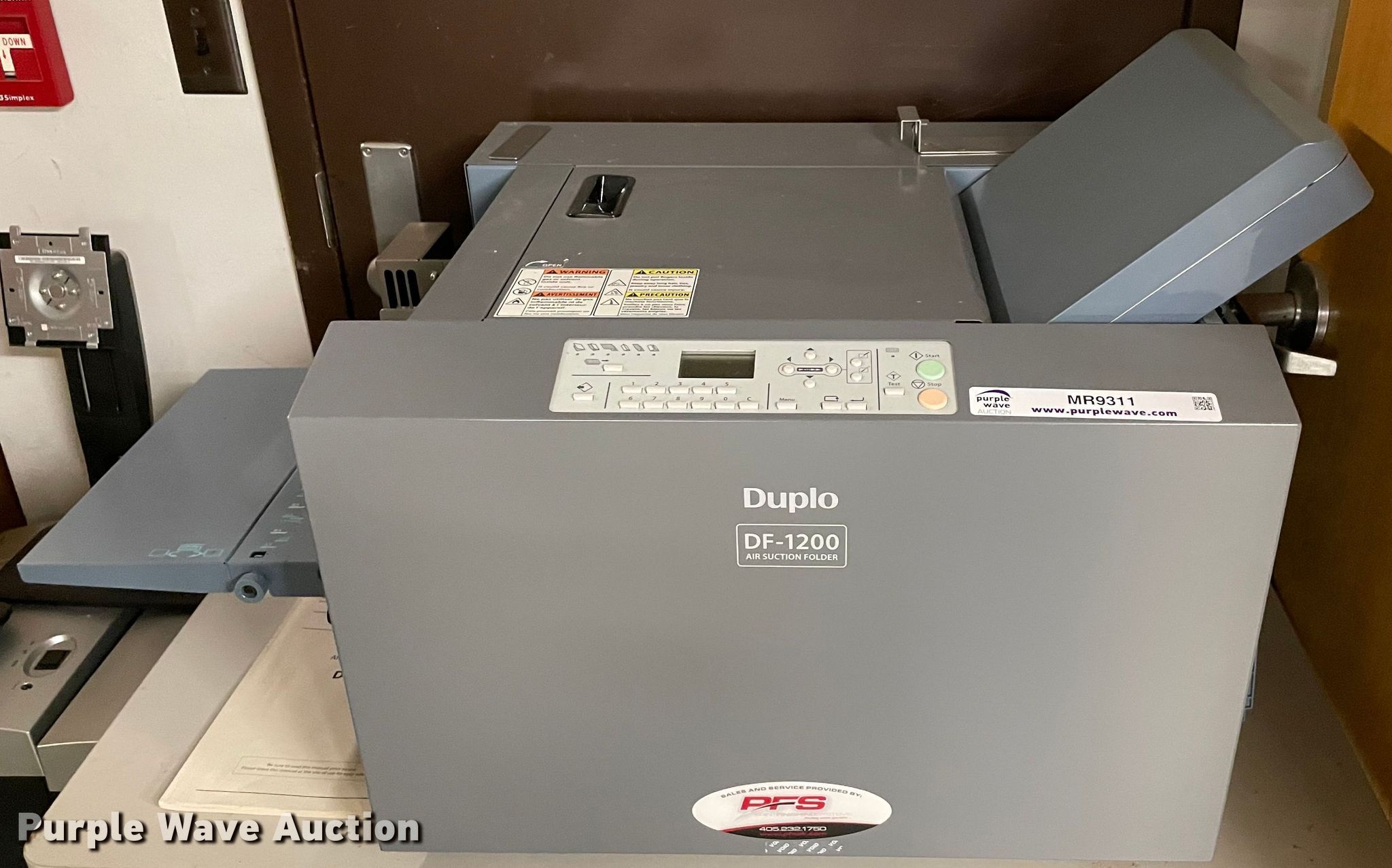 Purple Wave is selling a used Office Supplies and Equip. in Oklahoma. This item is a Duplo DF-1200 paper folder with the following: Sale #: 2312-KP