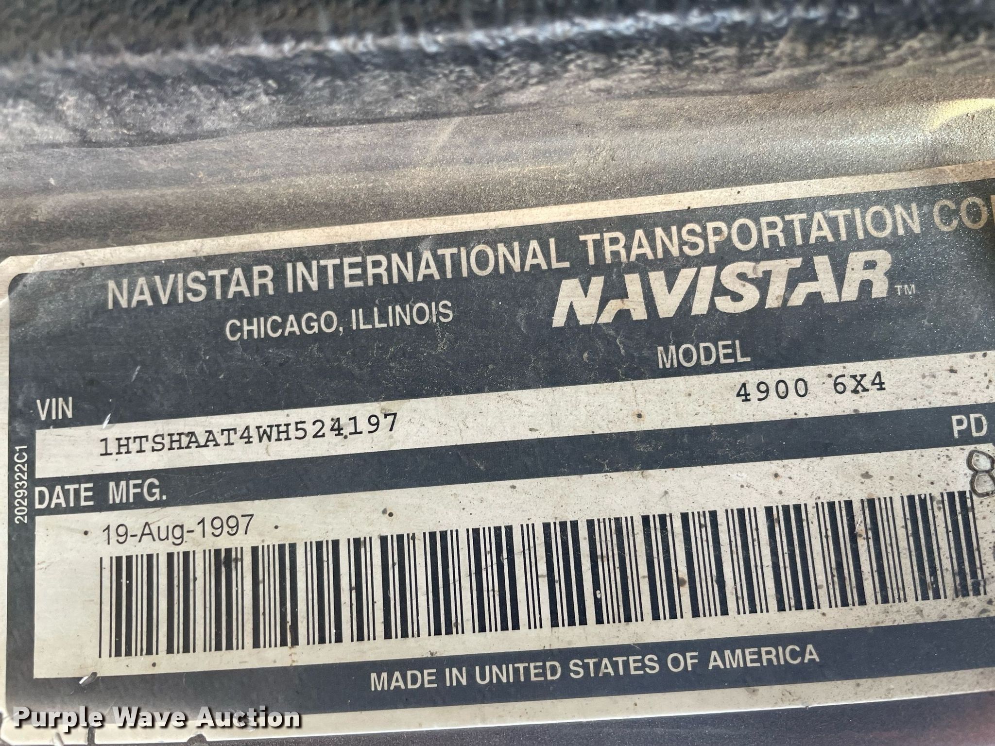 Purple Wave is selling a used Construction Dump Truck in Kansas. This item is a 1998 International 4900 dump truck with the following: Miles: 273,761 on odometer, Hours: 4,900 on meter, VIN: 1HTSHAAT4WH524197